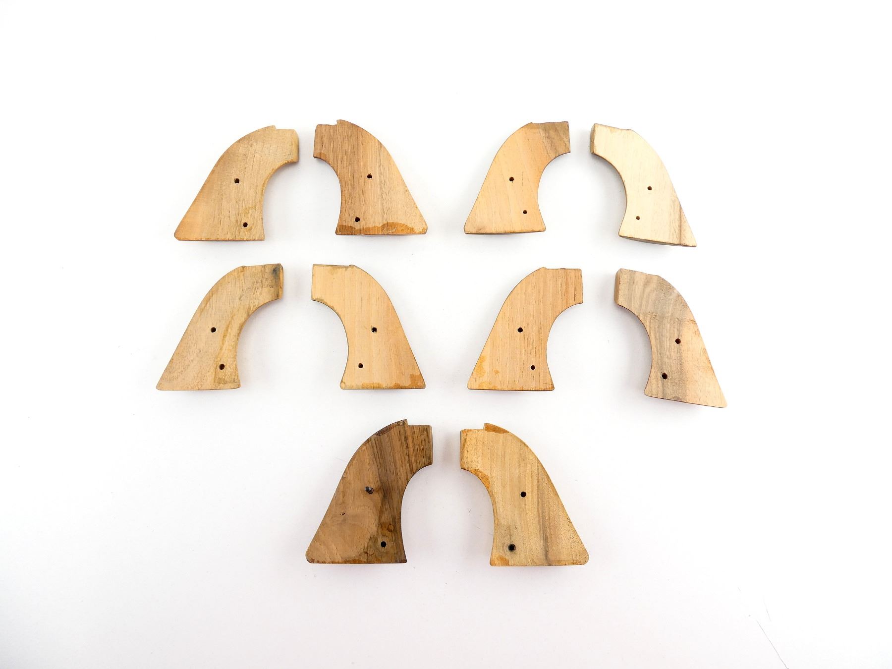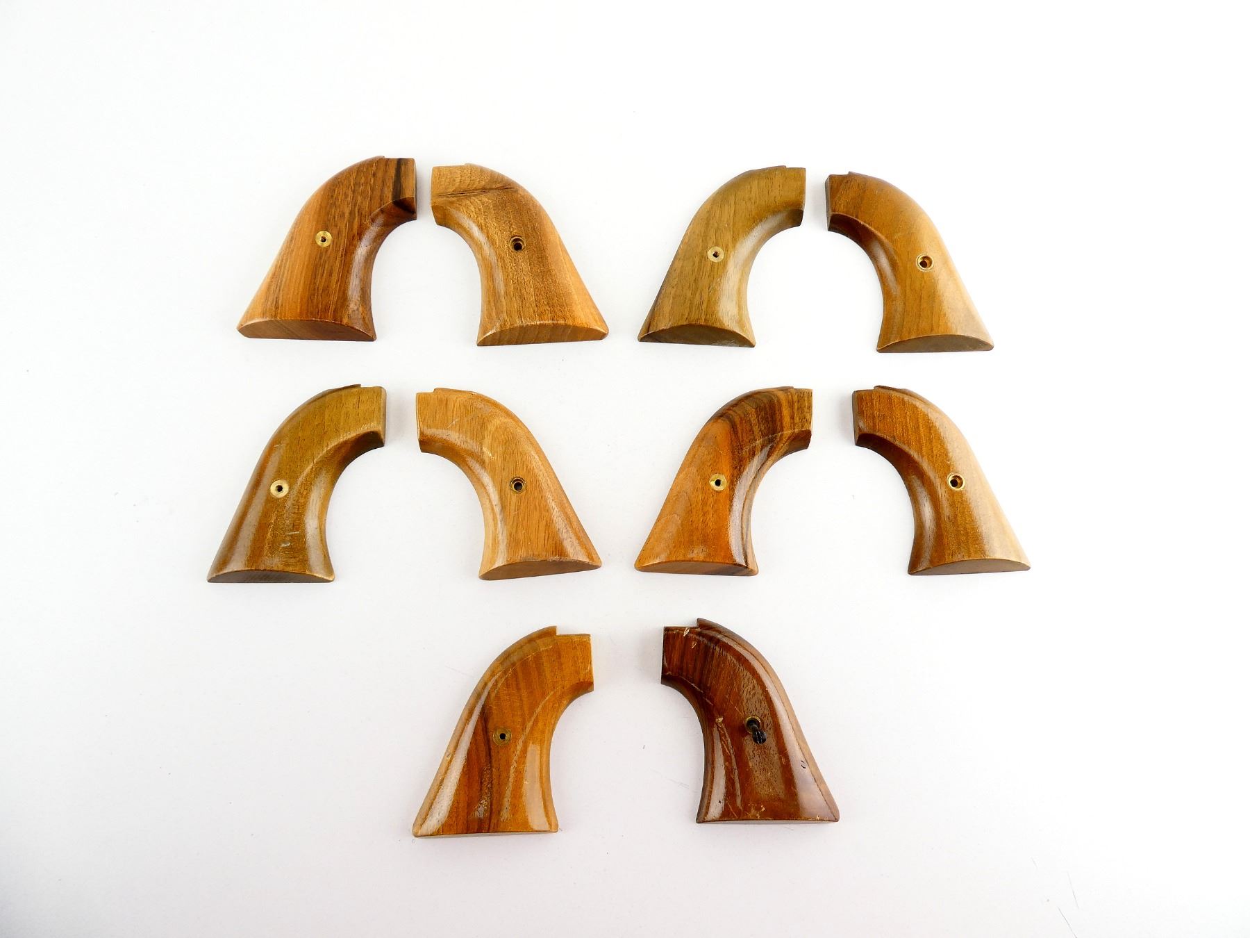 LOT INCLUDES; (5) SETS OF SMOOTH WOOD GRIPS, ONE SET WITH SCREW, UNMARKED. MAY REQUIRE FITTING. SEE PHOTOS.