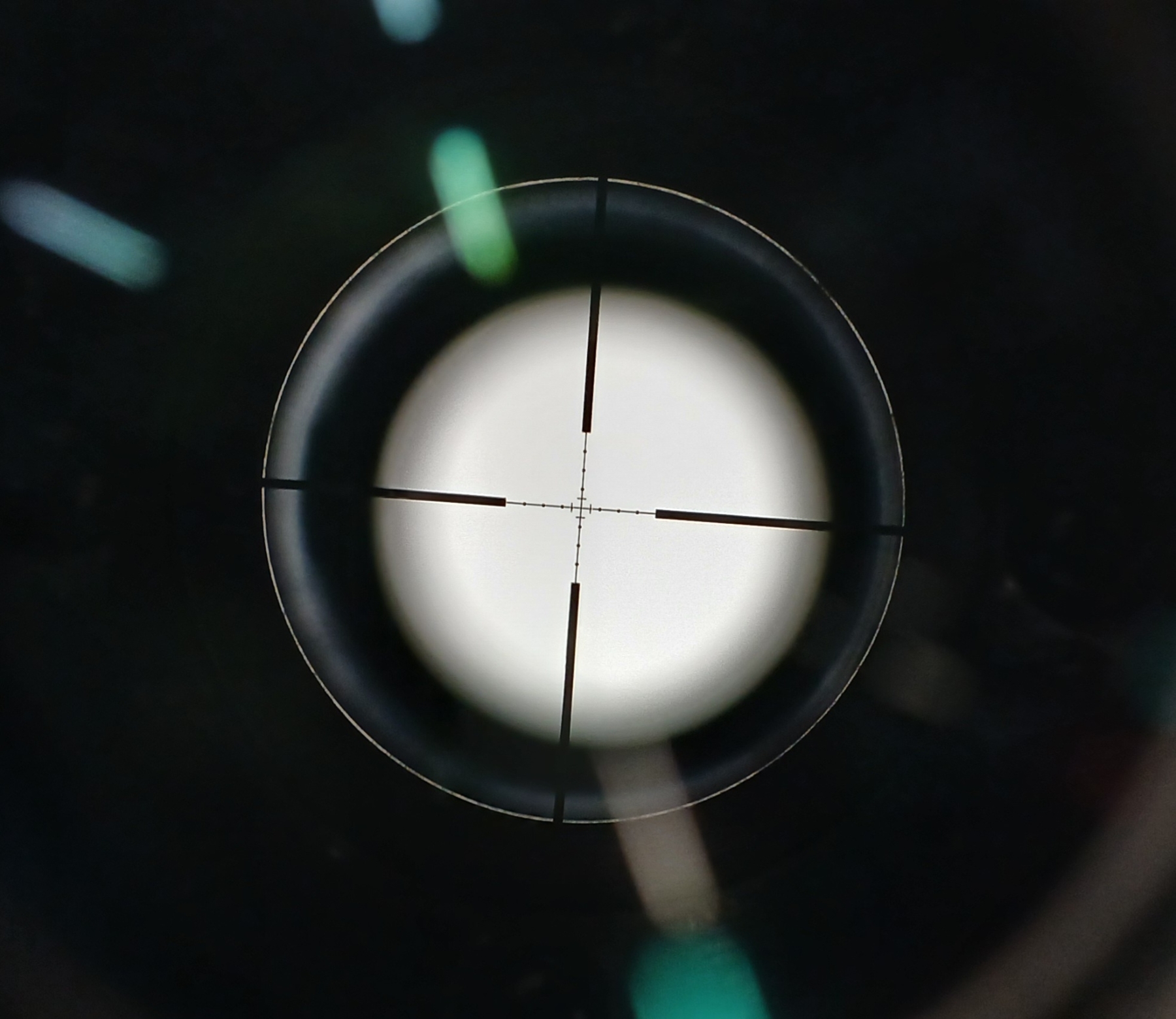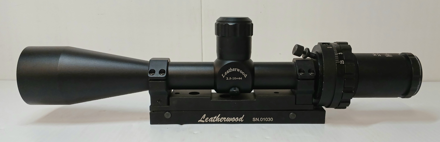 NOTE: CLEAR LENS W/ MIL DOT RETICLE - NO. 1030 - MATCHES BOX. WITH QUICK ADJUST TURRETS.