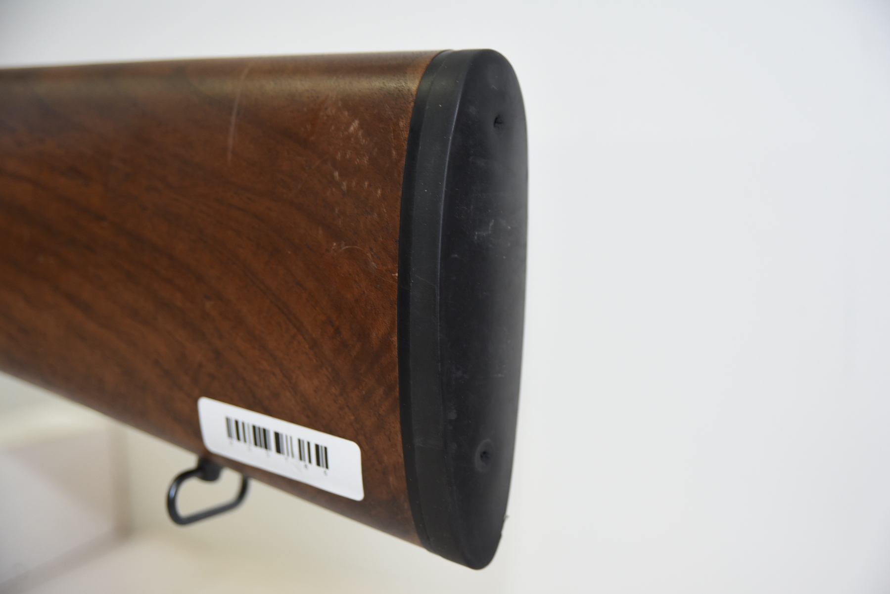 Wood stock shows some scratches, scuffs, light dents, forearm is missing; condition is fair.