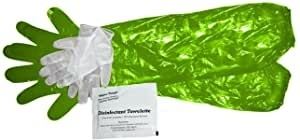Includes a pair of shoulder-length gloves with elastic bands at the top