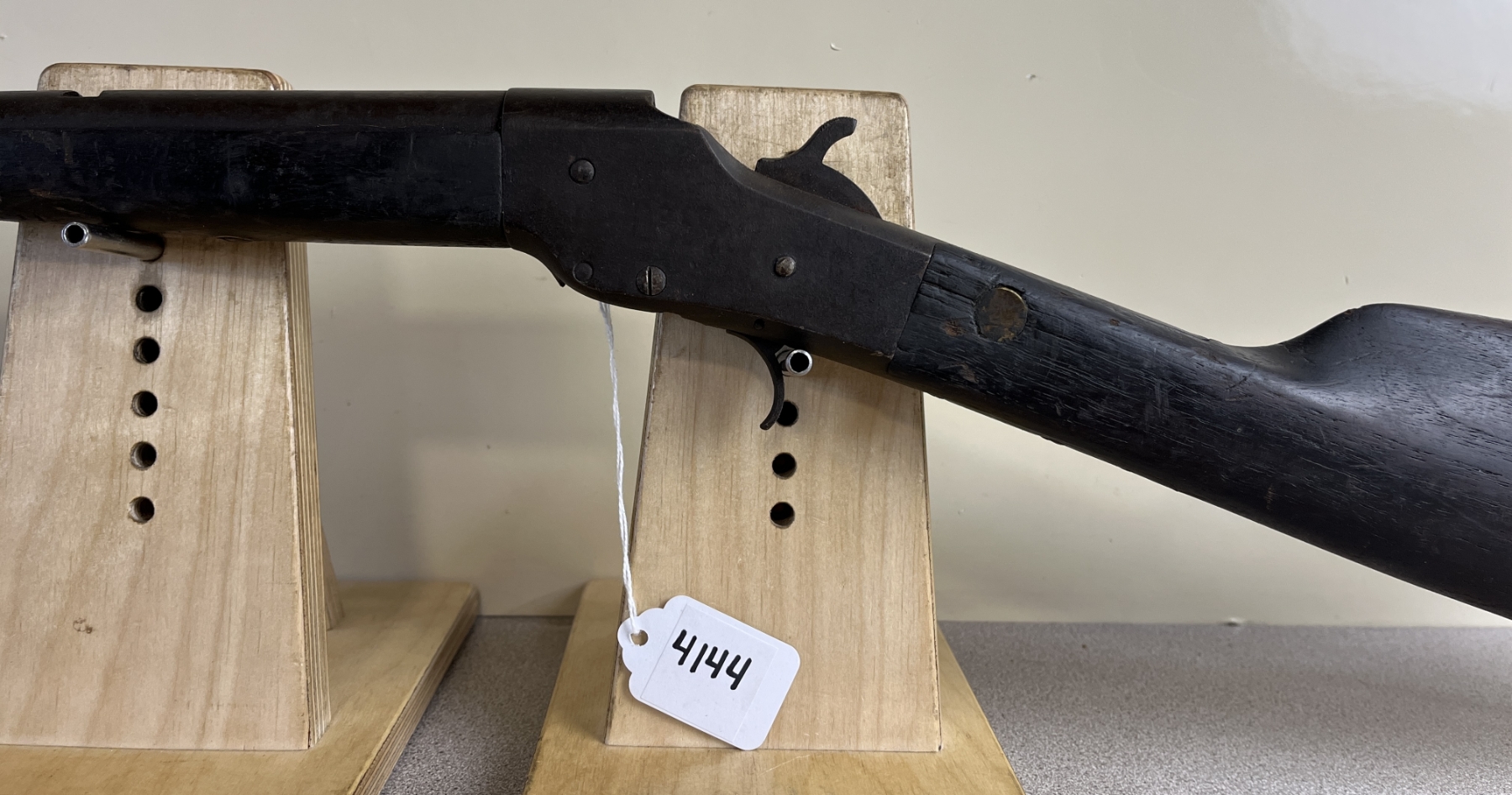 CONDITION: P-F OVERALL. FAIR BORE. MISSING FALLING BLOCK ASSEMBLY. REPAIRED CRACK AT TANG. SPECS: 26-1/4IN BBL. EXTRAS: NONE. S/N: NONE.