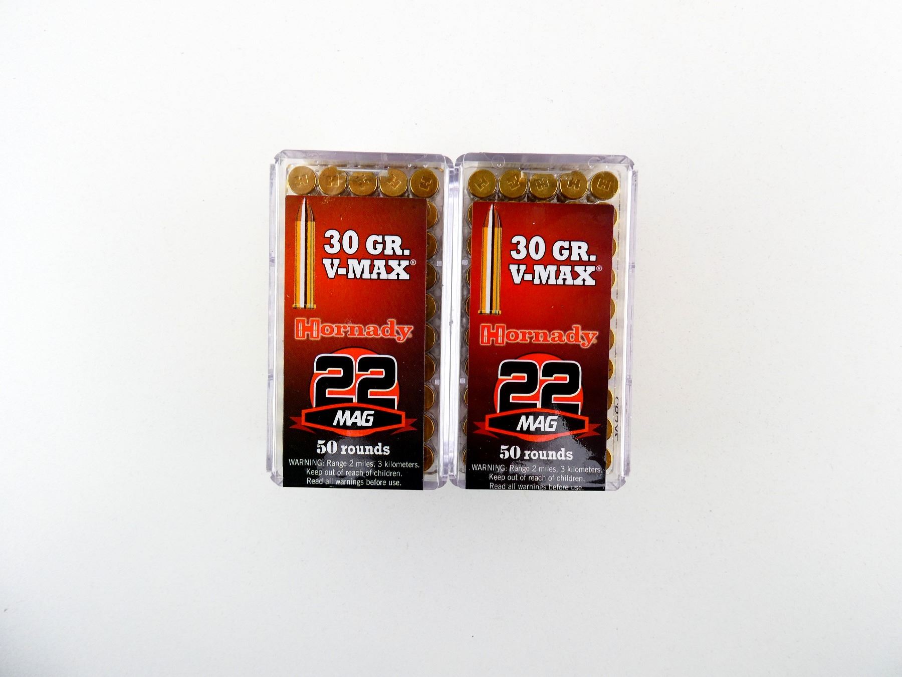 LOT INCLUDES; APPROX. (100) RNDS, 30 GRNS (STATED ON BOXES NOT CONFIRMED), V-MAX, UNOPENED.