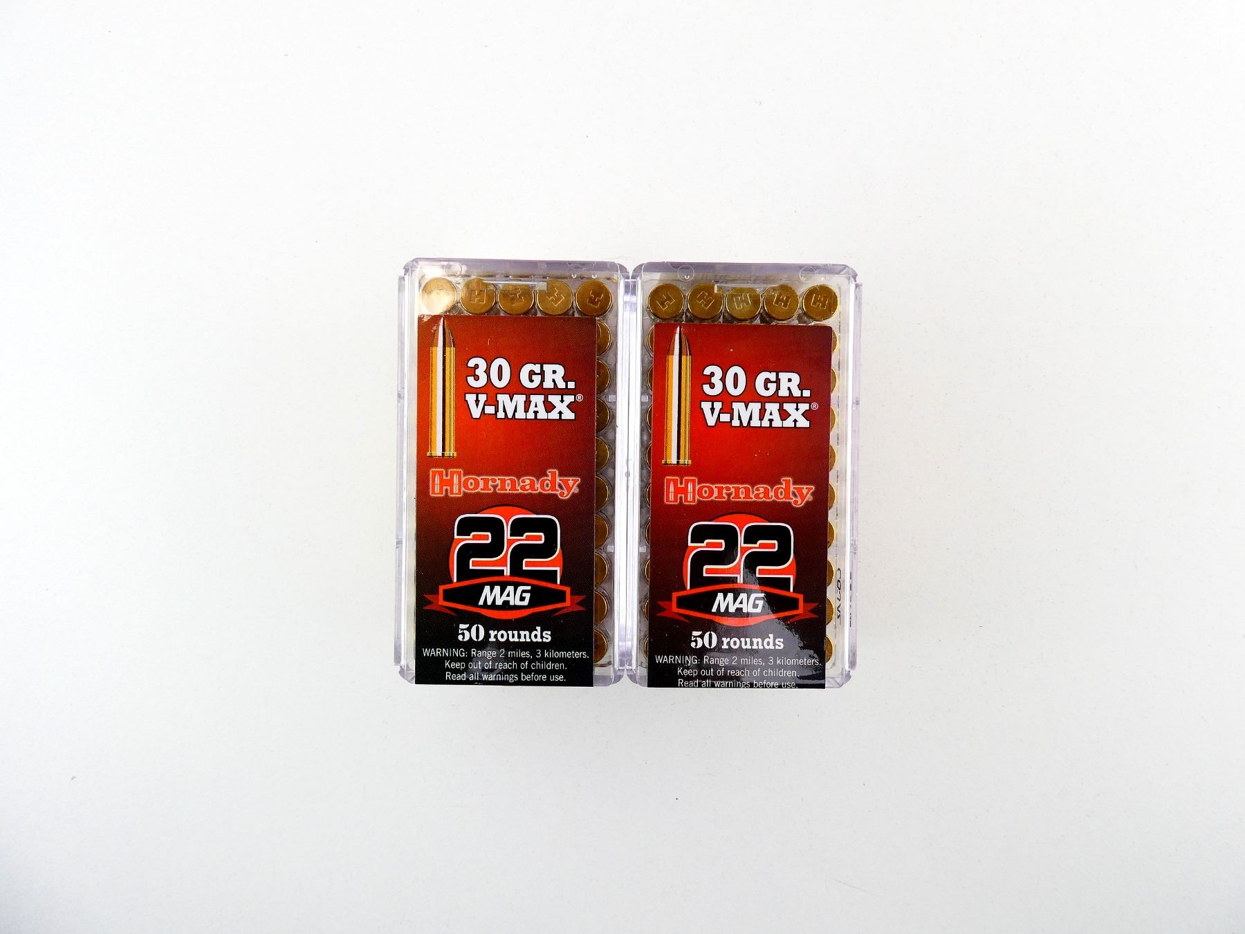 LOT INCLUDES; APPROX. (100) RNDS, 30 GRNS (STATED ON BOXES NOT CONFIRMED), V-MAX, UNOPENED.