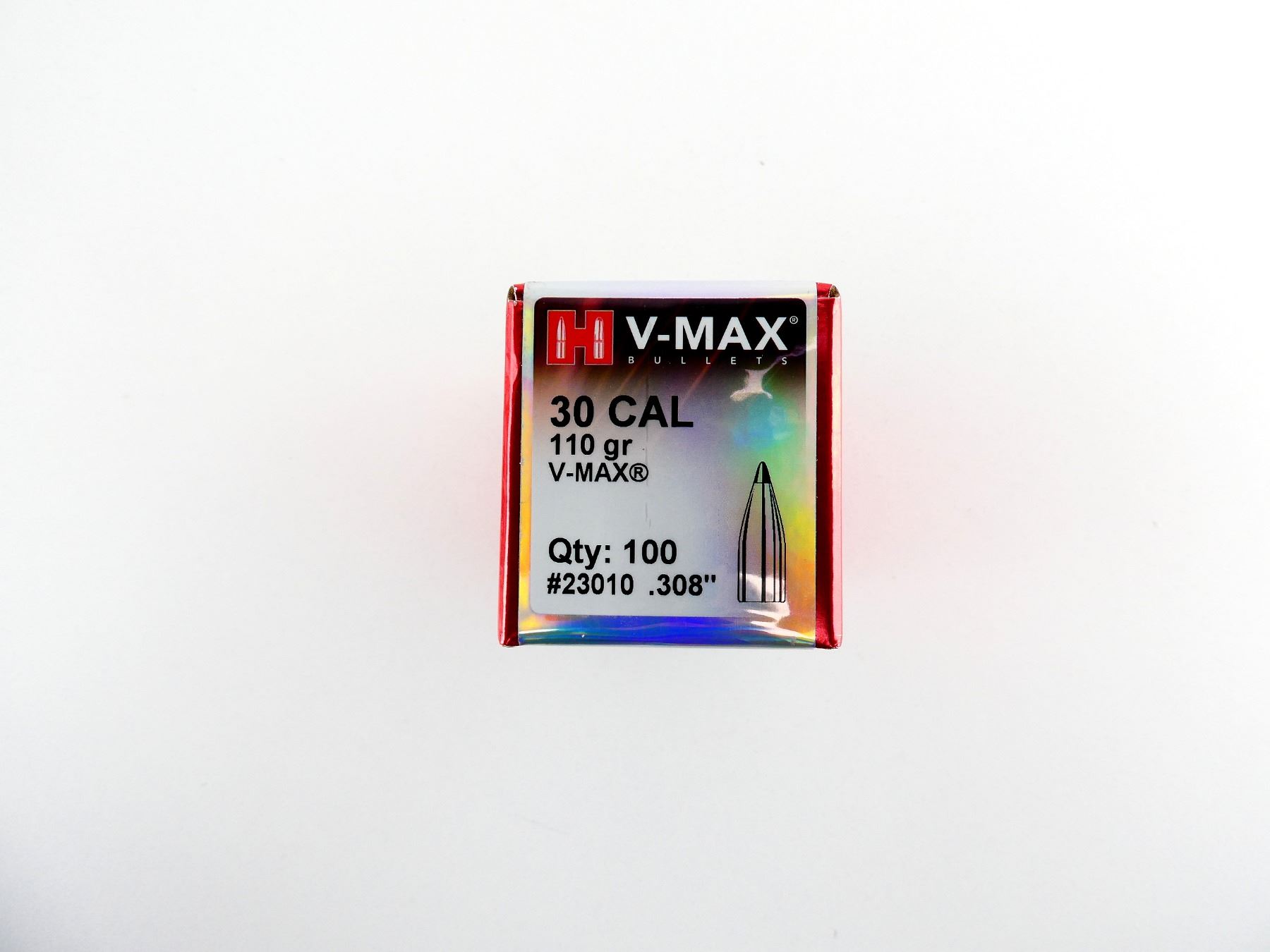 LOT INCLUDES; APPROX. (100) BULLETS, APPROX. DIA .308", 110 GRNS (STATED ON BOX NOT CONFIRMED) V-MAX, UNOPENED.