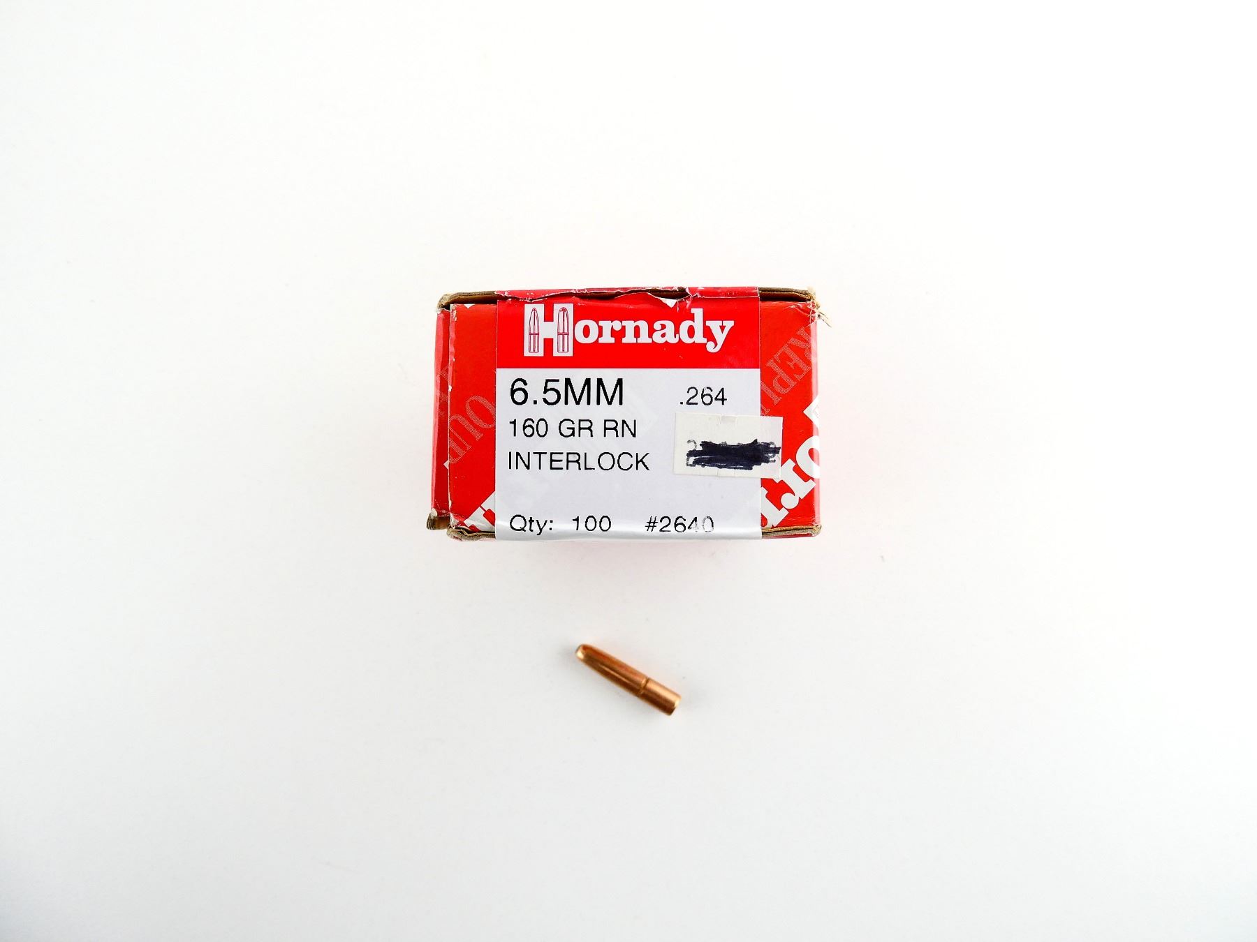 LOT INCLUDES; APPROX. (100) BULLETS, APPROX. DIA .264", 160 GRNS (STATED ON BOX NOT CONFIRMED) RN INTERLOCK.
