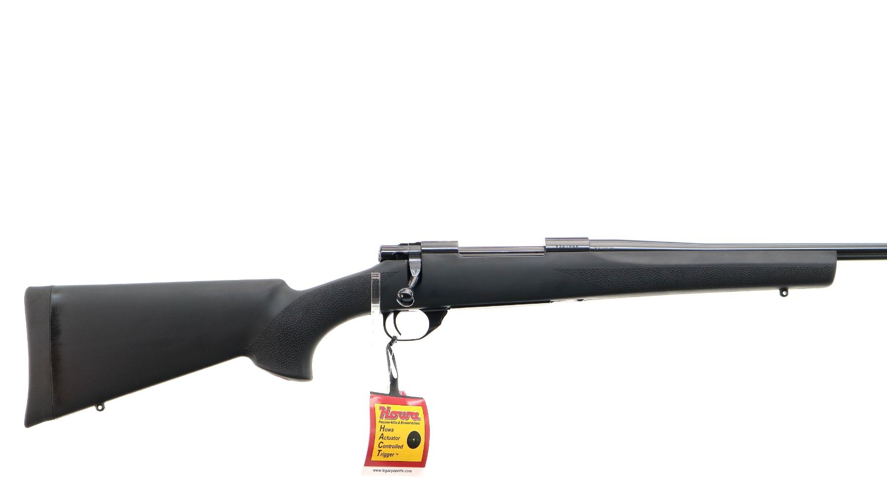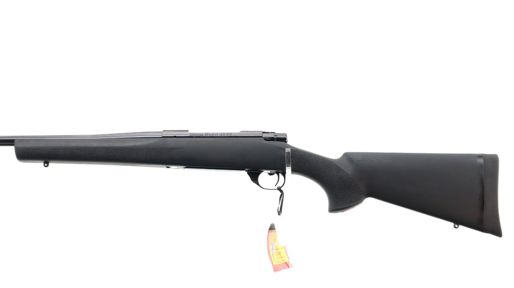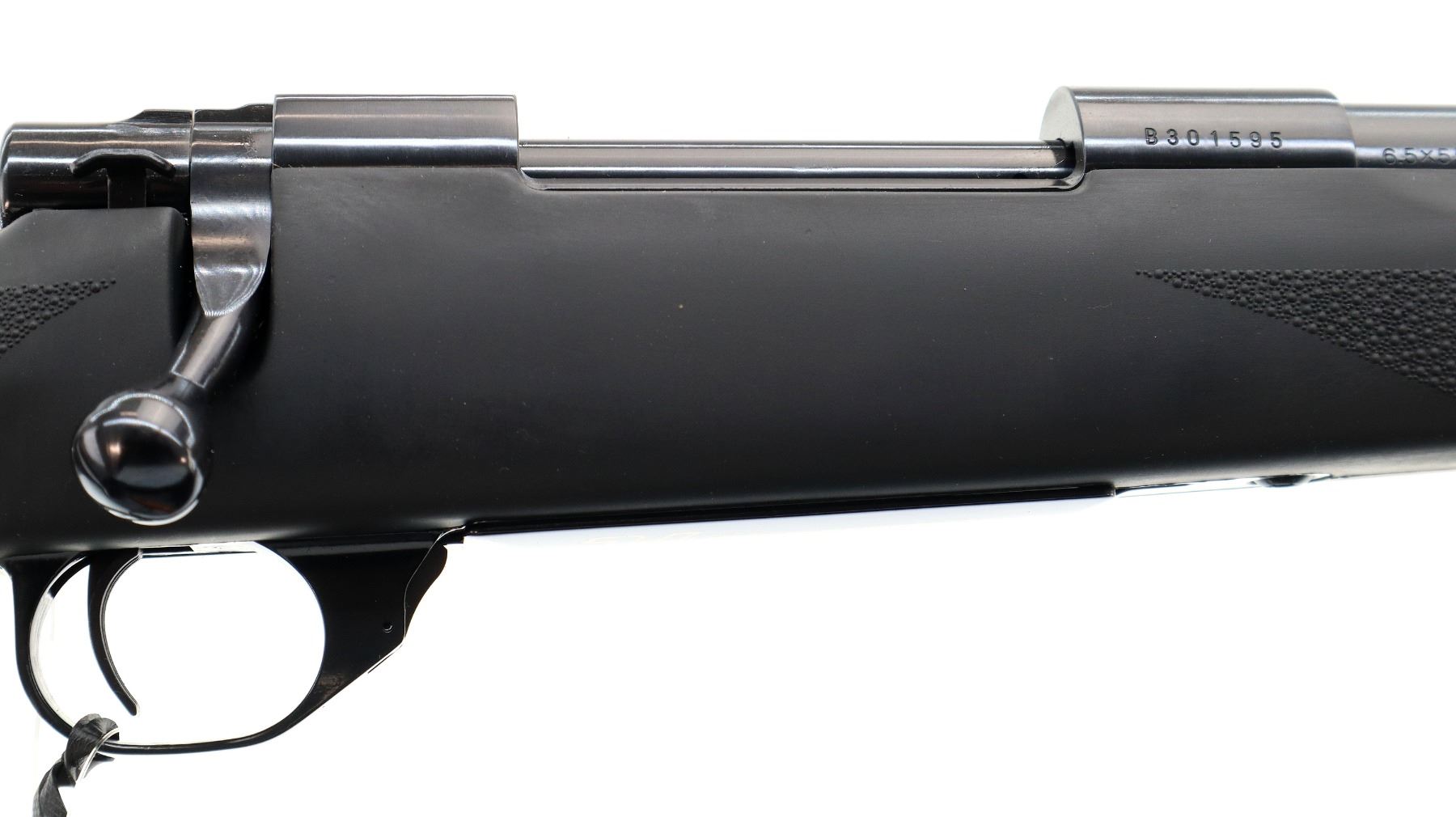 Main Description: No sights, blued finish, receiver drilled and tapped with plug screws installed, smooth bolt knob. One piece Hogue over mold black synthetic stock, textured forearm and pistol grip panels, black rubber recoil pad, hinged floor plate, swivel studs, retains factory hang tags. Accessories include: Niko Sterling Game King Side LRX 3.5-10 x 44 AO IR Scope, clear optics, range finding reticle, illuminated green and red that functions. One piece rail, one set of rings.