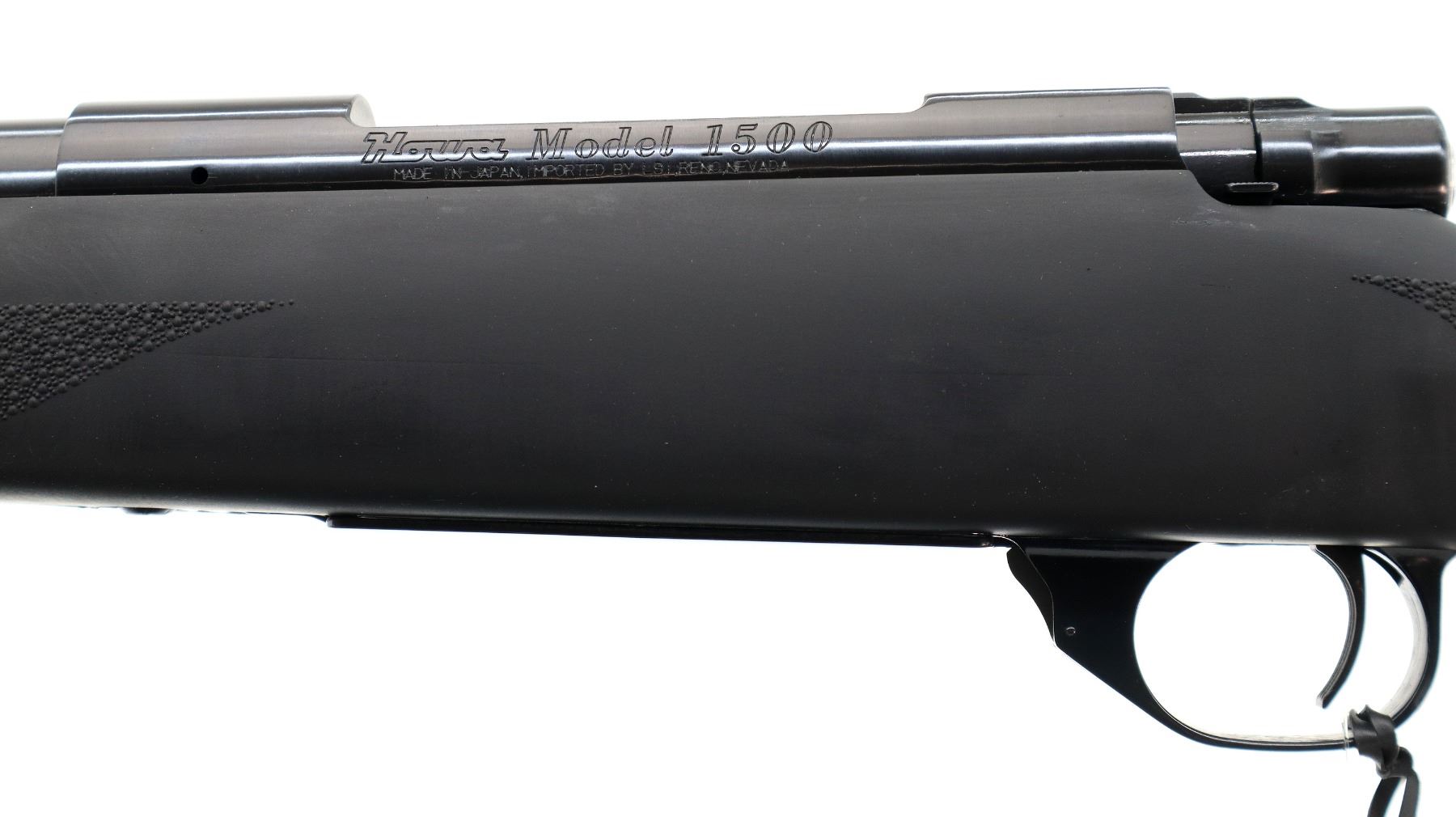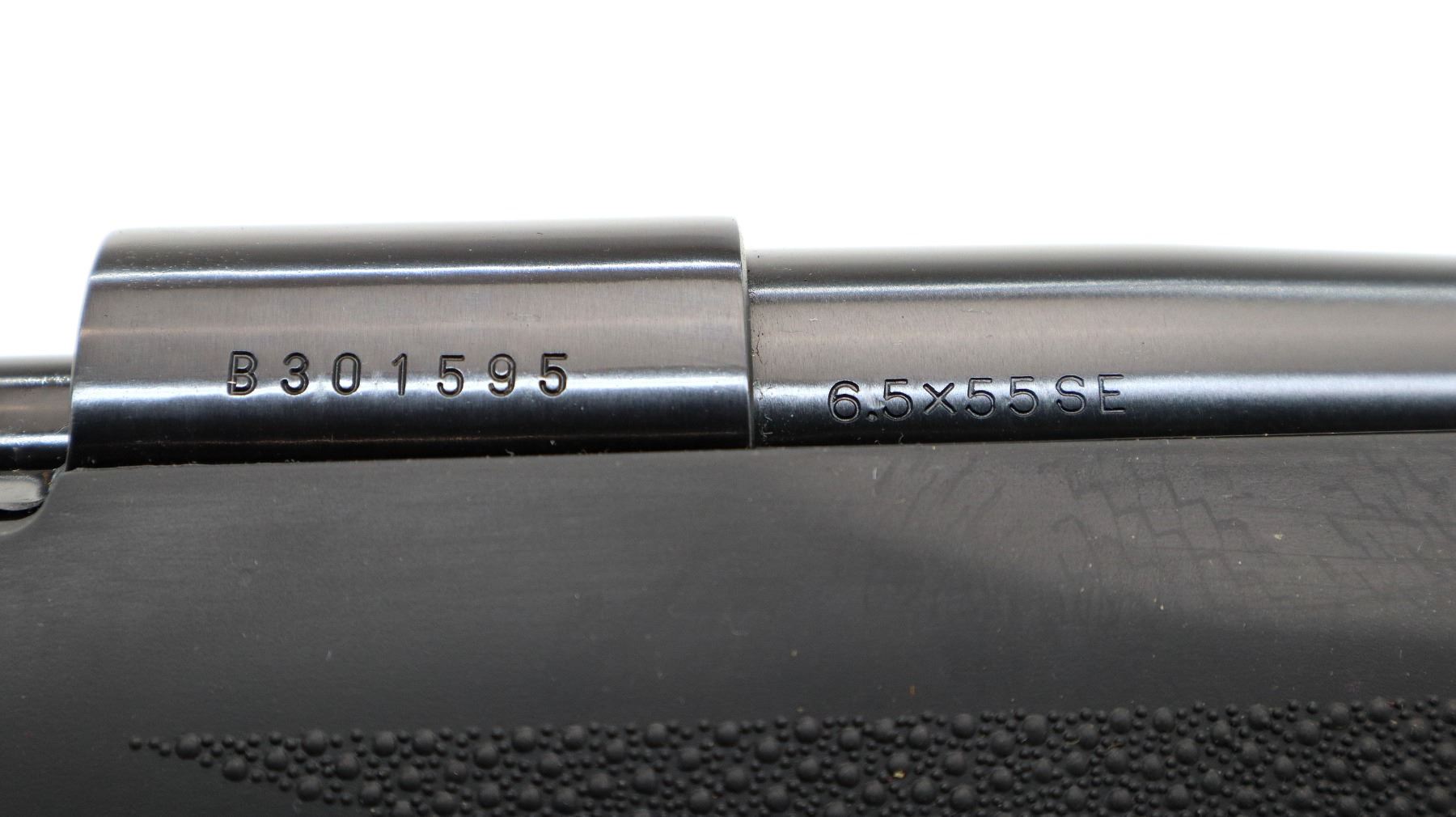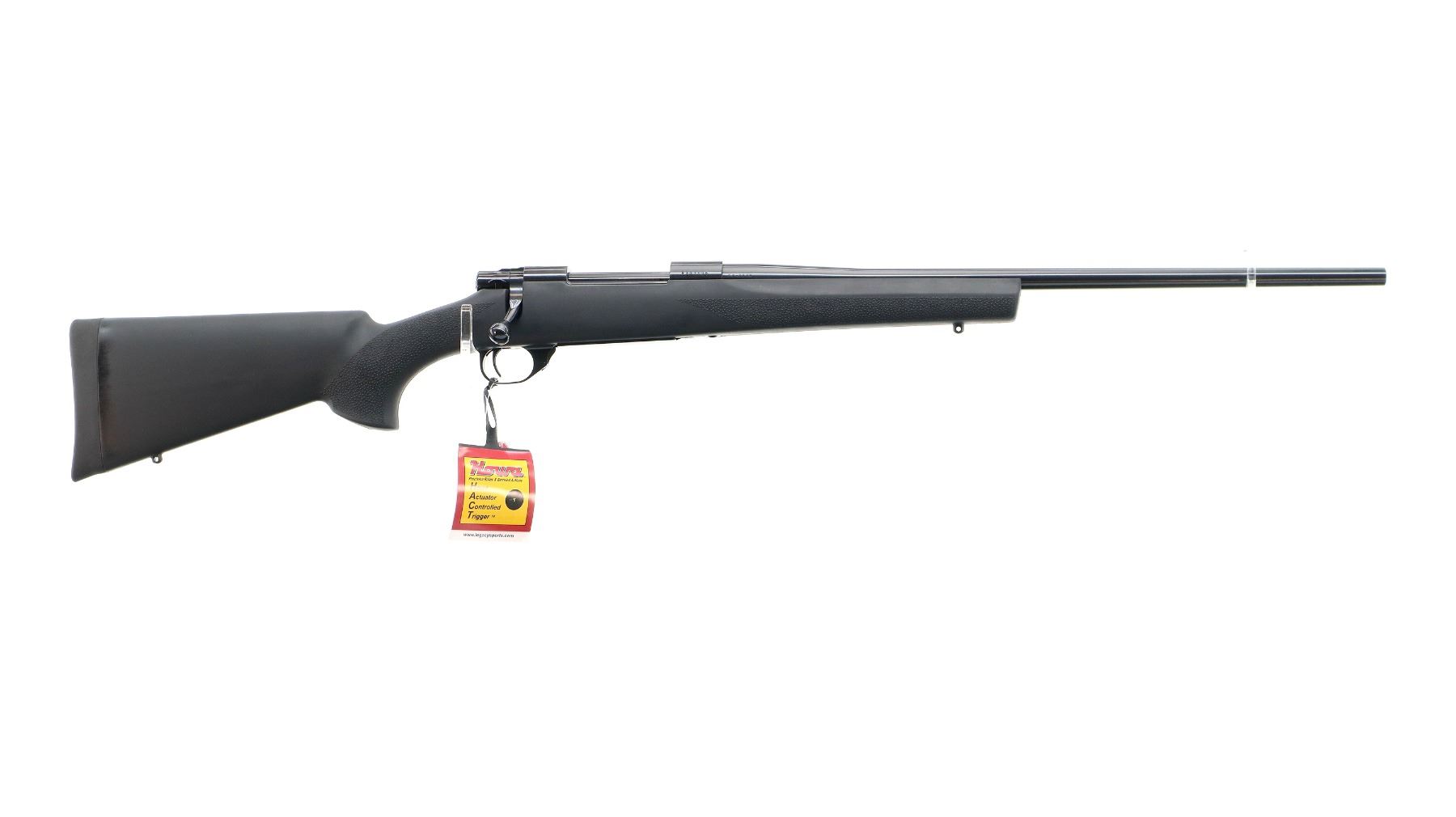 Main Description: No sights, blued finish, receiver drilled and tapped with plug screws installed, smooth bolt knob. One piece Hogue over mold black synthetic stock, textured forearm and pistol grip panels, black rubber recoil pad, hinged floor plate, swivel studs, retains factory hang tags. Accessories include: Niko Sterling Game King Side LRX 3.5-10 x 44 AO IR Scope, clear optics, range finding reticle, illuminated green and red that functions. One piece rail, one set of rings.