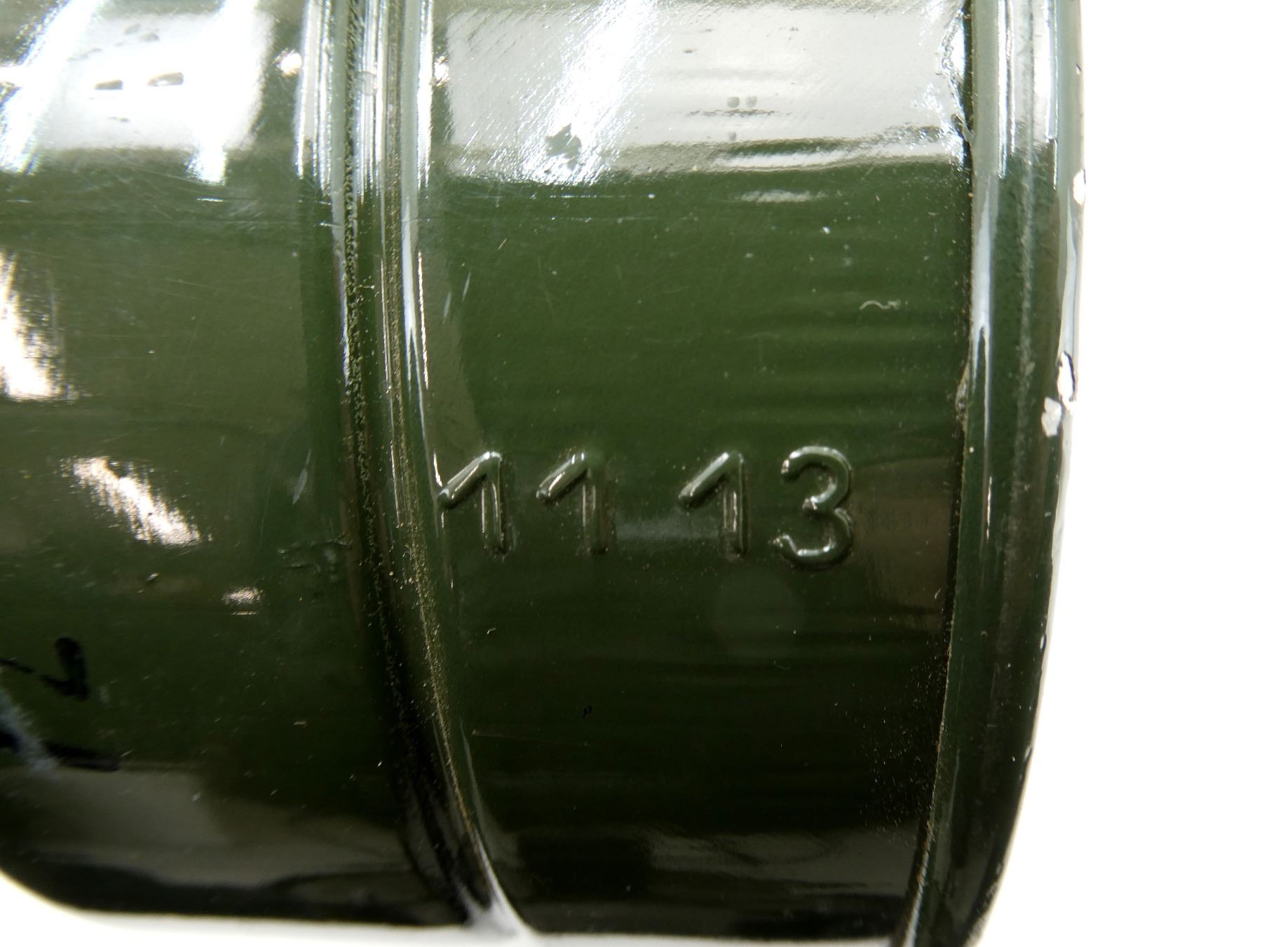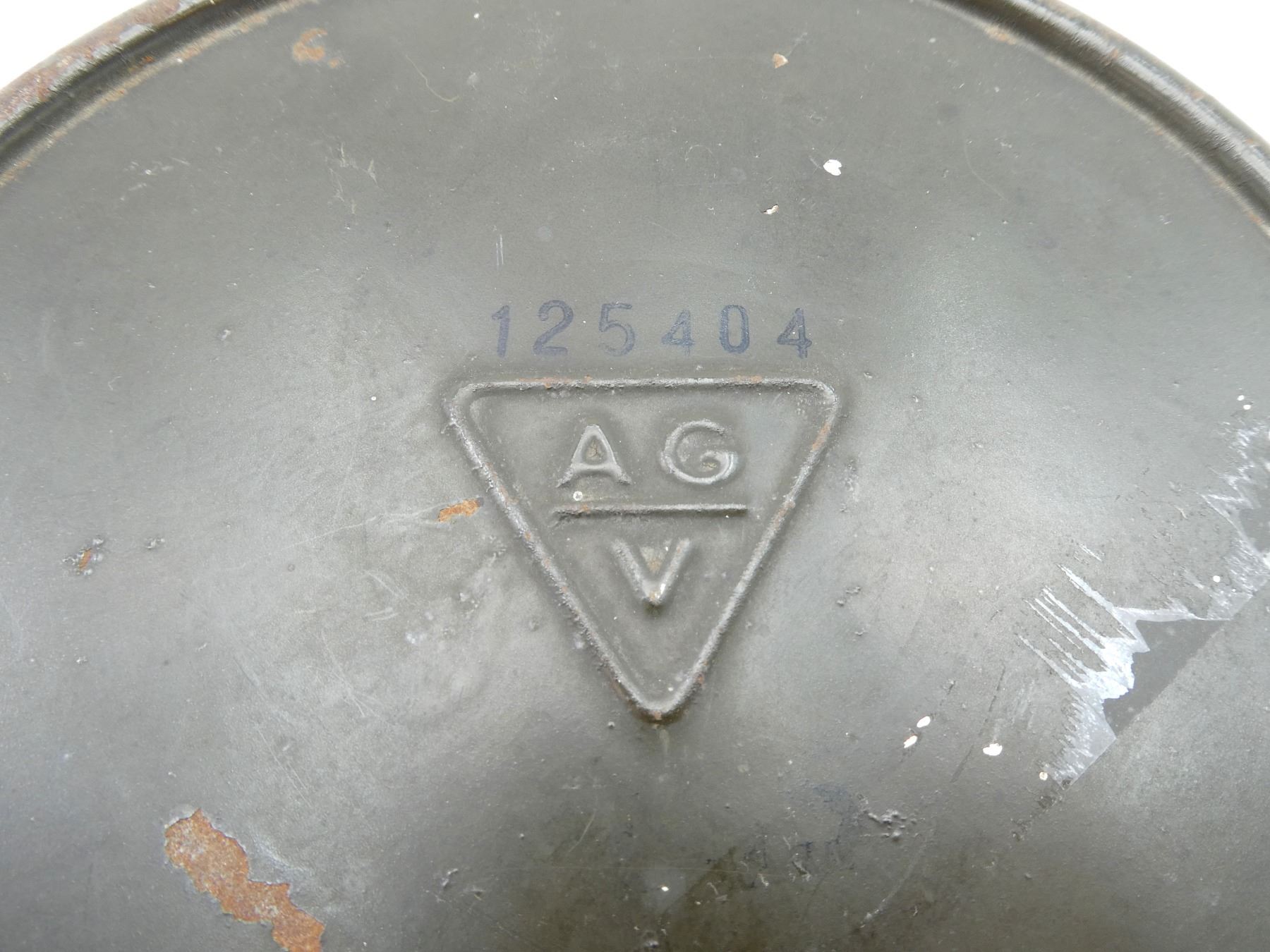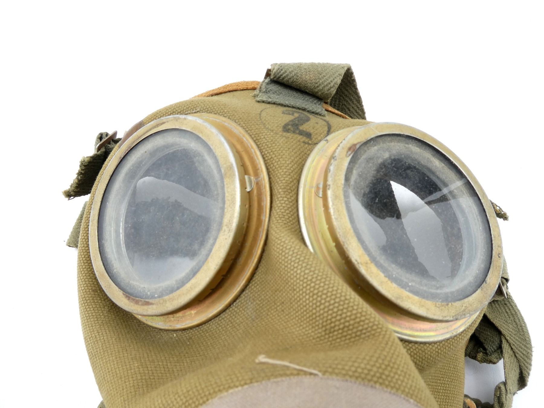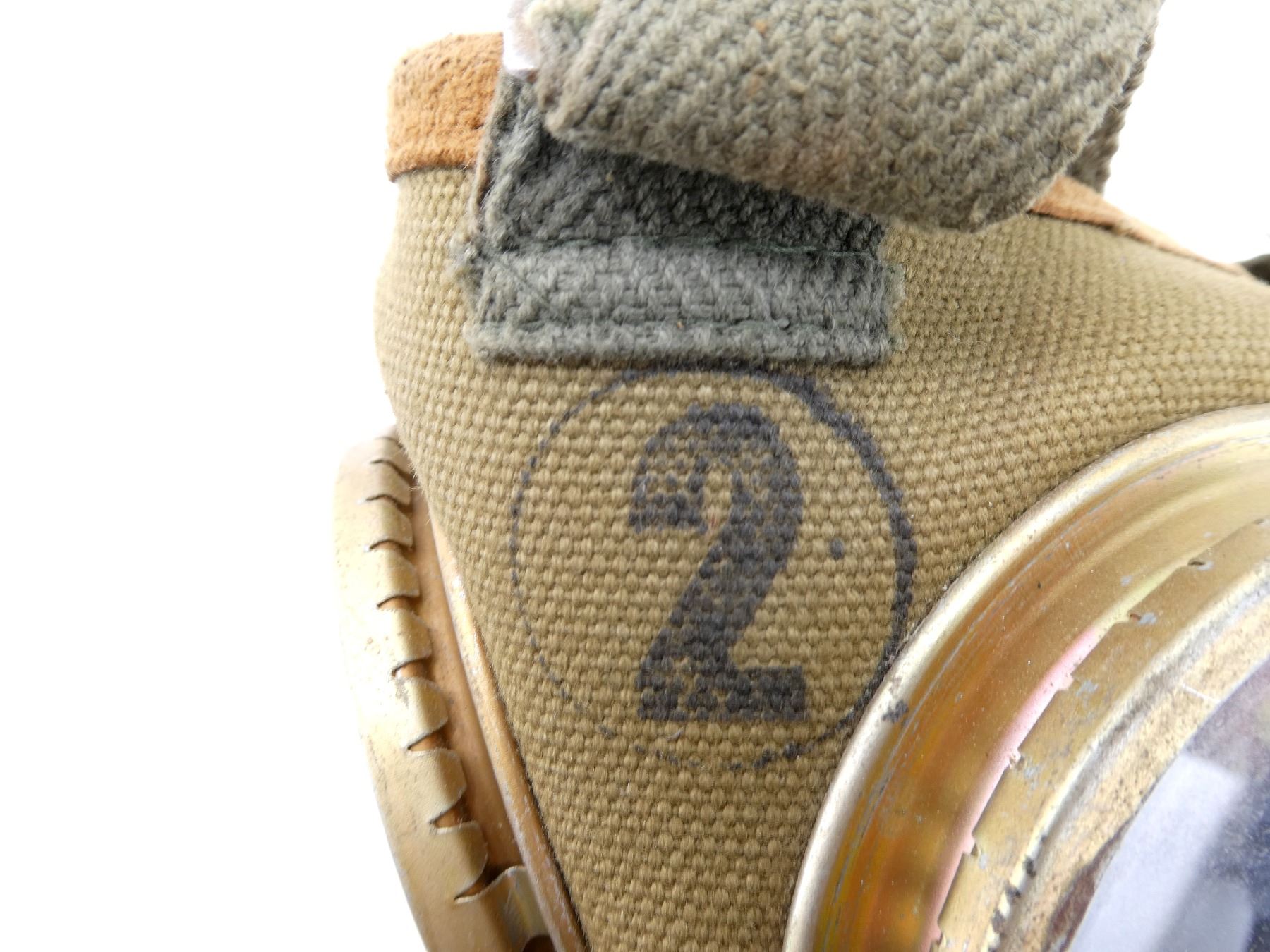 LOT INCLUDES; (1) HUNGARIAN CIVILIAN M76 GAS MASK, TAN CANVAS FACE PIECE, MARKED: "2", CANVAS RUBBERIZED INSIDE, GREEN CANVAS ADJUSTABLE HEAD STRAPS, NO VISIBLE MARKINGS, LENSES INTACT, SHOWS AGE / WEAR, COMES WITH (1) GREEN PAINTED FILTER, MARKED: "72", "11 13" & (1) ROMANIAN MD-35 GAS MASK CANNISTER (CAN ONLY), LID MARKED: "125404" OVER "AG" OVER "V" IN A TRIANGLE, BOTTOM MARKED: "ANTIGAZ, 1939", INK STAMP BELOW LID LATCH, WITH ADJUSTABLE CANVAS SHOULDER STRAP, SHOWS AGE / WEAR, APPROX. 5 5/8" DIA. & OVERALL LENGTH APPROX. 12 1/8". SEE PHOTOS.