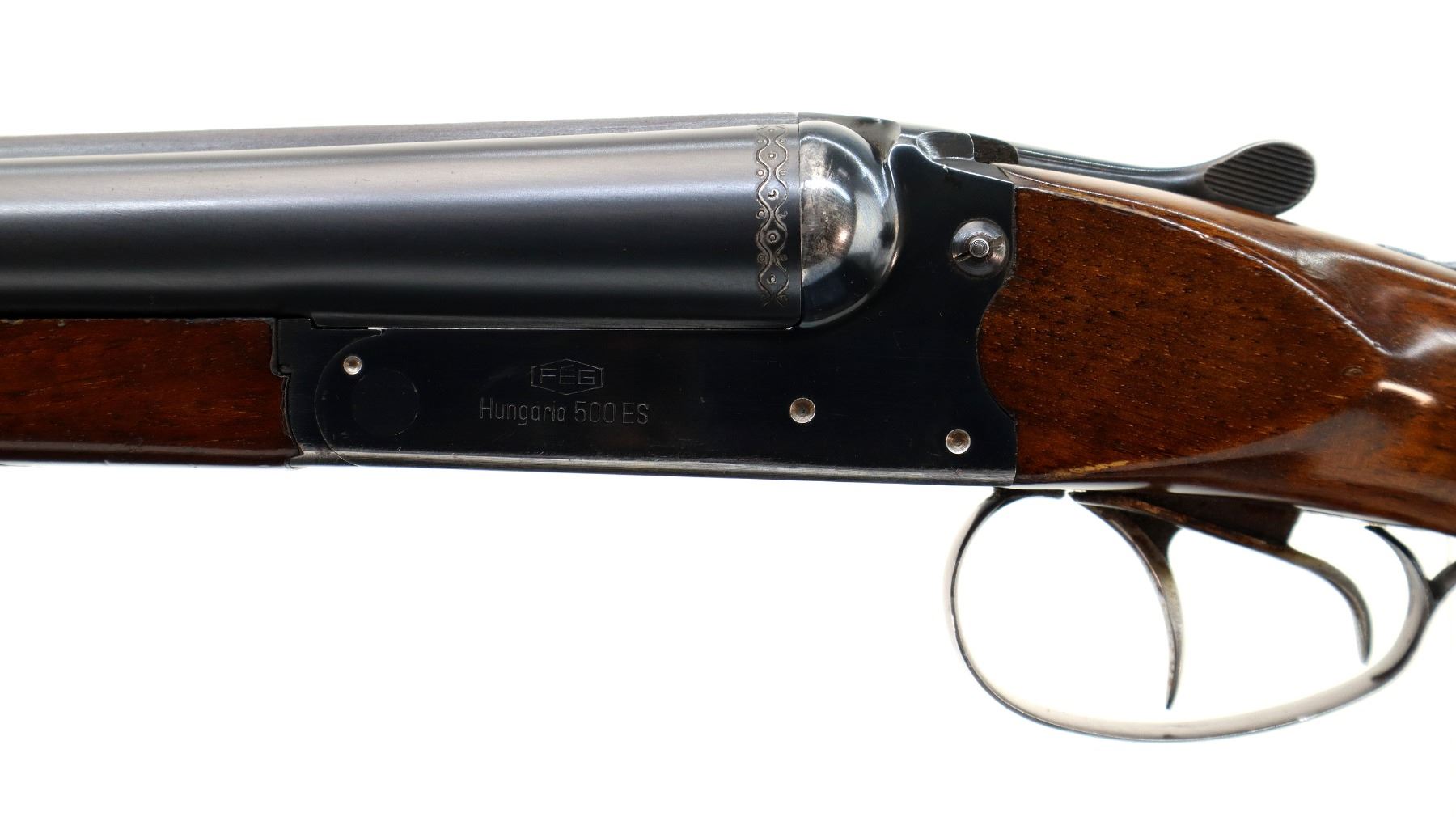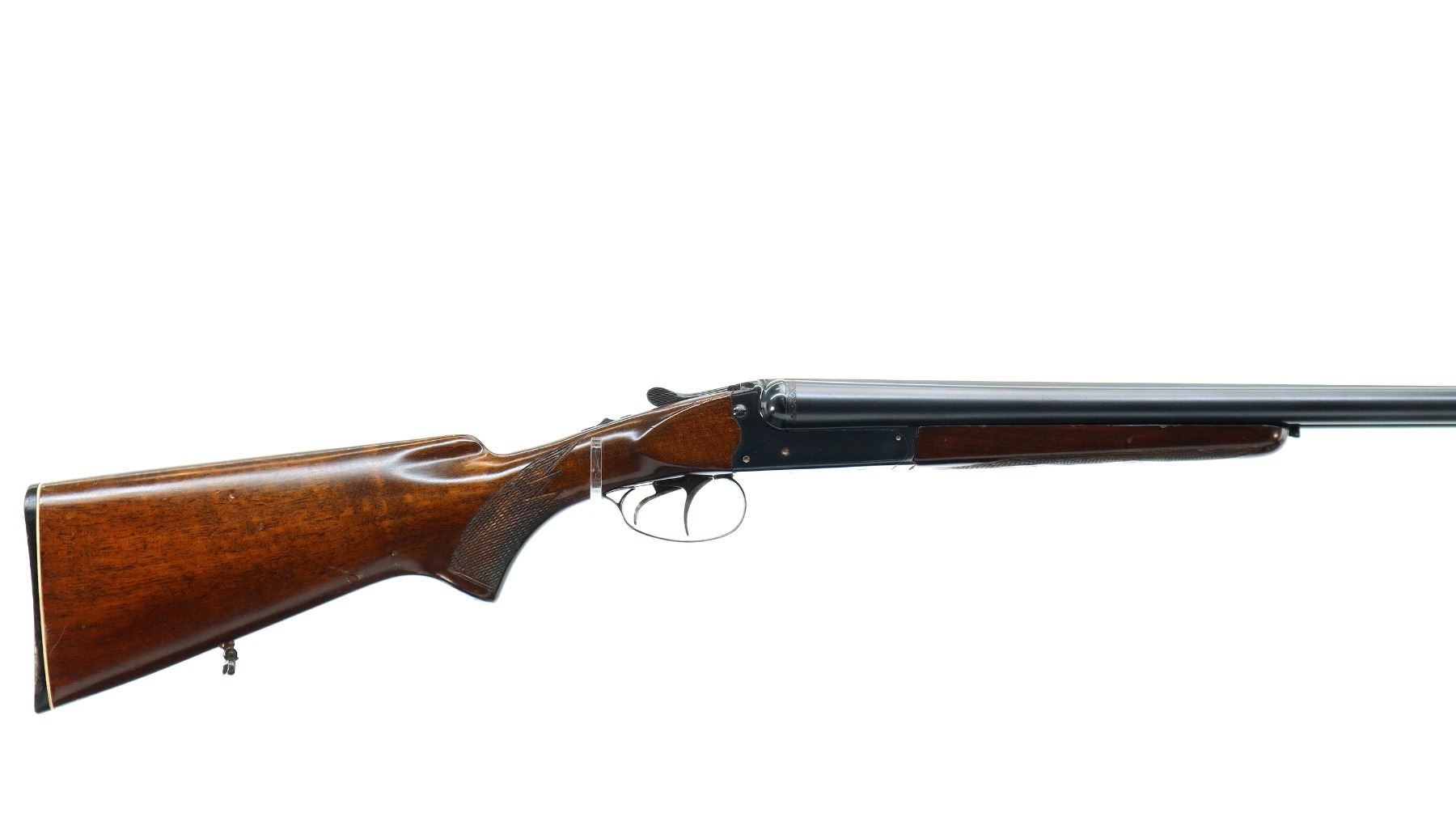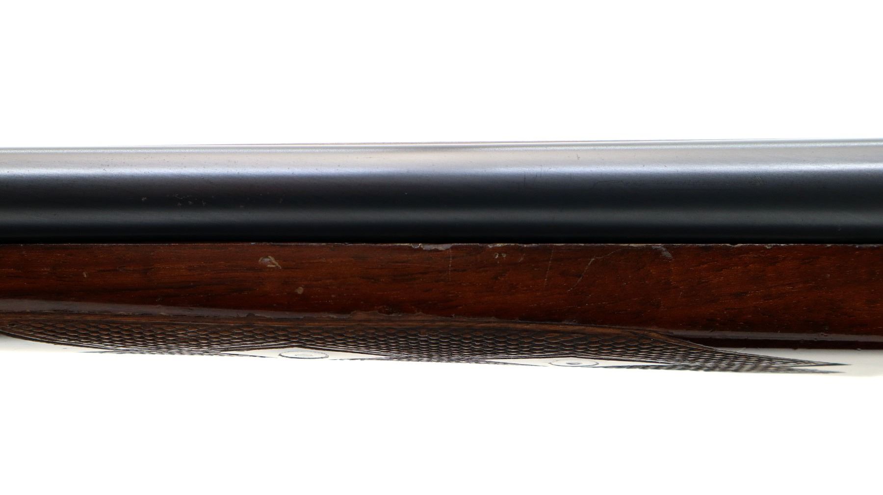 Main Description: Brass bead, blued finish, raised rib, automatic safety, ejectors, cocking indicators, double triggers. Two piece wood stocks, checkered forearm and pistol grip, European cheek rest, rear sling swivel only missing front holes are present.