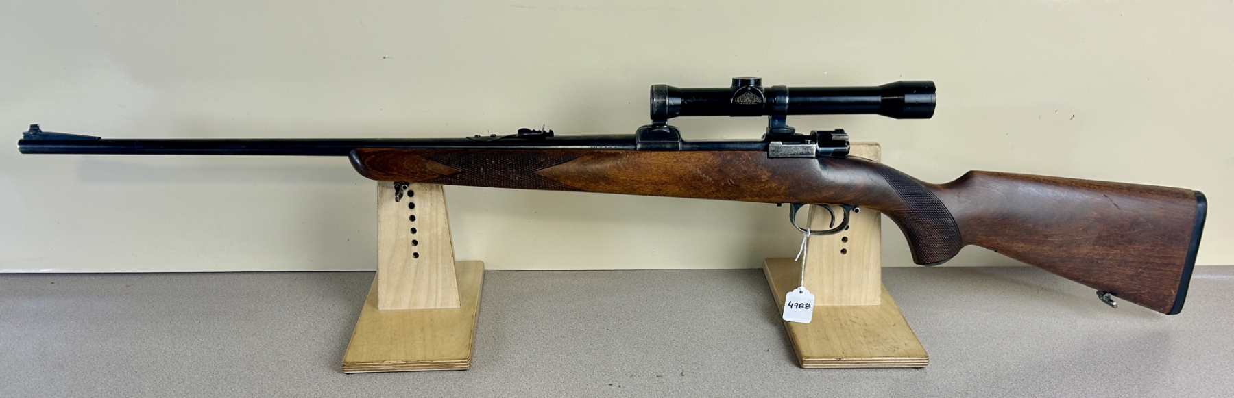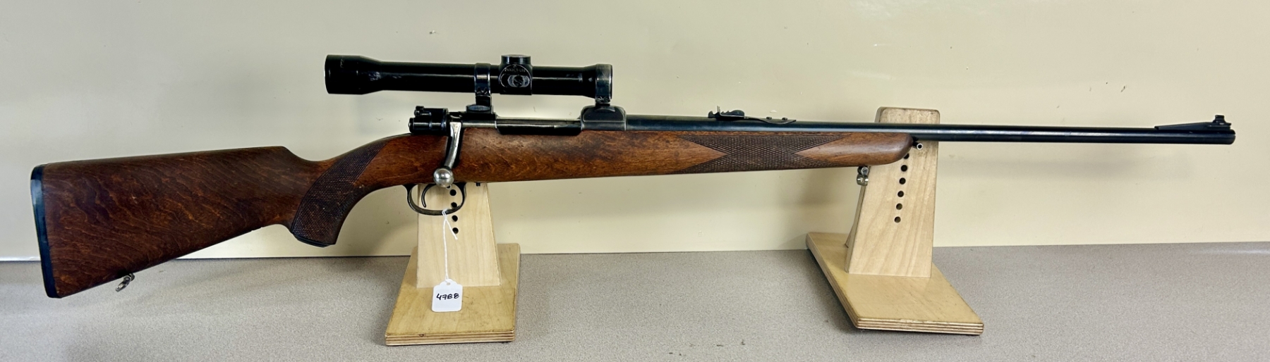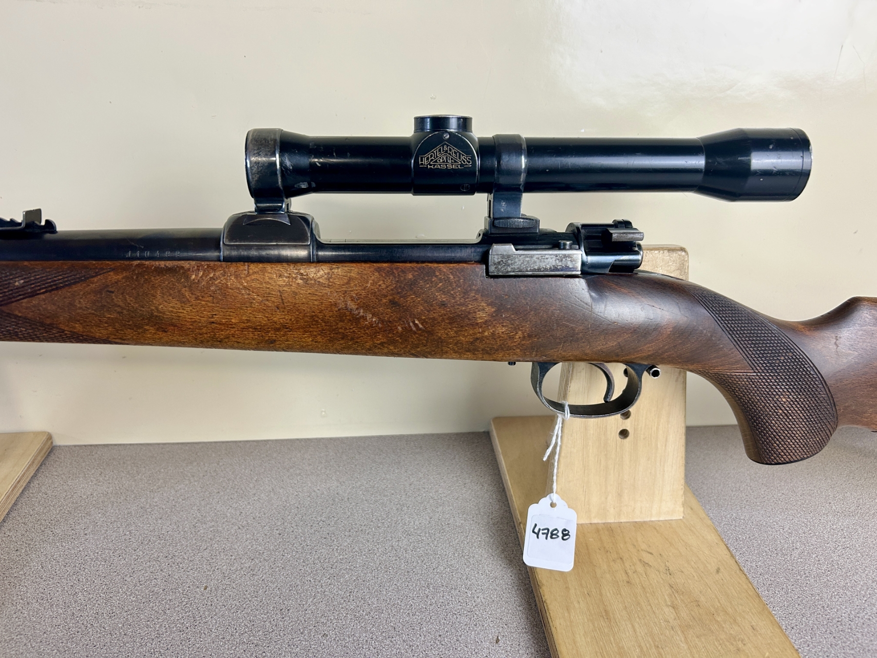 CONDITION: G OVERALL, BORE G-VG. NOTE: MINOR HANDLING MARKS. SPECS: 24IN BBL. EXTRAS: HERTEL & REUSS OPTIK CASSEL MACRO-ZIEL 2-3/4X SCOPE CLEAR WITH GERMAN 3 POST RETICLE. S/N: 110499