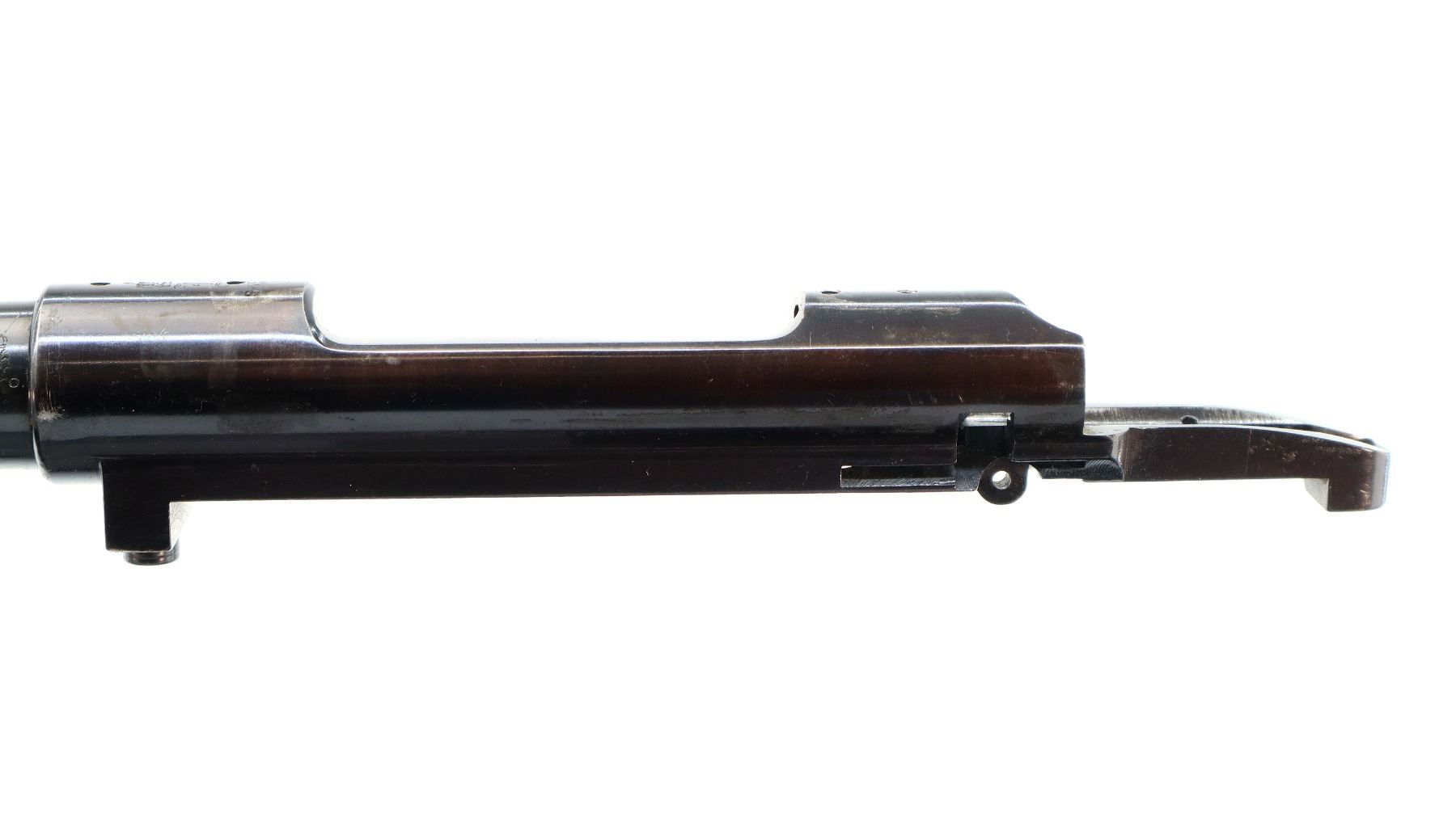 Main Description: No sights, threaded holes and dovetail present, blued finish, barrel and receiver only missing all other parts and stock.