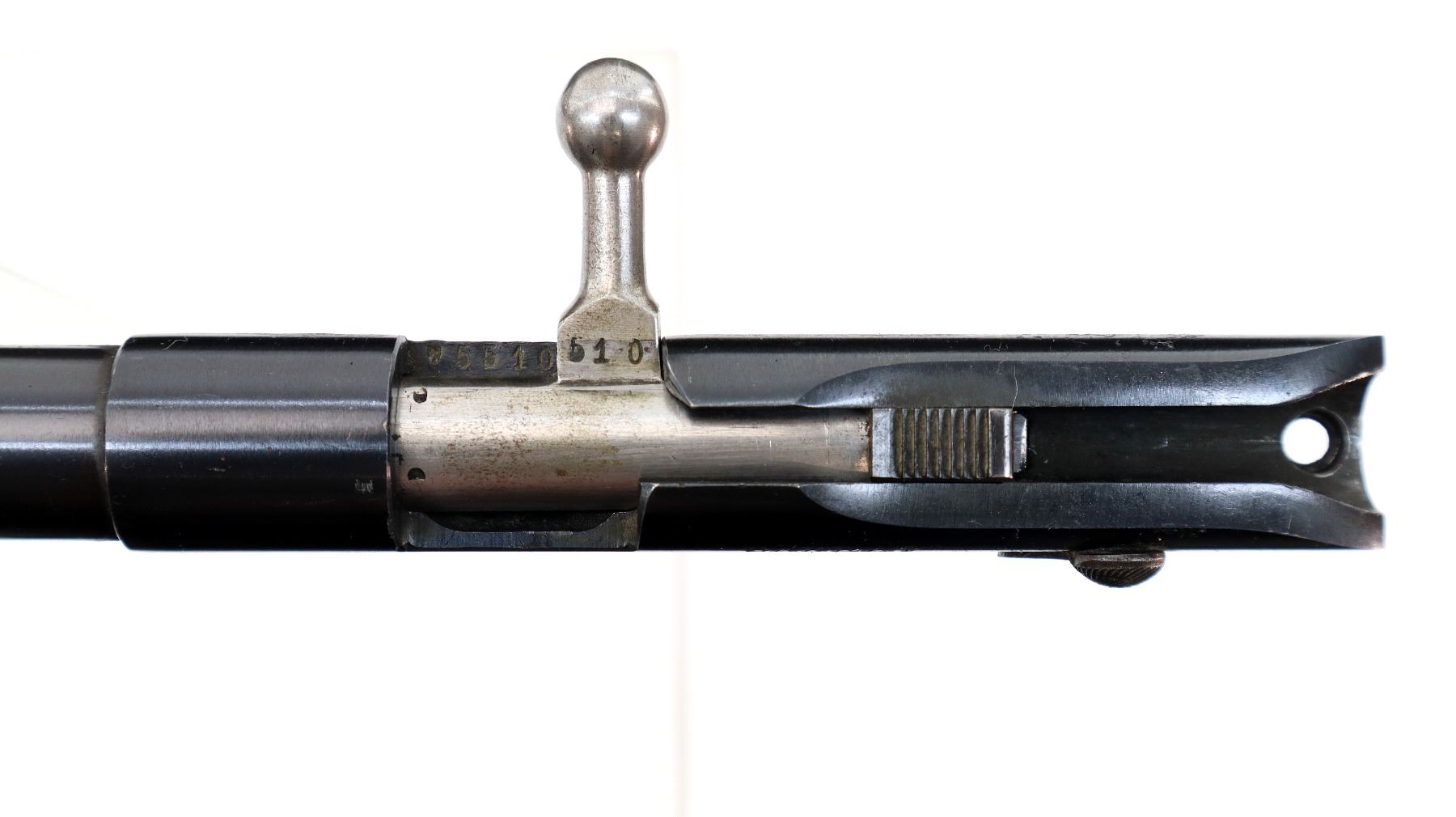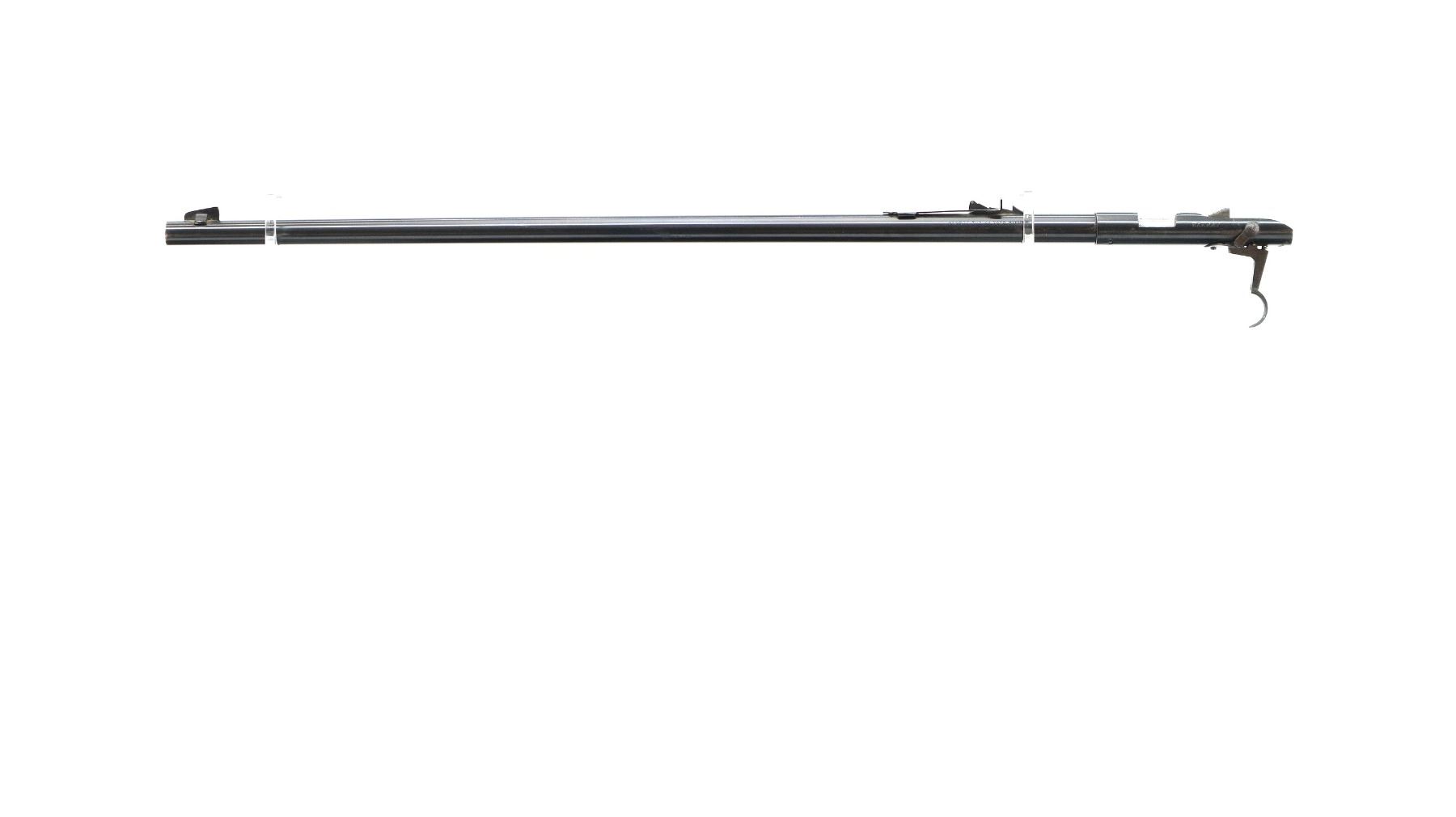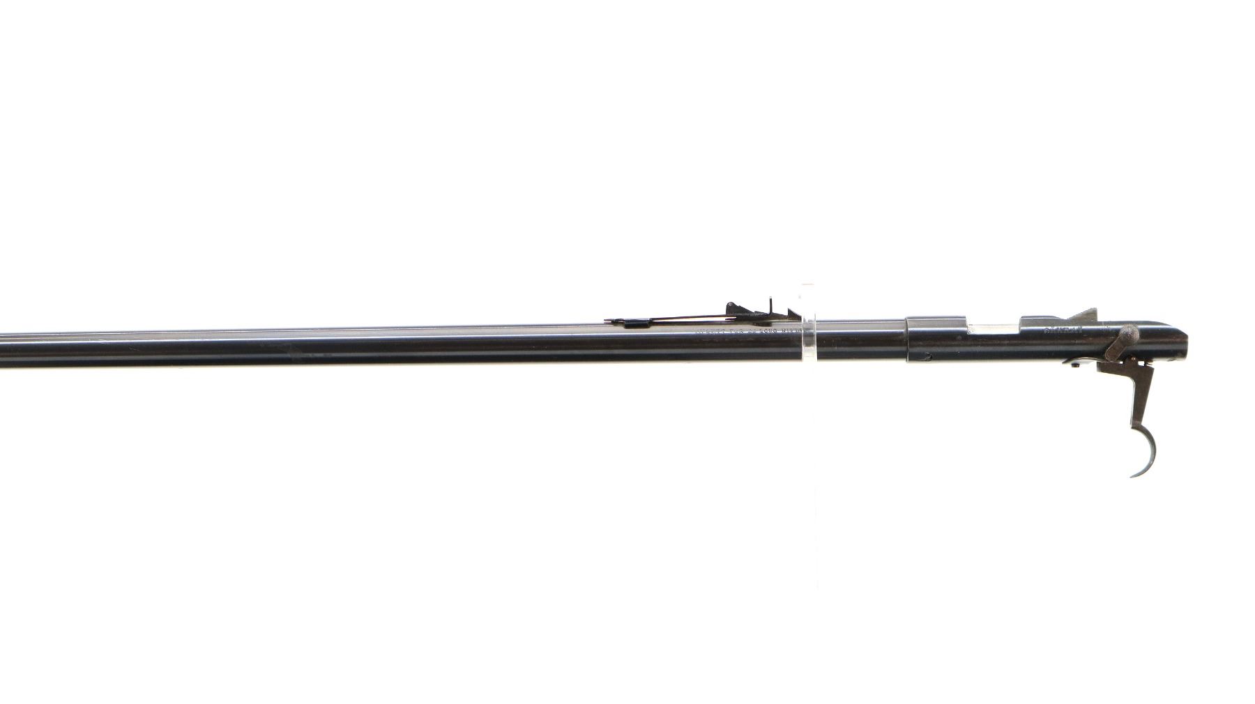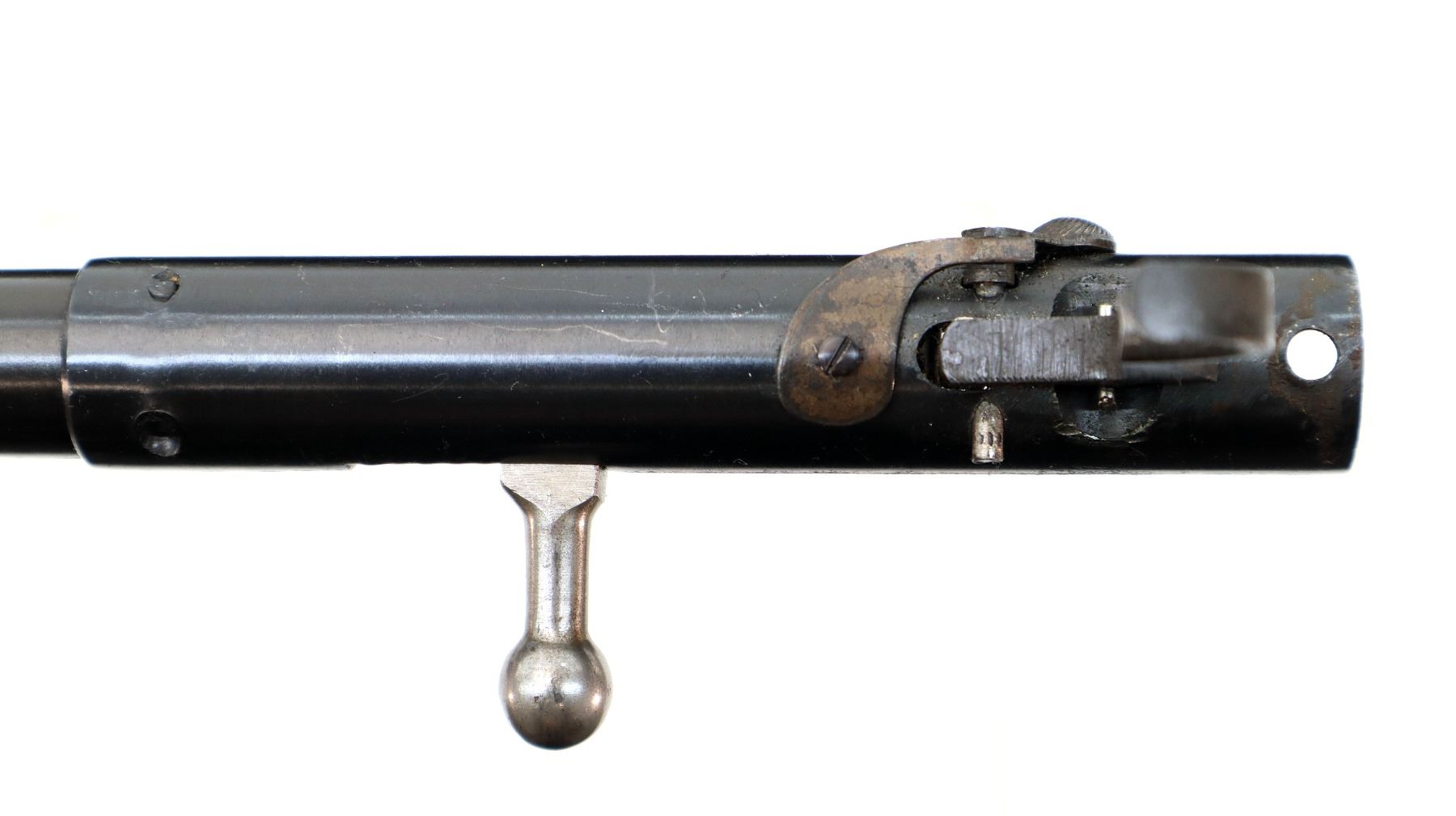 Main Description: Blade front sight, adjustable u notched rear sight, blued finish, heavy barrel, silver bolt with straight handle extractor is present, includes trigger and safety, missing complete stock assembly.