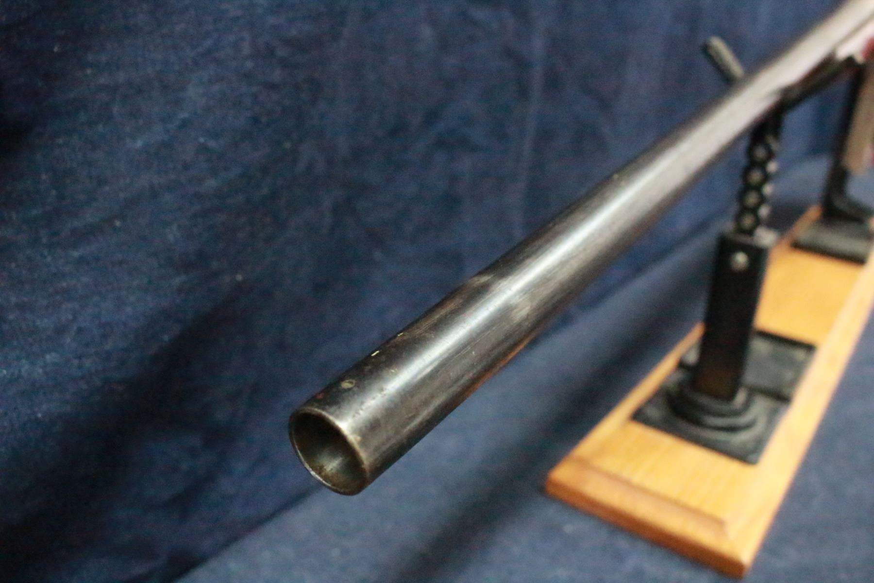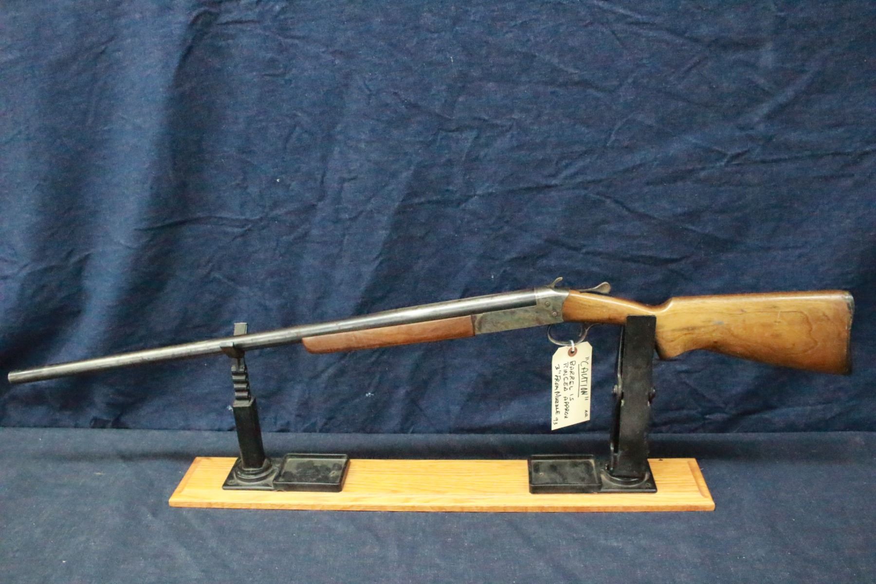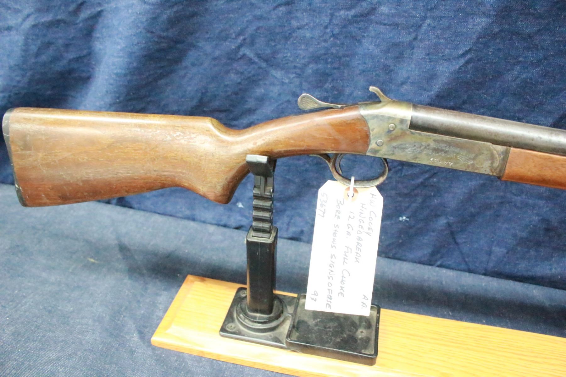 12 ga.; Hinged Break; Full Choke; Bore shows use; S/N 53677 ***Caution***Barrel is ringed approx. 3" from the muzzle