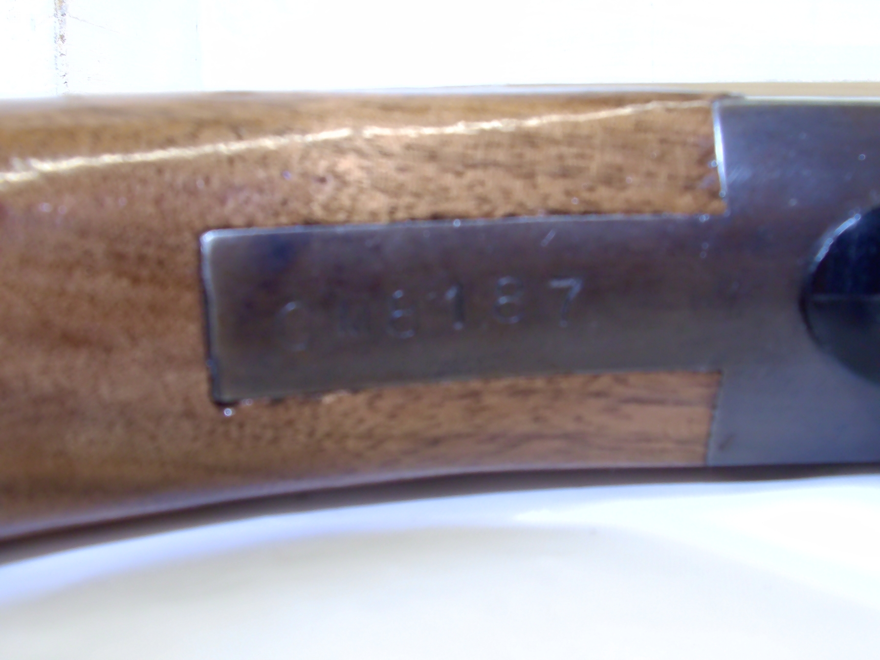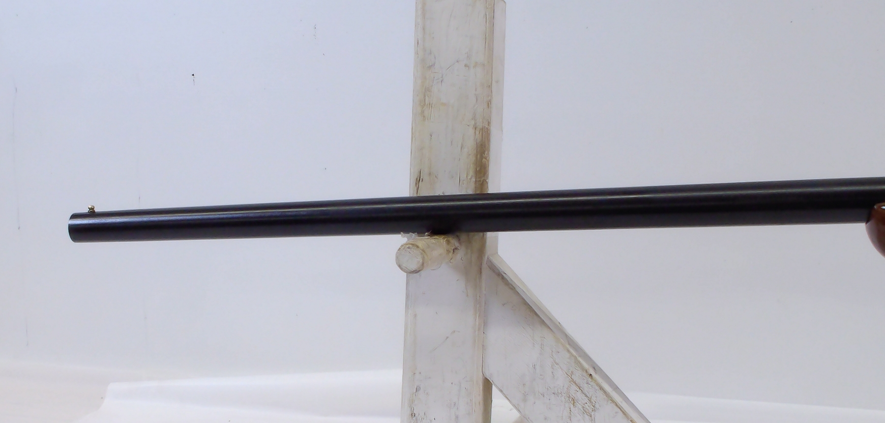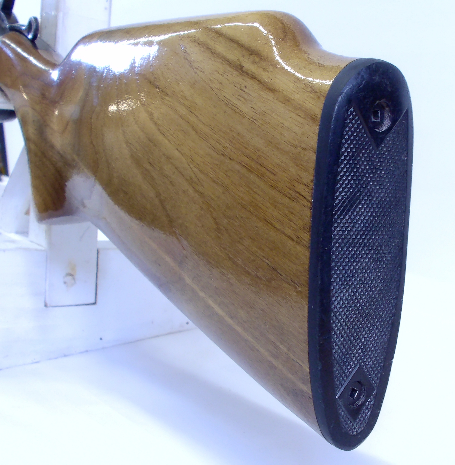 Wood stock shows some light scuffs, scratches, few light dents, 2 small cracks in grip area; condition is very good.