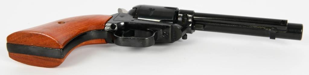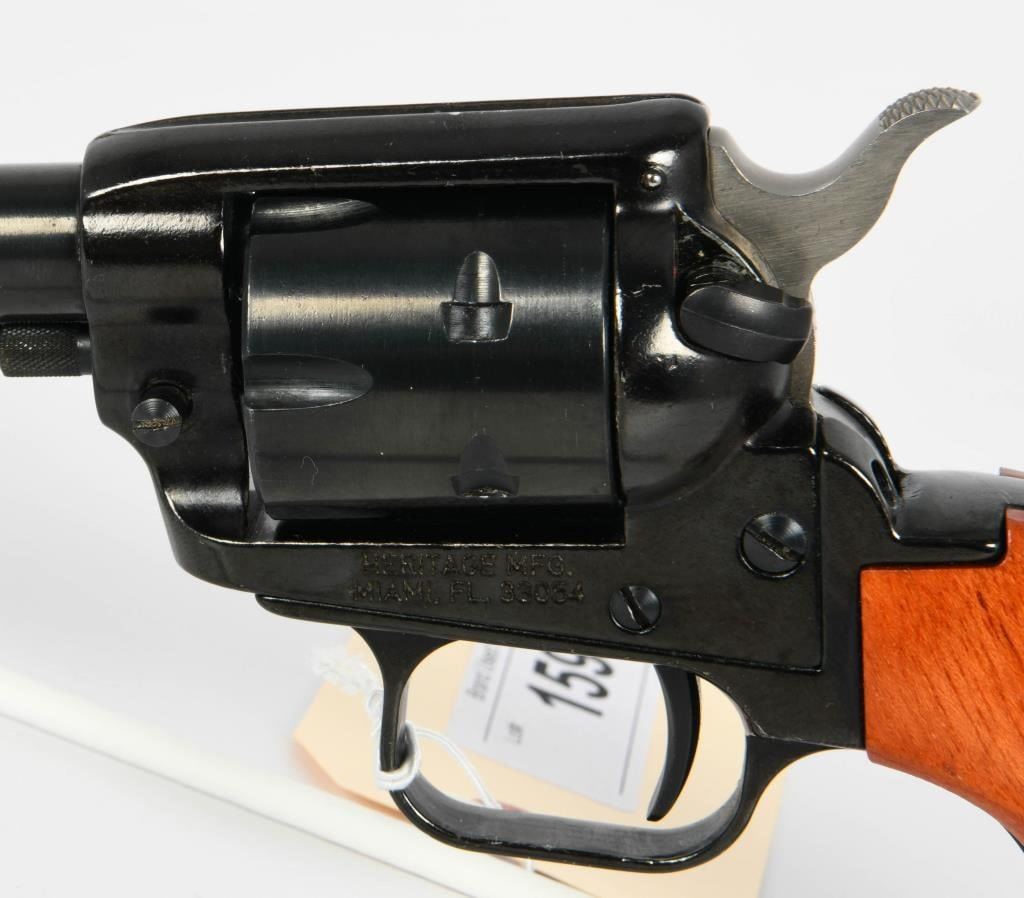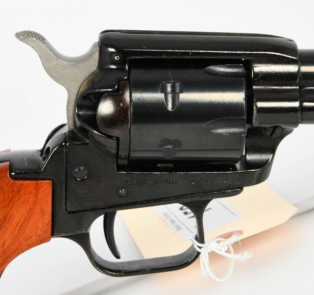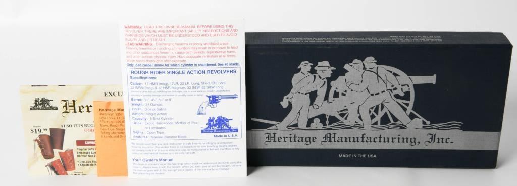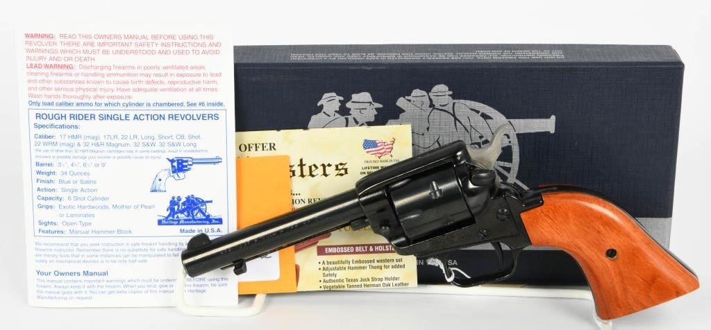 Up Next We Have a Heritage SAA Rough Rider Revolver Chambered in .22 LR, 4 1/2" Barrel, Wood Grips, and Comes in The Factory Box With Paperwork. Appears in Excellent Condition.