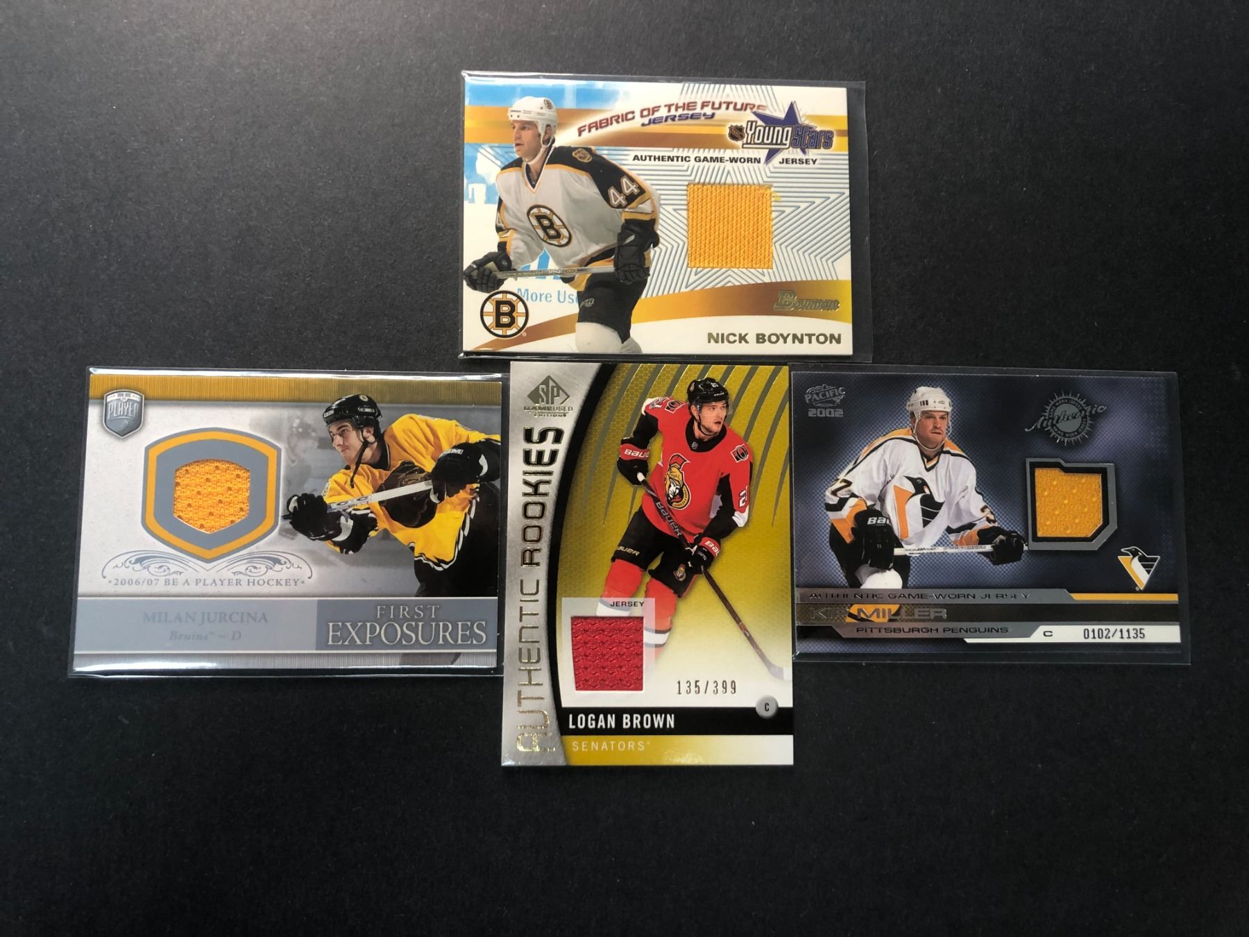 Lot of 4 game used jersey cards as shown