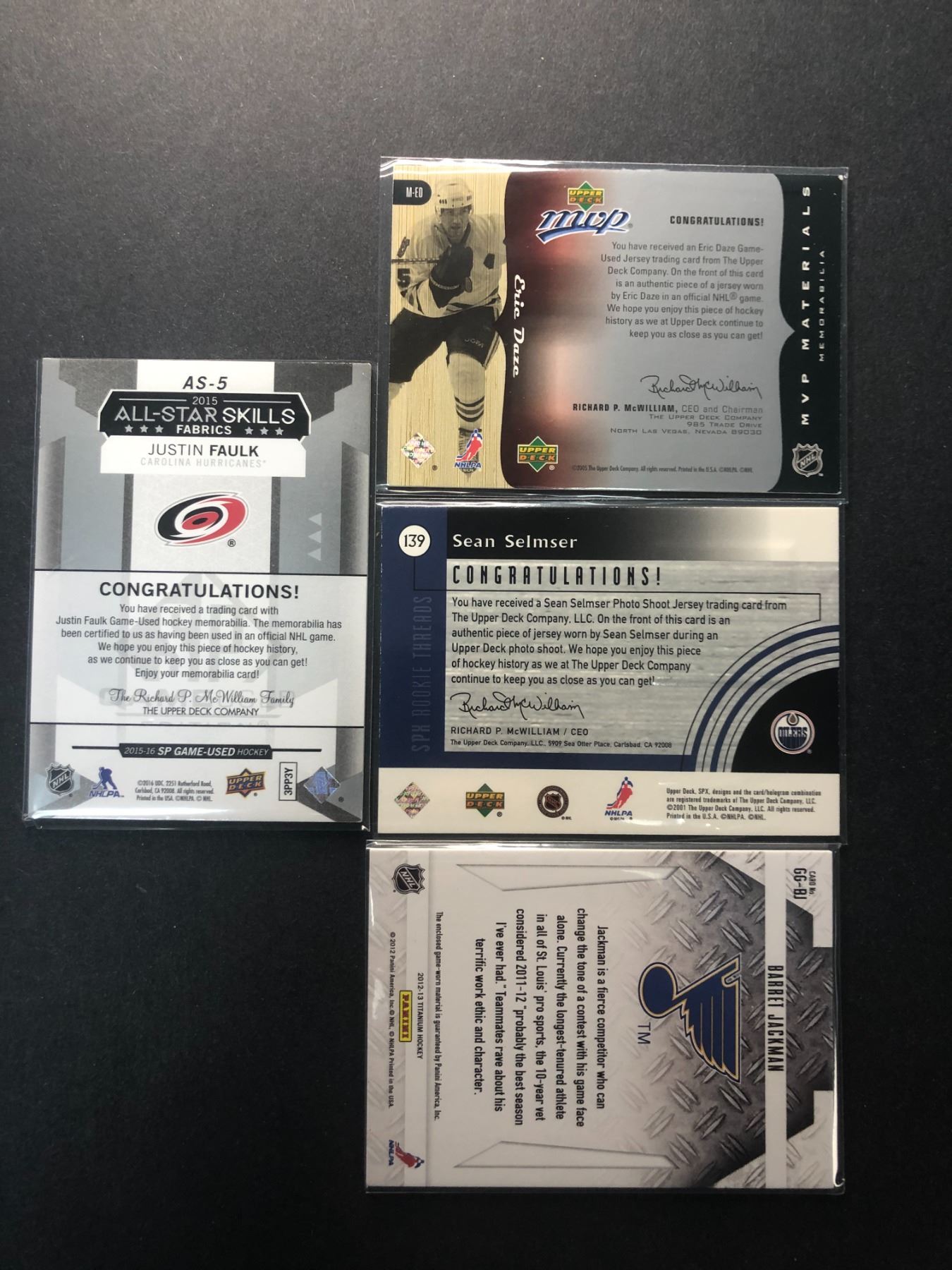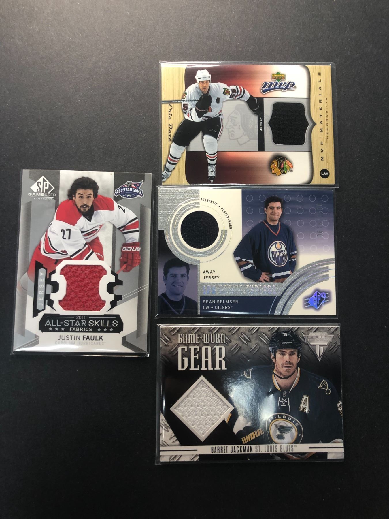 Lot of 4 game used jersey cards as shown