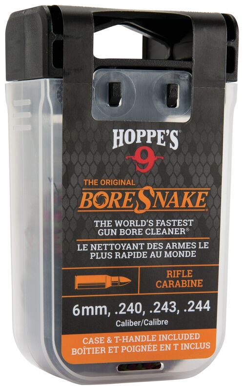 Hoppe's BoreSnake w/ Carry Case & Pull Handle 6mm/.240/.243/.244. This listing is for one brand new, unopened, factory sealed unit. UPC: 26285001013.