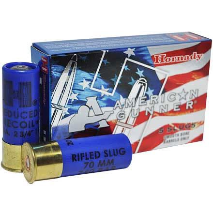 Hornady American Gunner 12 Gauge 2 3/4" 1 oz Rifled Slug Reduced Recoil (5 Rounds). This listing is for one brand new, unopened, factory sealed unit. UPC: 90255862317.