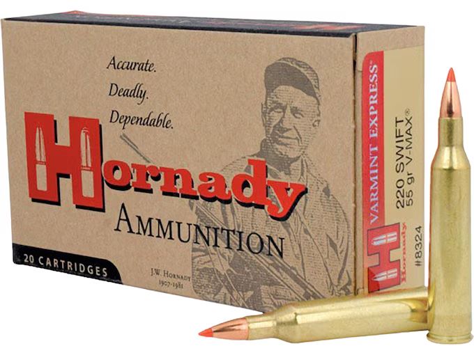 Hornady Varmint Express .220 Swift 55 Grain V-Max (20 Rounds) Sku 8324This Lot is for One Brand new, sealed Unit. UPC : 90255383249