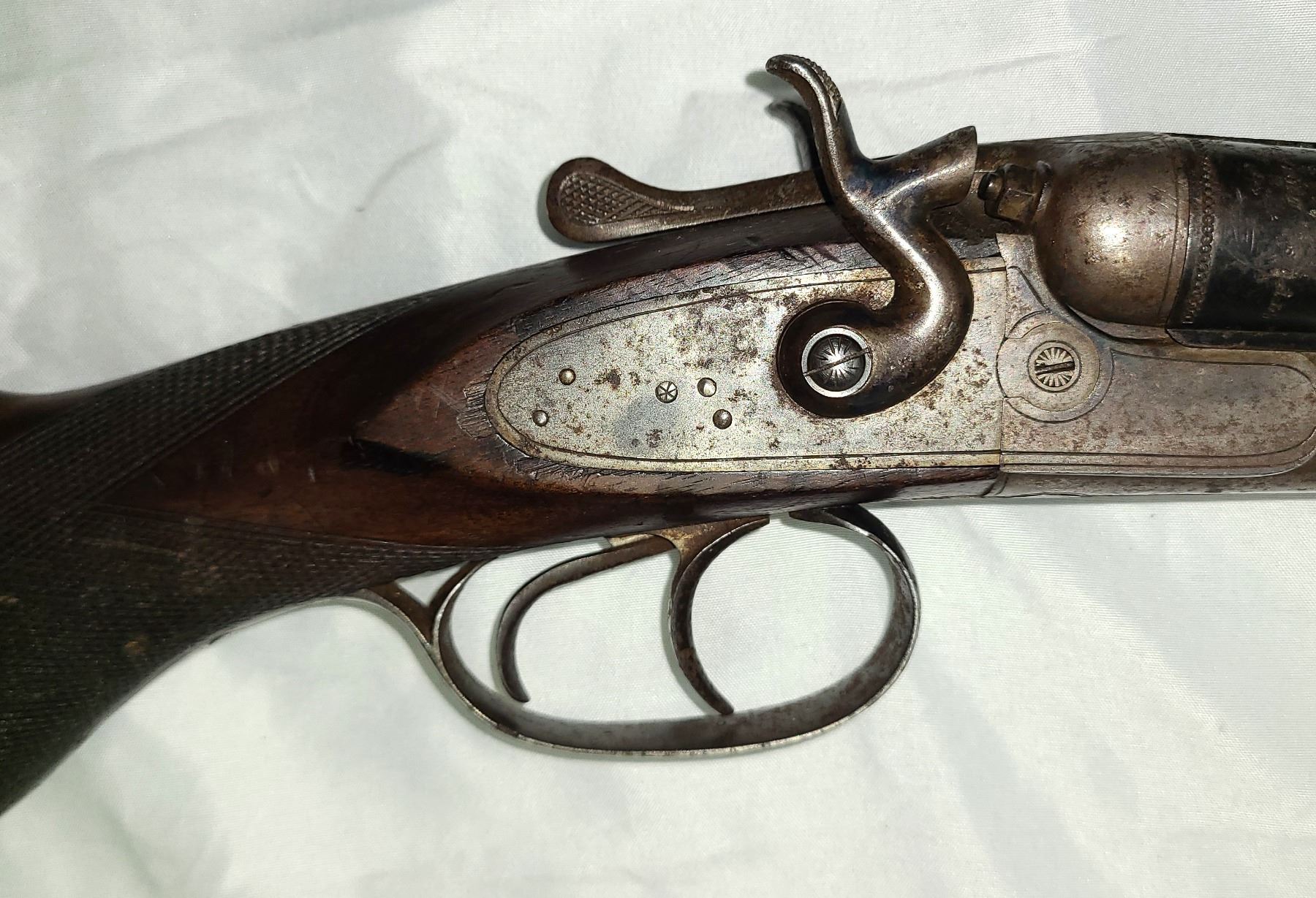 Barrels have no dents - Metal shows a silver patina. Wood shows nicks, scratches