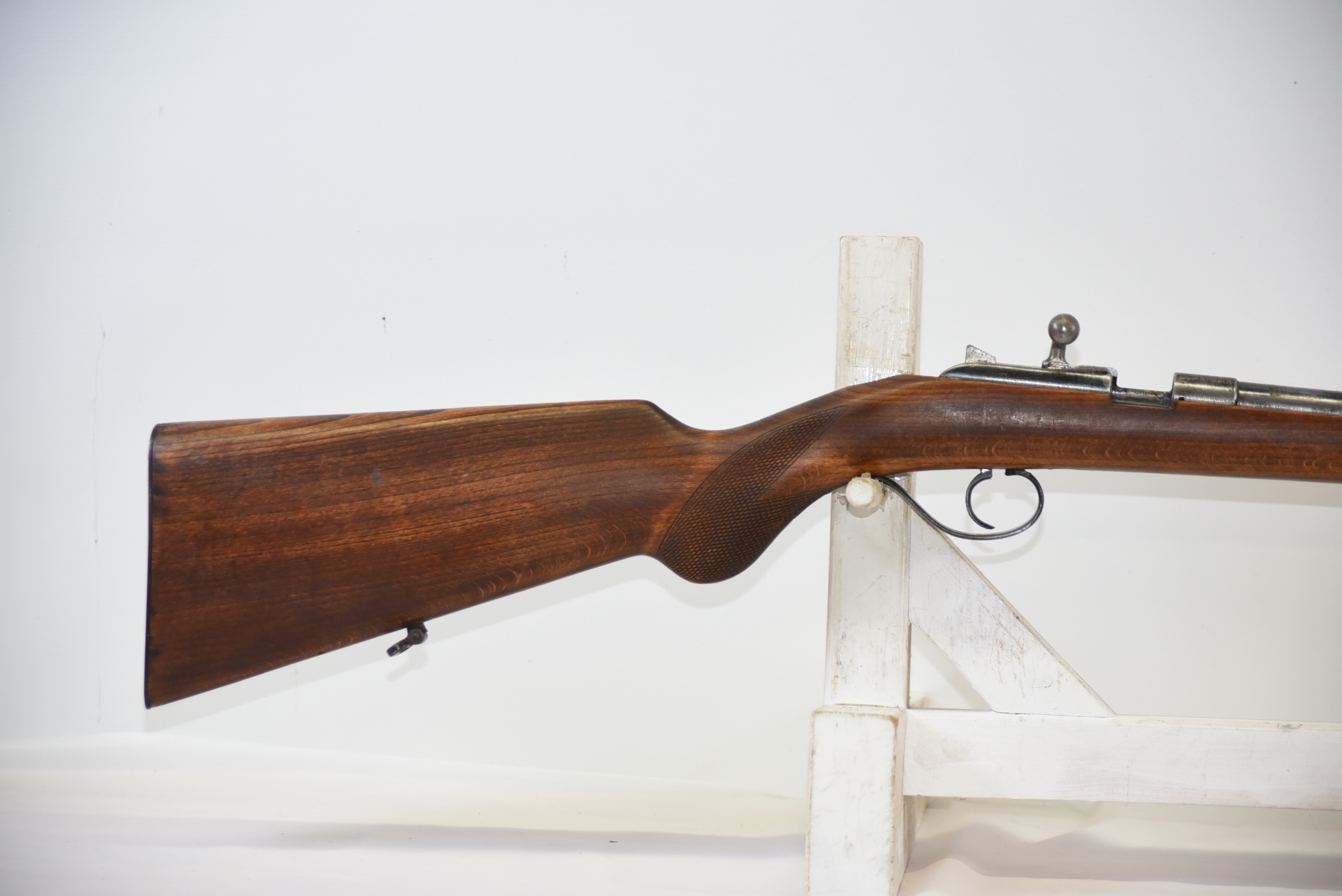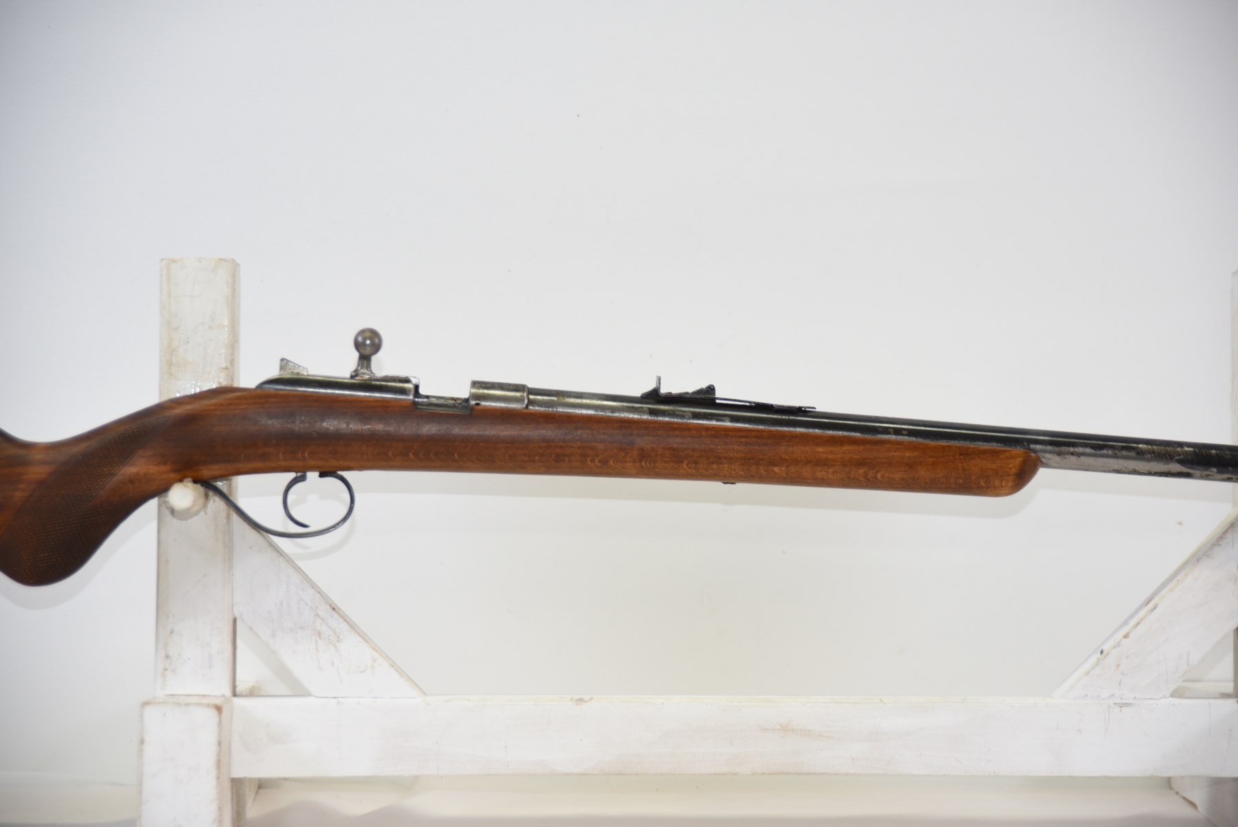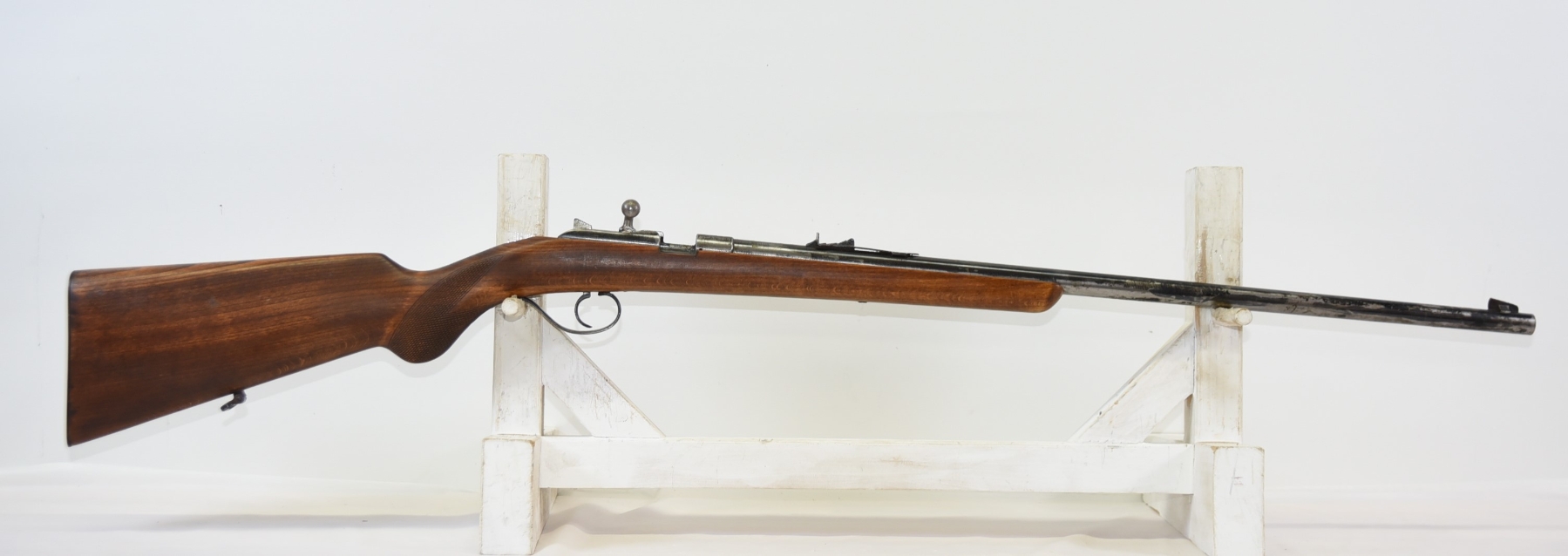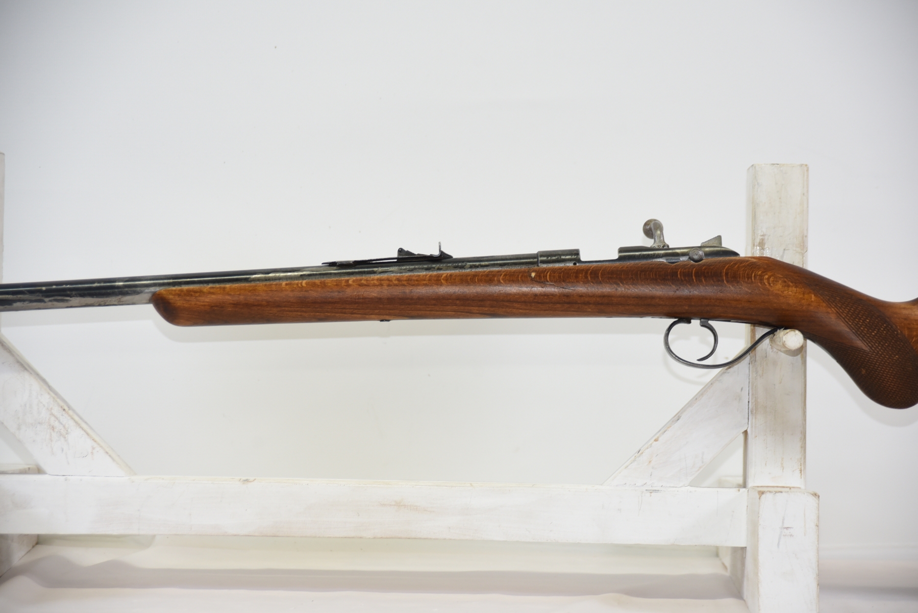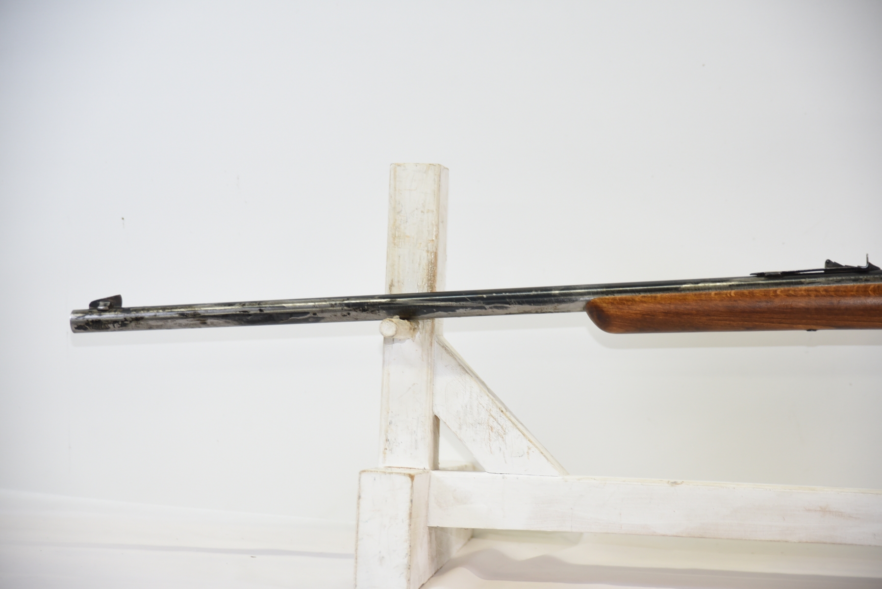 Wood stock shows scratches, scuffs, dents; condition is fair.