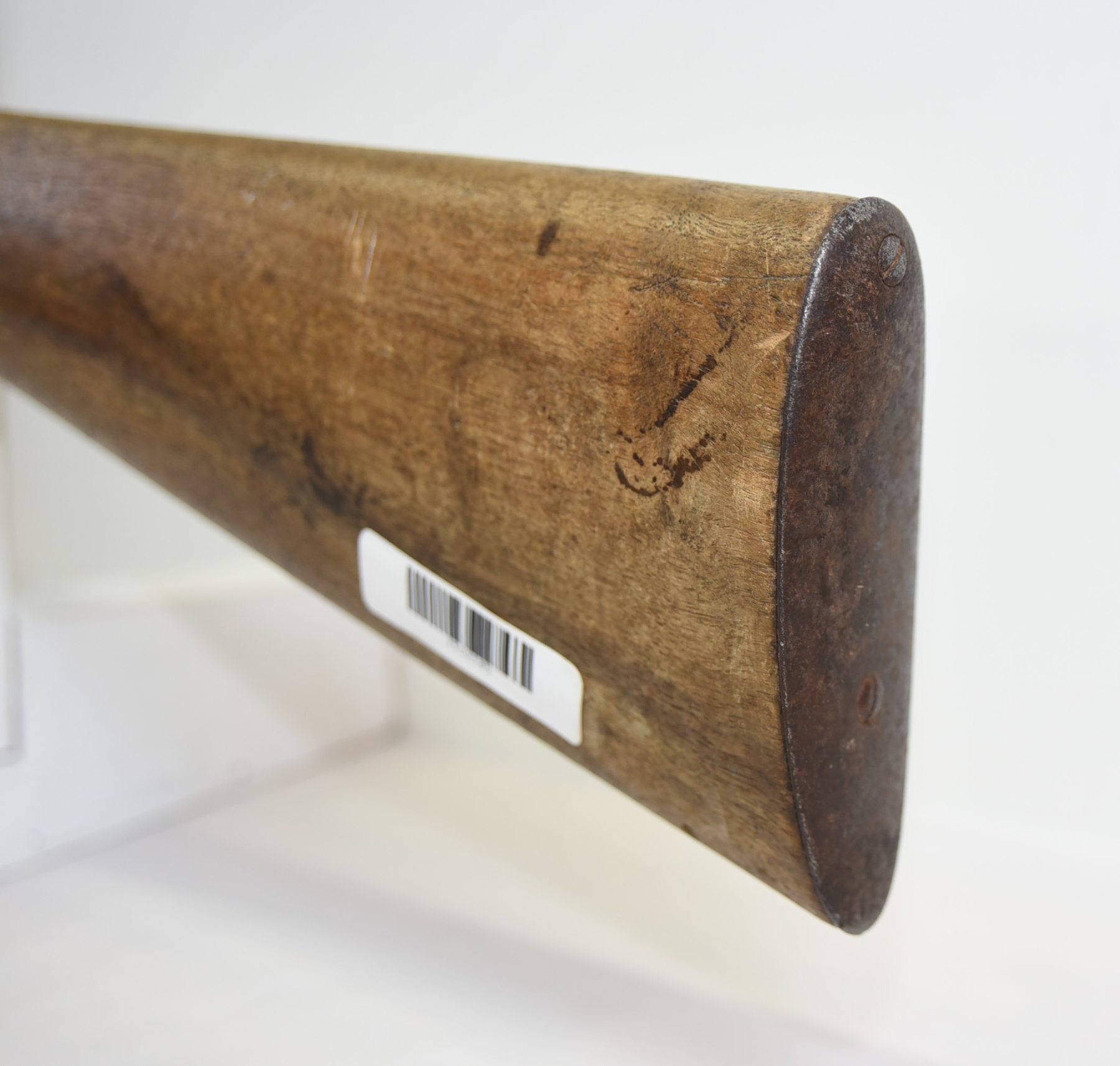 Wood stock shows worn finish, there is a crack on the left side about 2", there are dents, scratches, scuffs; condition is less than fair.