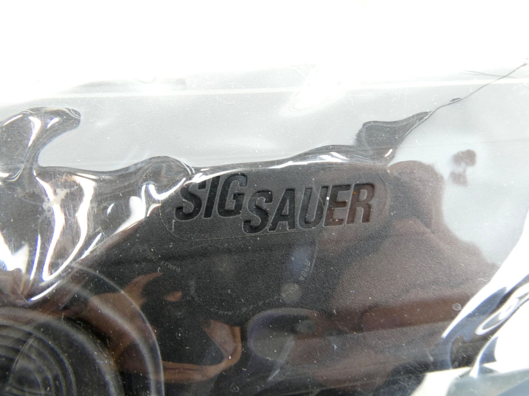 (1) BLACK POLYMER HOLSTER, FITS SIG SAUER P250 .45 ACP HANDGUNS, HOLSTER MARKED: "SIG SAUER", "SIG SAUER P250, FS -.45ACP #8500485" & VARIOUS OTHER MARKINGS, ROTATING BELT CLIP, WITH ORIGINAL PACKAGING. SEE PHOTOS.