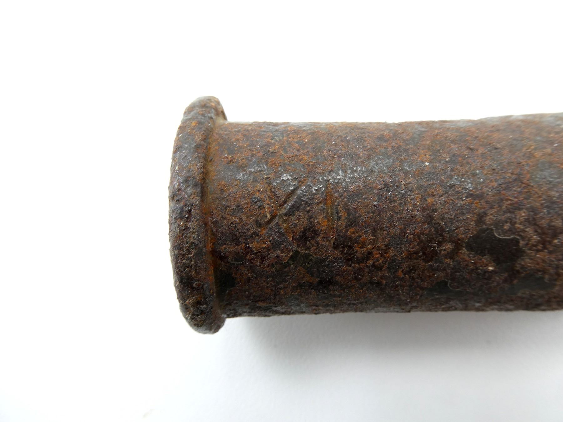 (1) FITS .733 CAL. 1841 PATTERN SAPPERS & MINERS CARBINE, 2ND TYPE (NO D-SHAPED KNUCKLE GUARD), NO VISIBLE MARKINGS ON BLADE, RUSTED / PITTED, SOCKET MARKED: "IX" OR "XI", NO SCABBARD, MUZZLE RING APPROX. 1" DIA., SOCKET OVERALL LENGTH APPROX. 4", BLADE WIDTH APPROX. 32MM, BLADE LENGTH APPROX. 22 3/8" & OVERALL LENGTH APPROX. 26 7/8". SEE PHOTOS.