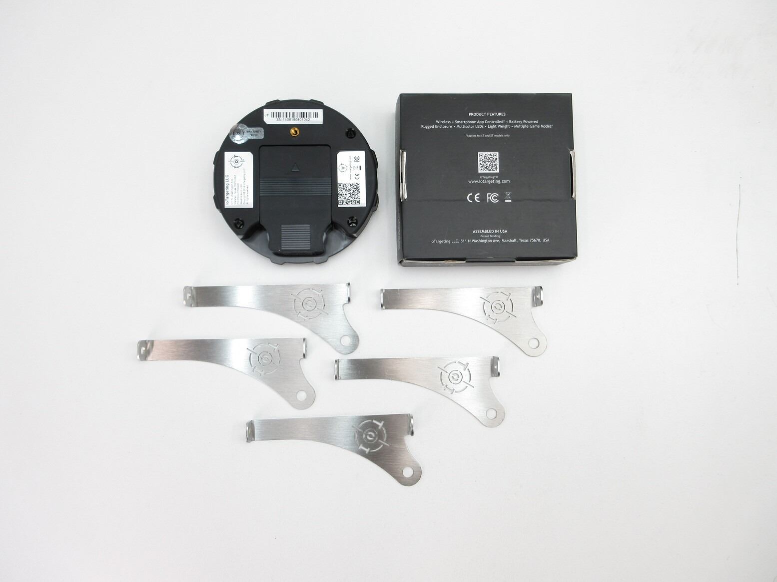 LOT INCLUDES; (28) TARGET PANELS, REACTIVE TARGET, RESETS MOMENTARILY ON ITS OWN, CAN BE USED AS STANDALONE TARGET OR ALONGSIDE OTHER LED TARGET PANELS, SILICONE TARGET PAD, WITH 1/4"-20 TPI ON BACK AND SIDES FOR EASY ATTACHMENT, BATTERY OPERATED, IDEAL FOR AIRSOFT & FOAM BLASTERS, TURNS ON, (10) MOUNTING BRACKET, ALUMINUM CONSTRUCTION, ATTACHES DIRECTLY TO IOTARGETING LED TARGET PANELS. SEE PHOTOS. *ITEM(S) MAY NOT BE EXACTLY AS PICTURED*