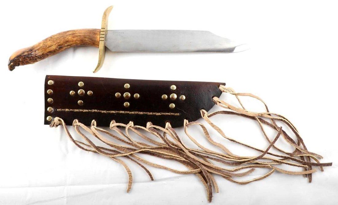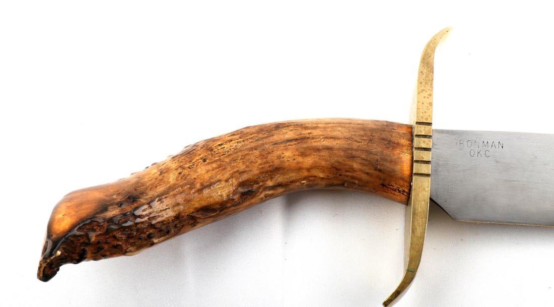IRONMAN OKC BOWIE KNIFE W STAG HANDLE & SHEATH