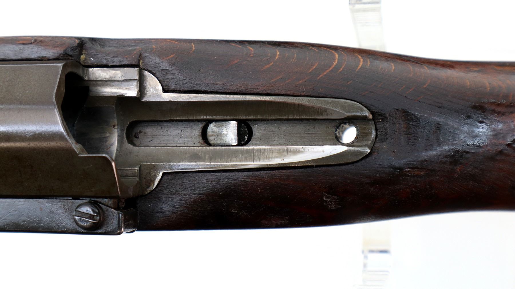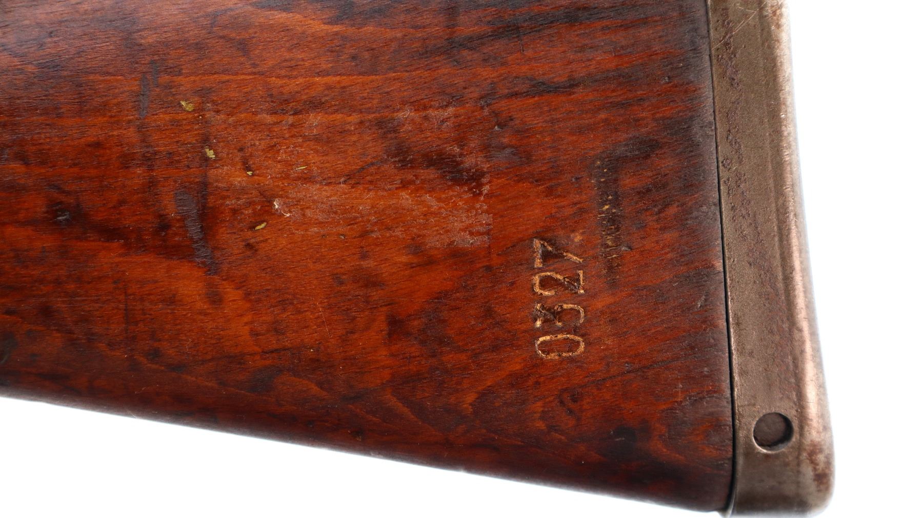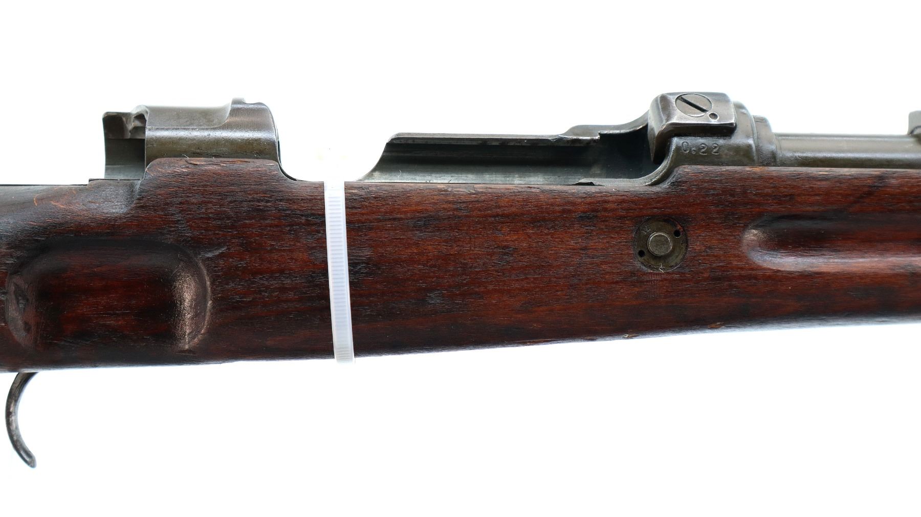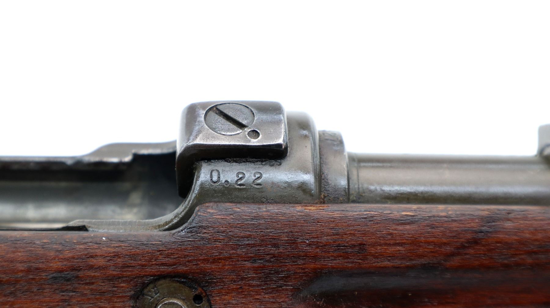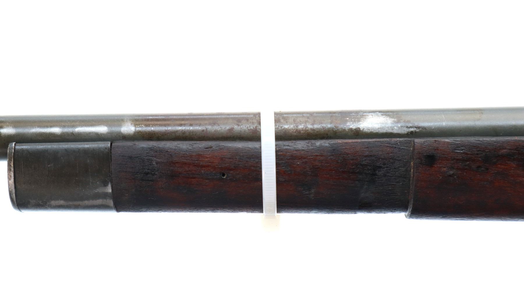 Main Description: Receiver manufactured by BYF, Barley corn front sight with ramp, adjustable u notched rear sight, Parkerized metal finish, barrel is marked Remington 521-T, Includes bolt stop, trigger and sear. Missing bolt assembly, trigger guard, action screws, top handguard, barrel bands and associated parts. Has one piece full military wood stock, finger grooved forearm, pistol grip, smooth cupped steel butt plate, rear sling slot.