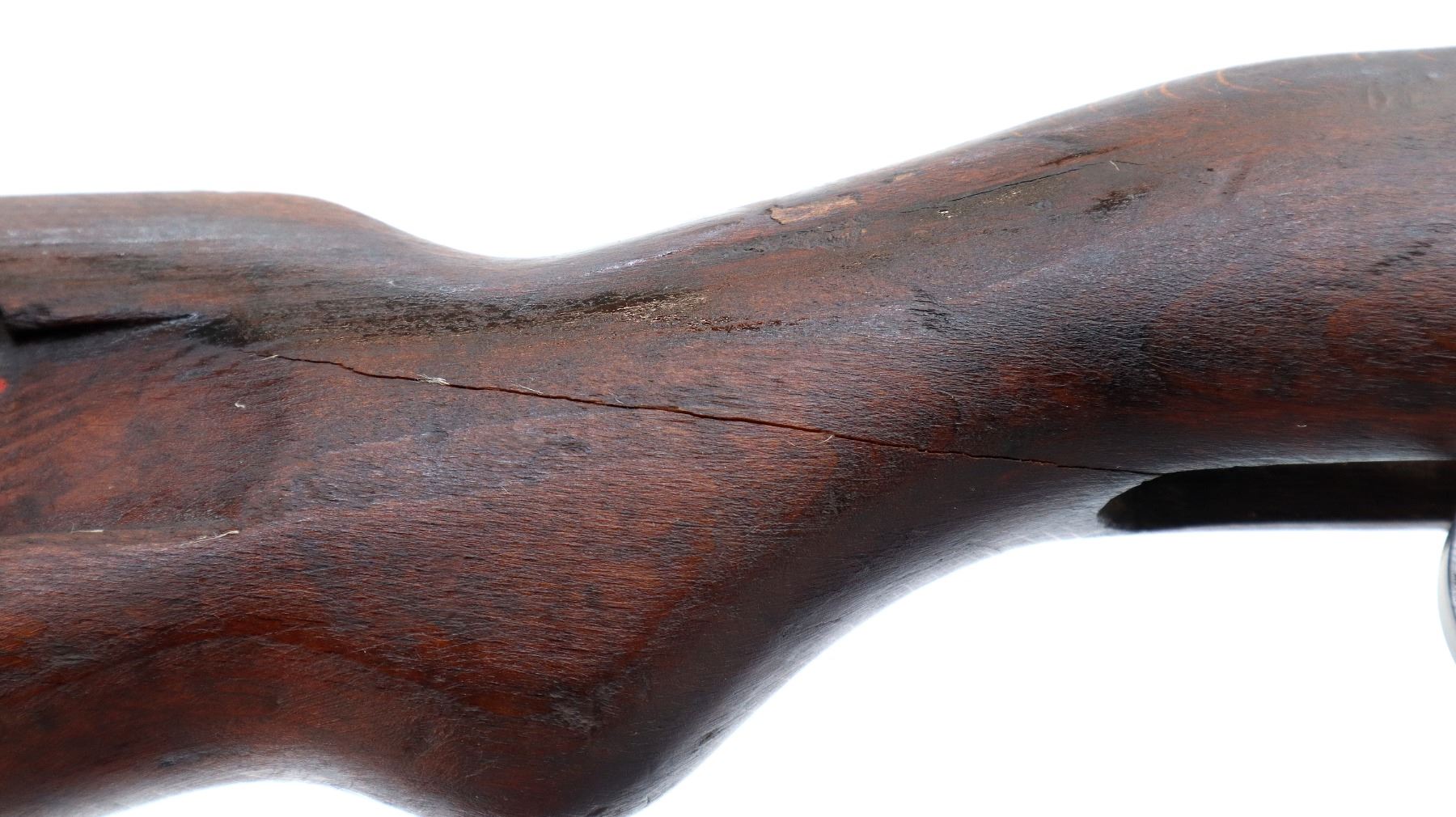 Wear: Metal finish shows some light rust speckles, scratches, handling marks and wear. Stock shows some marks, scratches and wear.