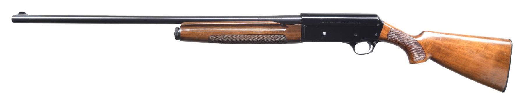 Cal. 12 Ga., 2 3/4". S# B65067. Italian "XX7" proof indicates 1971 mfg. Bbl. 28" w/ blade front sight & Full choke. Black anodized receiver. Checkered walnut stock w/ Franchi buttplate. CONDITION: Good blue & black finish with peppery oxidation & marks. Fair wood finish with large chip missing from left side of forearm & repaired crack on right side of wrist. Shiny bore with light fouling. (25-2712/MD). CURIO. $300-500.