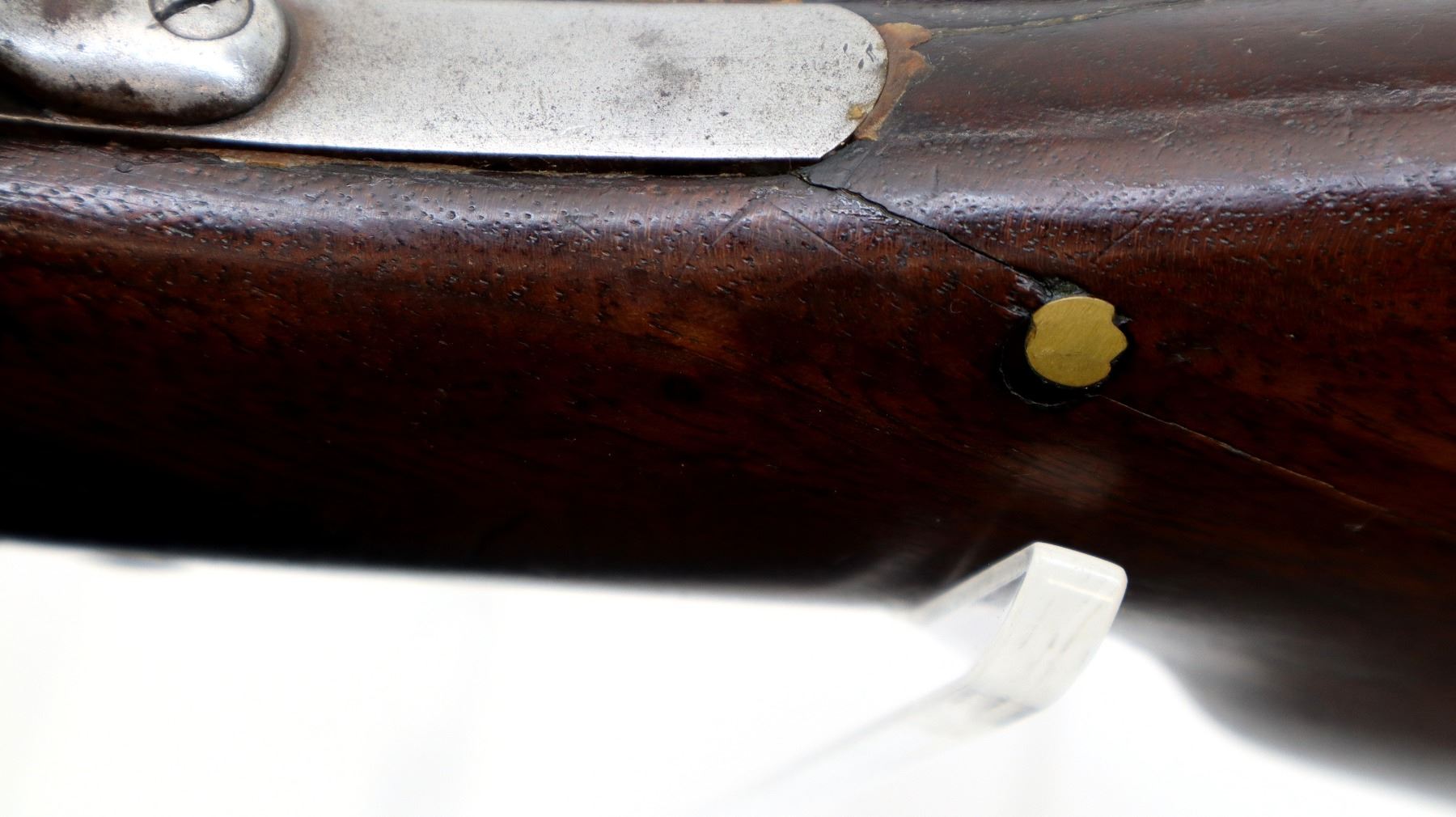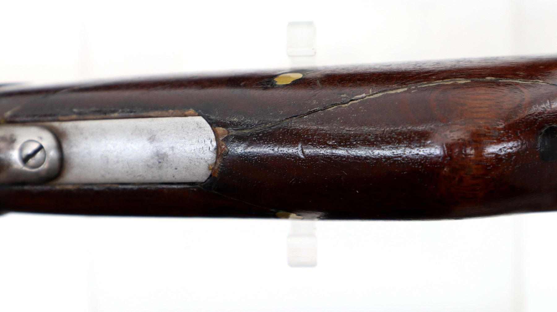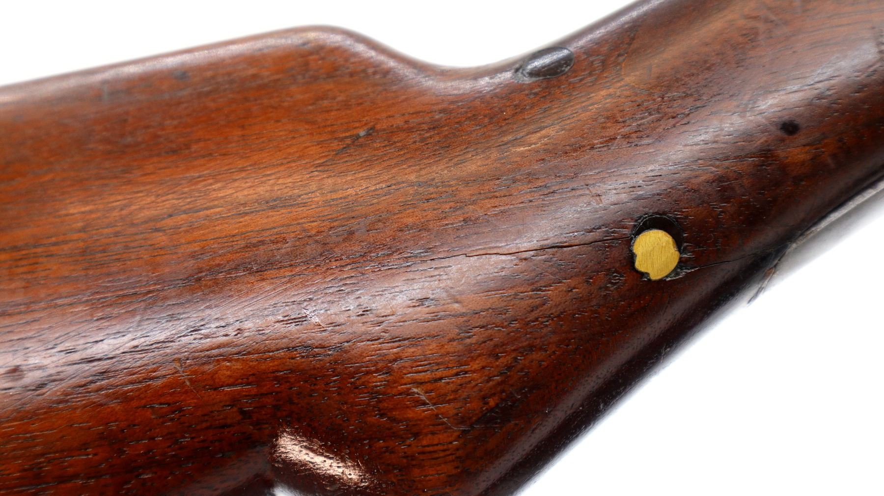 Wear: Metal finish turning brown with pitting, rust, scratches, handling marks and wear. Stocks show some marks, scratches and wear.