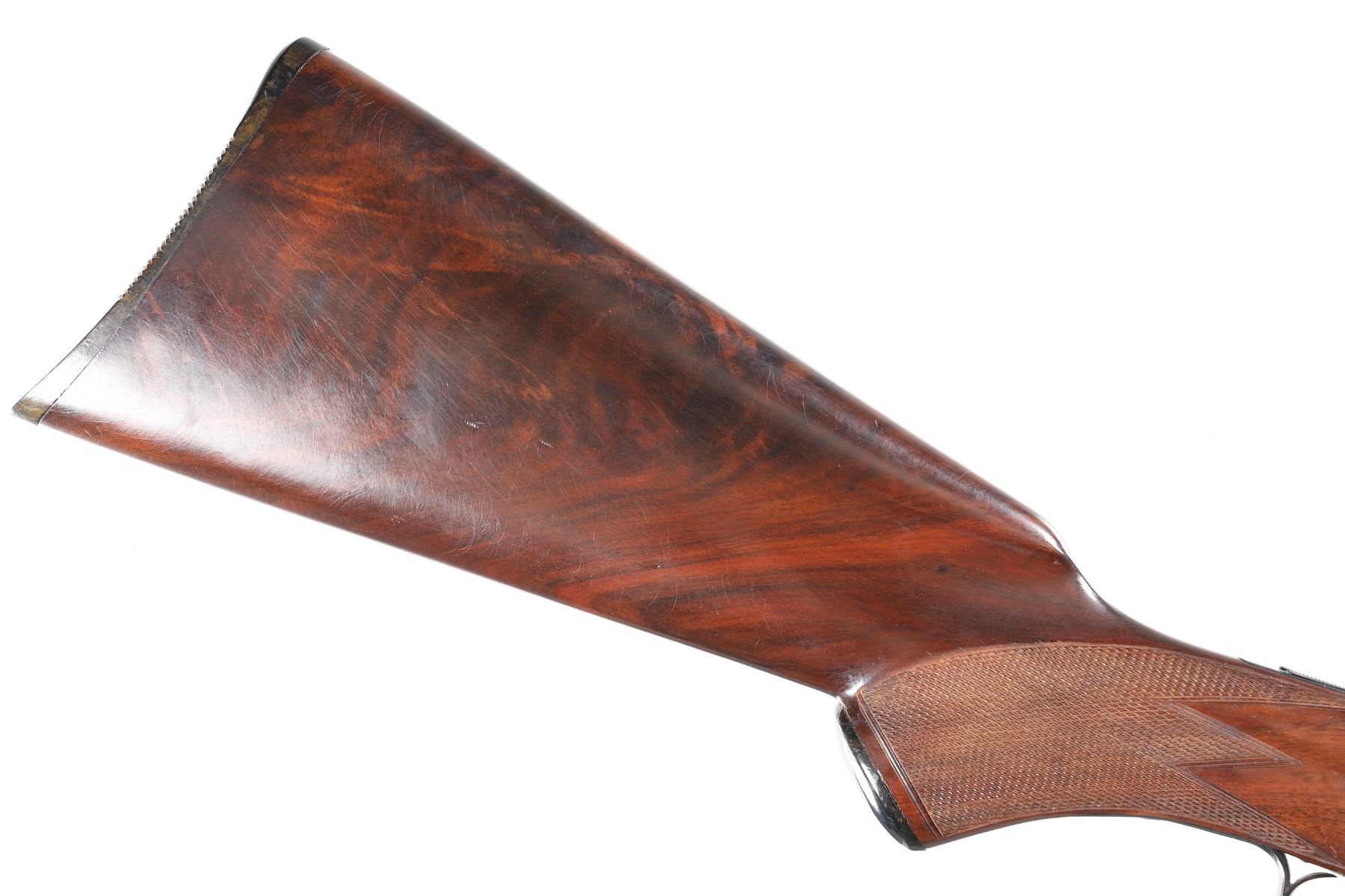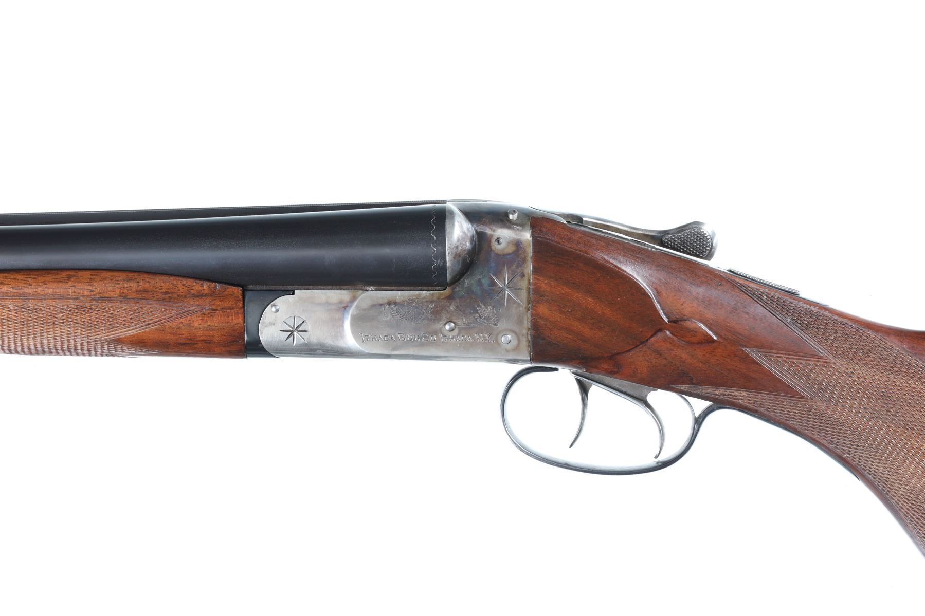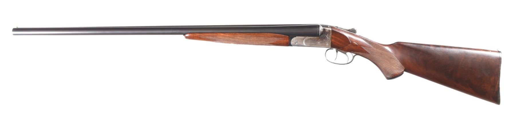 16ga Serial # 457922 Scarce New Ithaca 16 Ga, double side by side shotgun. Blue finished Bbl's with case colored receiver. Double trigger. Metal surfaces rate very good plus, semi beaver tail forend with owner upgraded checkering. Choked Imp Mod/Imp Cyl with extractor, LOP: 14 1/2". Mechanically excellent. C&R Barrel 28" C&R