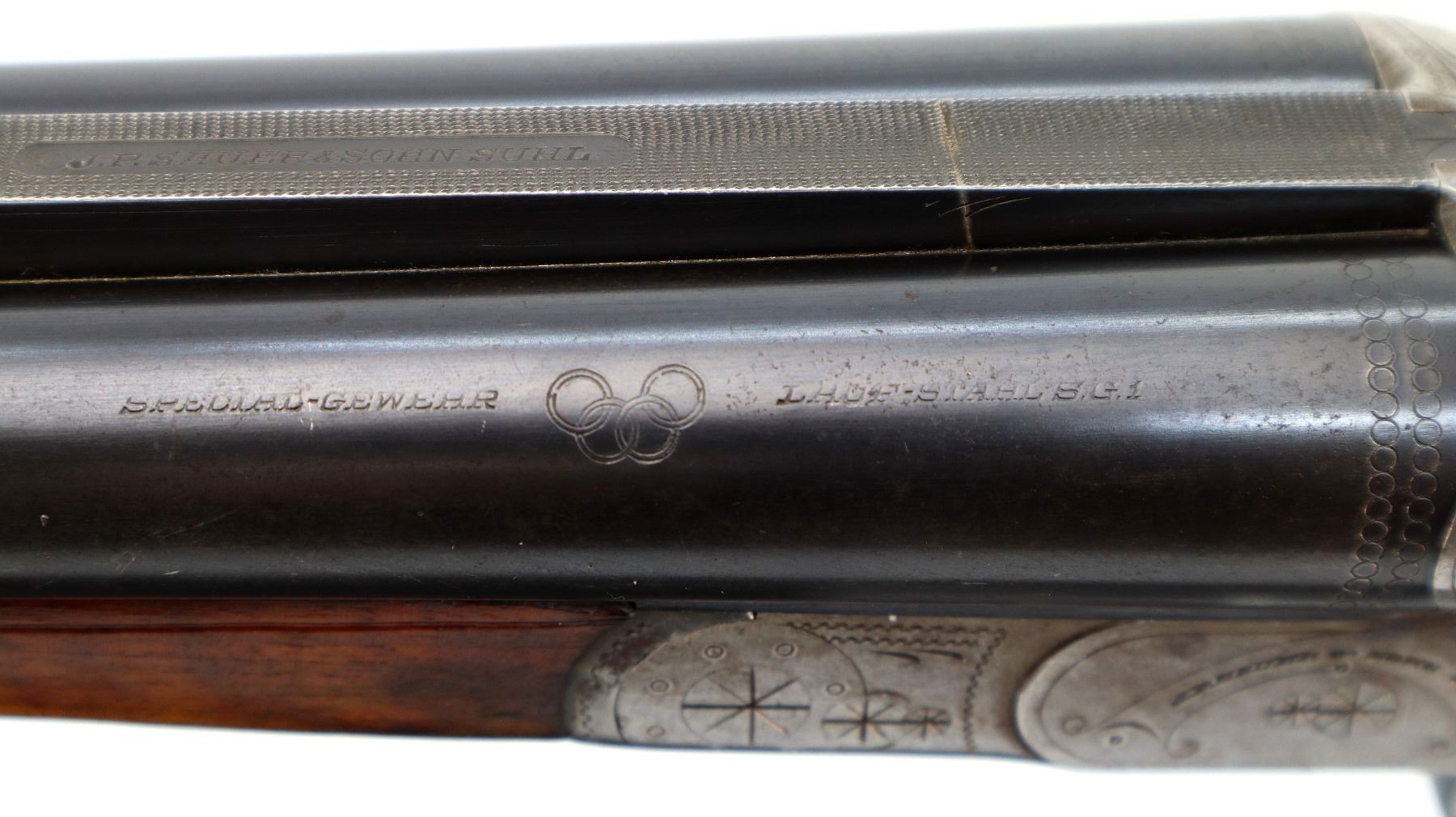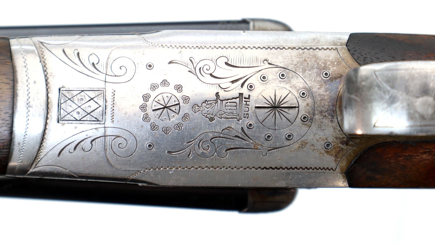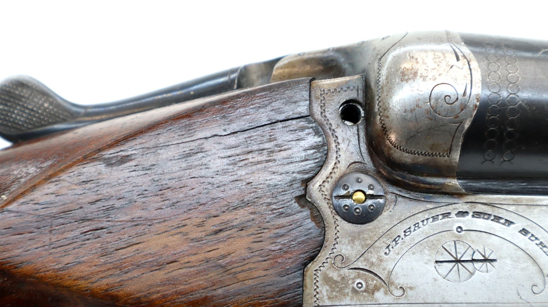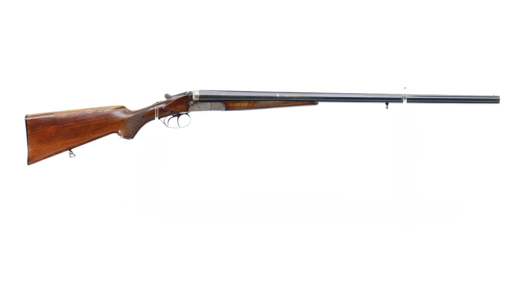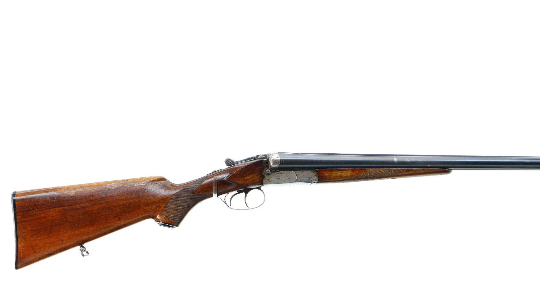 Main Description: Brass bead, blued barrels with raised rib, engraved receiver, automatic safety, right barrel does not function requires parts or repair, small screw is included. Has extractors, cocking indicators, double triggers. Two piece wood stocks, checkered forearm and pistol grip, European cheek rest, checkered black polymer butt plate cracked at heel, grip cap, sling swivels.
