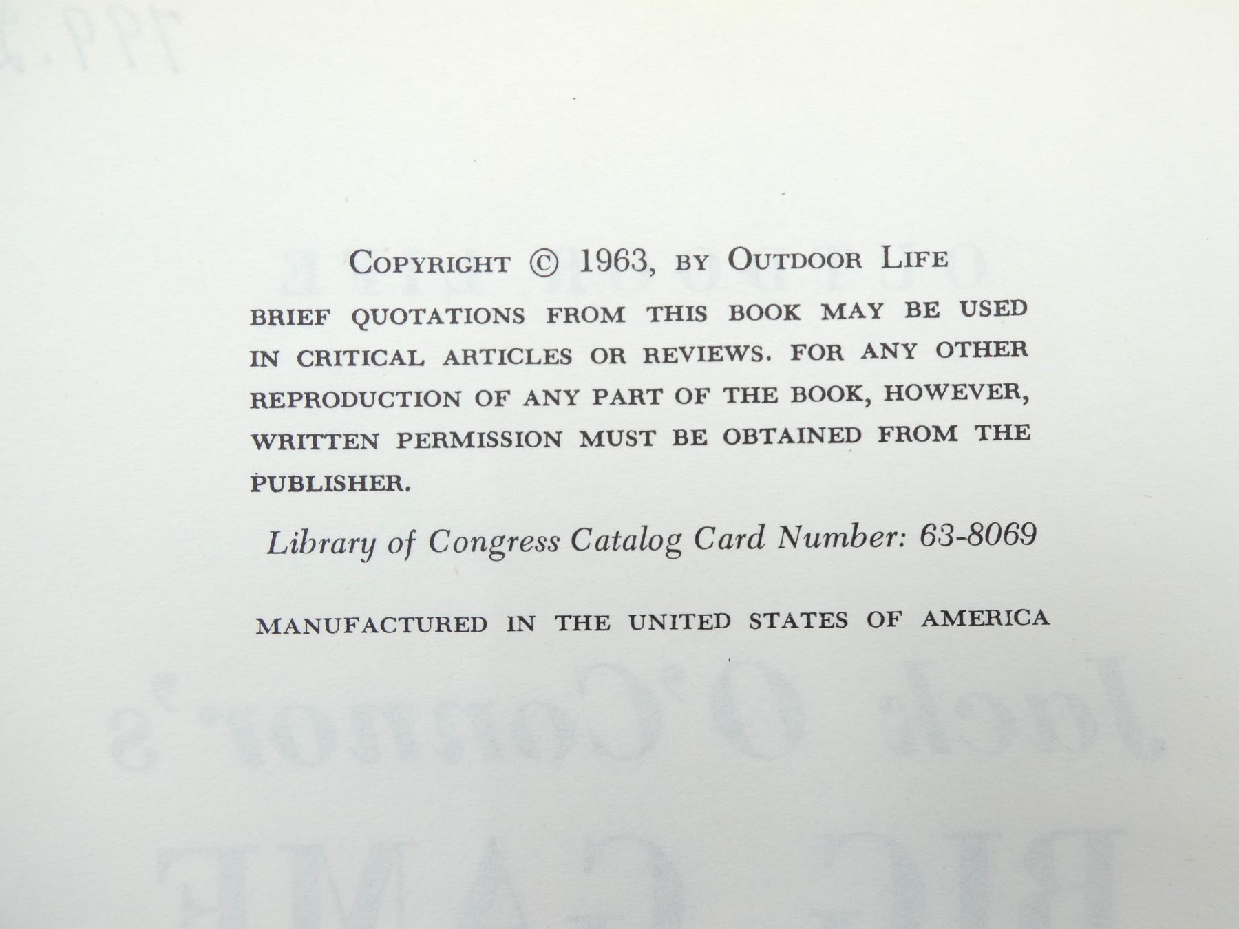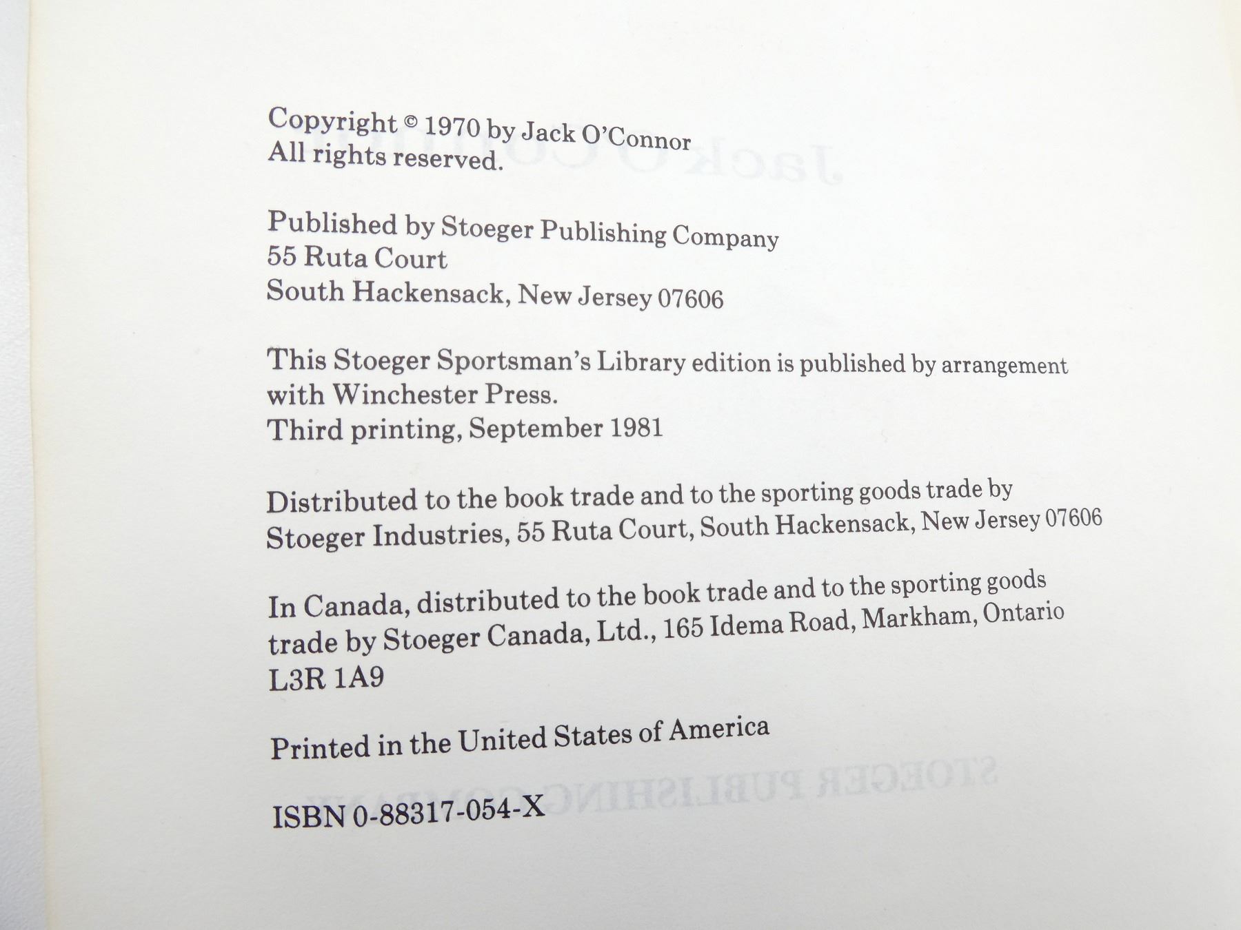LOT INCLUDES; (1) "JACK O'CONNOR'S BIG GAME HUNTS" BOOK BY OUTDOOR LIFE, HARD COVER WITH DUST COVER, COPYRIGHT 1963 & (1) "JACK O'CONNOR THE HUNTING RIFLE" BOOK BY JACK O'CONNOR, SOFT COVER, ISBN: 0-88317-054-X. SEE PHOTOS.