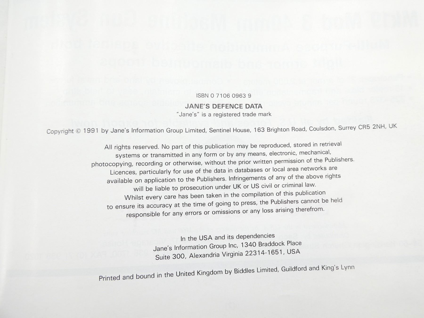 "JANE'S INFANTRY WEAPONS 1991-92" BOOK