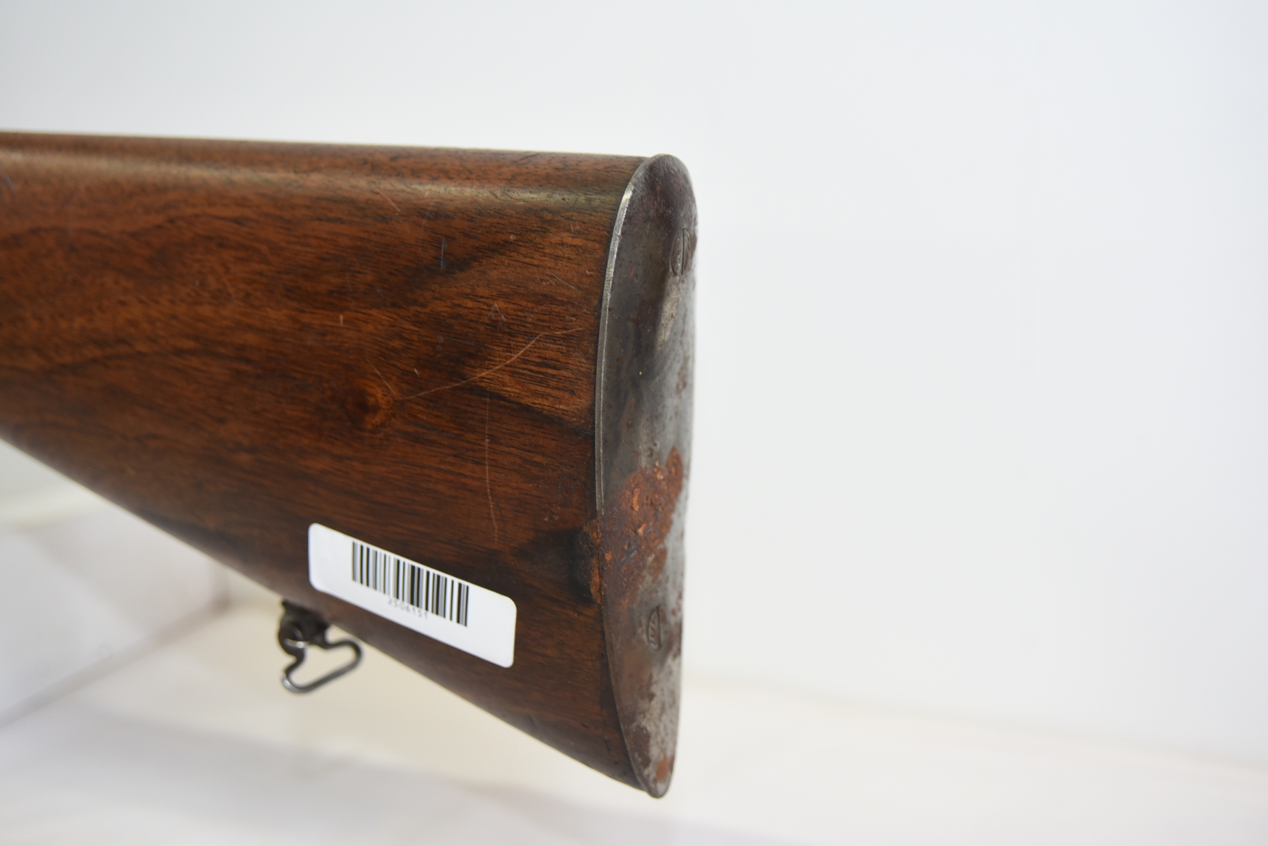 Metal finish shows rust in various areas throughout, few dings on the barrel, there are scratches and scuffs present; condition is fair.