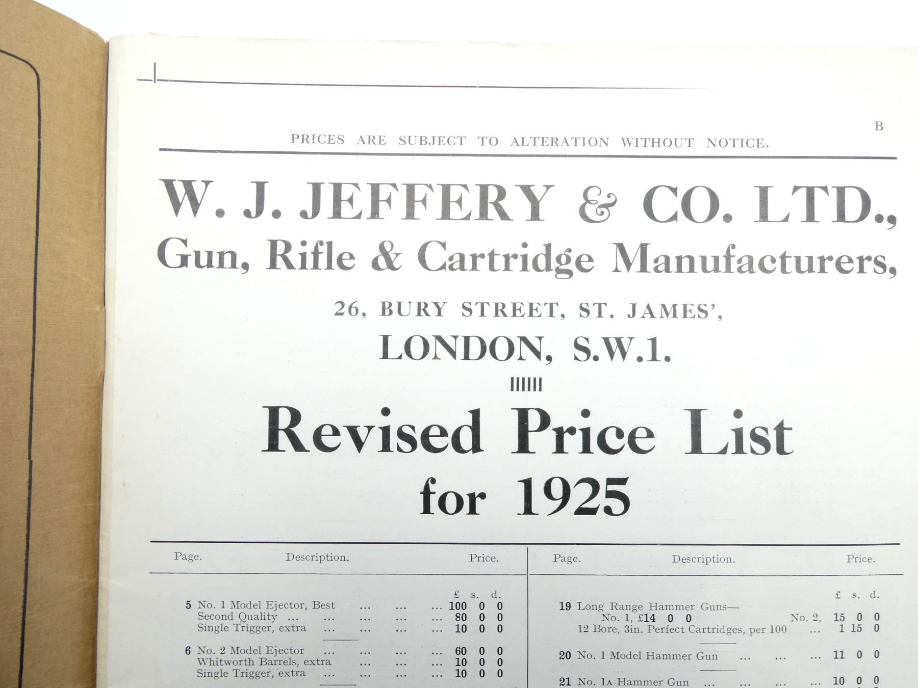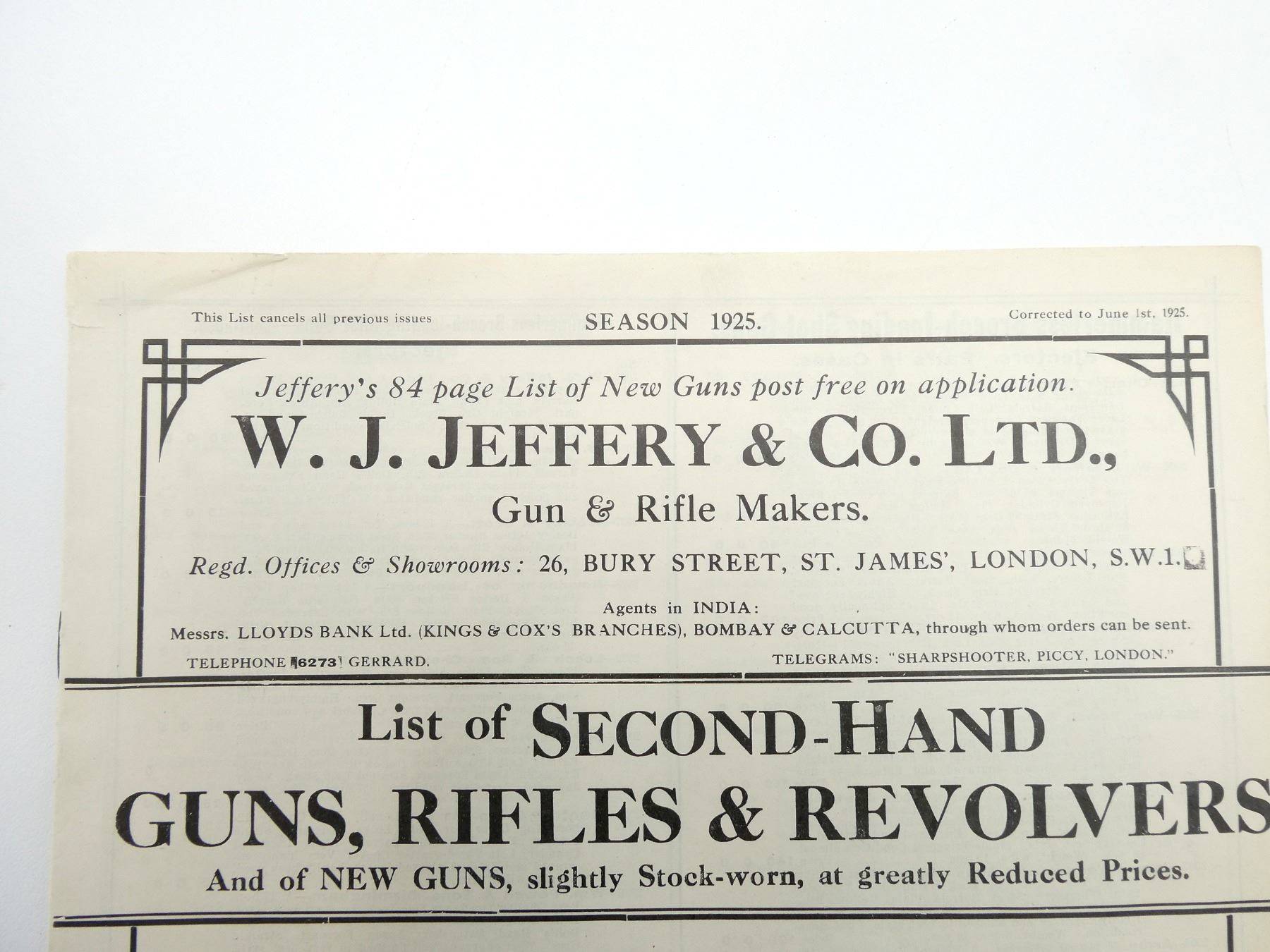 "JEFFERY'S GUNS, RIFLES AND GENERAL SHOOTING ACCESSORIES" AND "LIST OF SECOND-HAND GUNS, RIFLES & RE