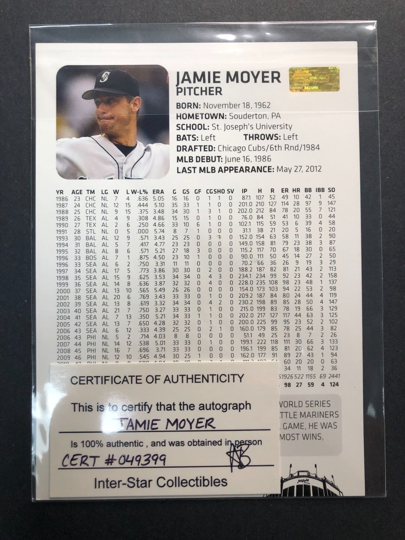 Jamie Moyer AUTOGRAPHED 5x7 Card - Mariners