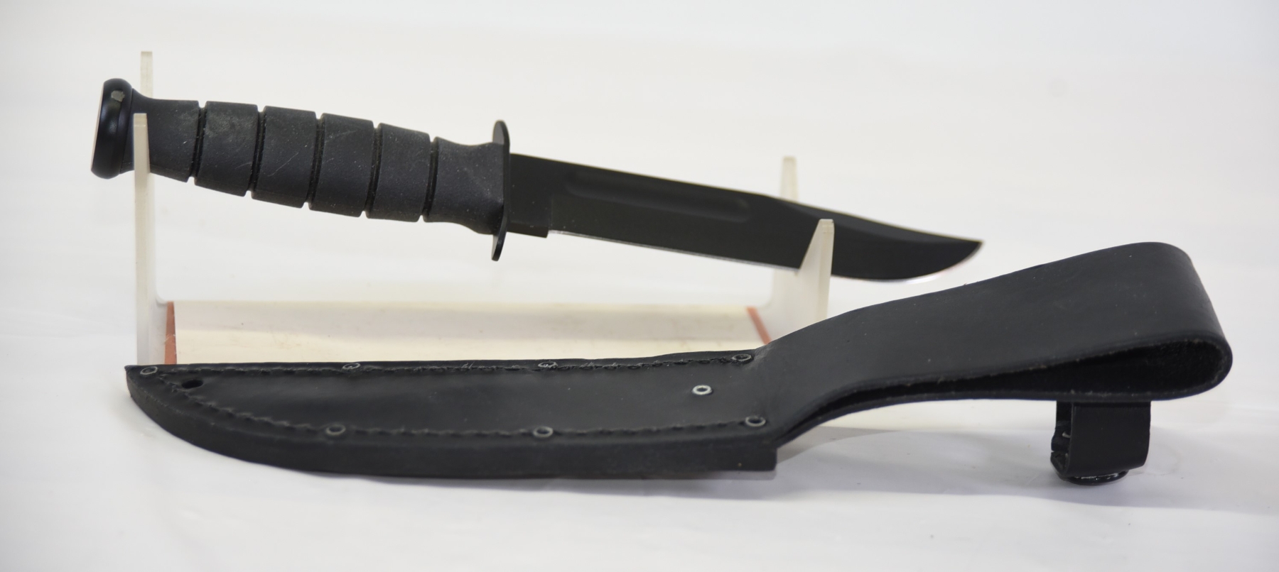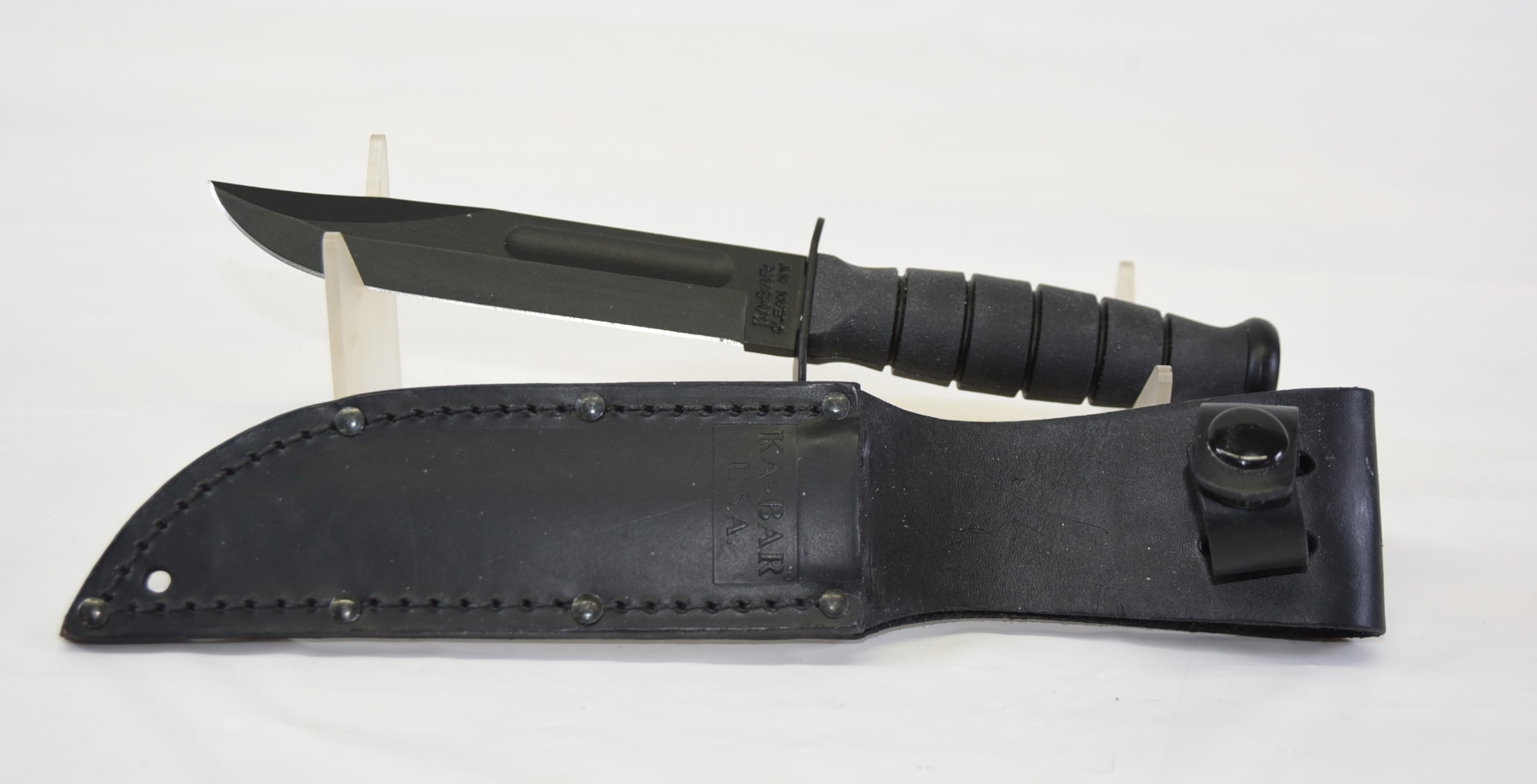 The Short KA-BAR is a practically sized knife with 5.25" blade intended for all utilitarian uses. Tang stamped USA. Leather sheath included. Made in the USA.