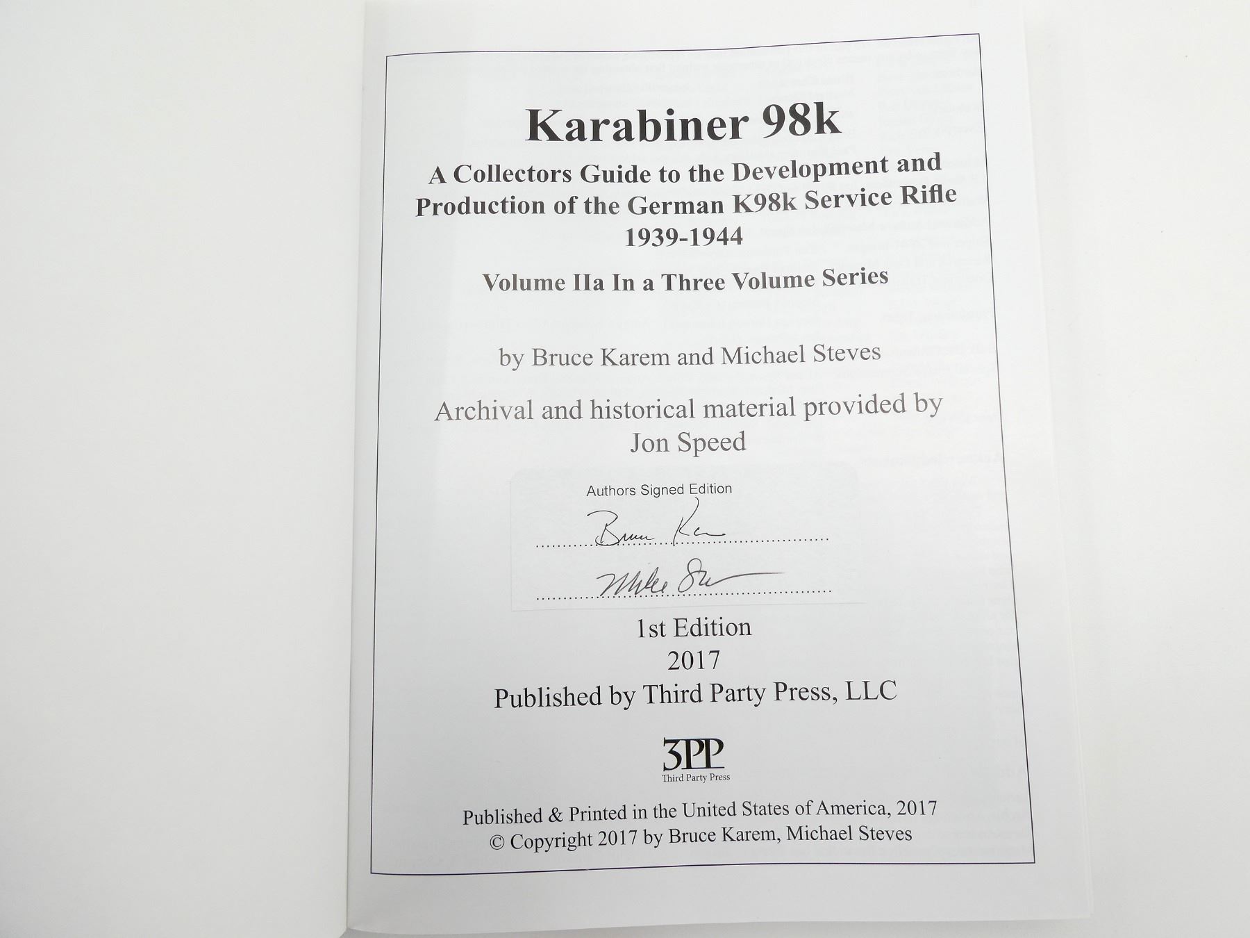 "KARABINER 98K, VOLUME IIA" BOOK