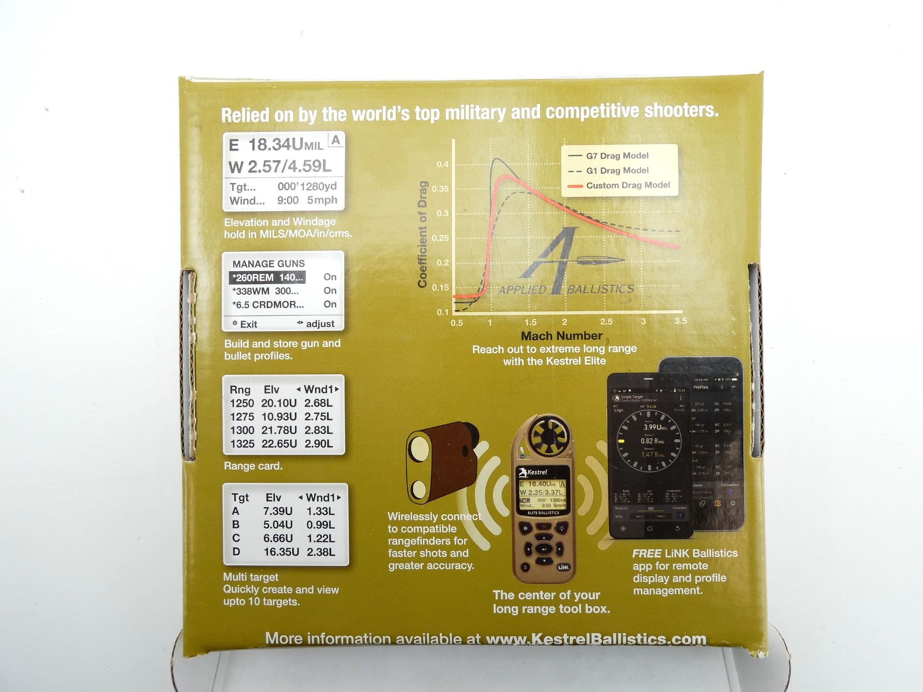 (1) PART #: 0857ALOLV, SHOWS WINDAGE & ELEVATION IN MILS / MOA / IN / CM, BUILD & STORE GUN / BULLET PROFILES, RANGE CARD, MULTI-TARGET, BLUETOOTH LINK TO SMARTPHONES, WIRELESS CONNECTION TO COMPATIBLE RANGEFINDERS, ETC., TURNS ON, NOT FULLY TESTED, SHOWS LIGHT WEAR & TEAR / USE MARKS, WITH INSTRUCTIONS & CARRY CASE IN ORIGINAL PACKAGING. SEE PHOTOS.