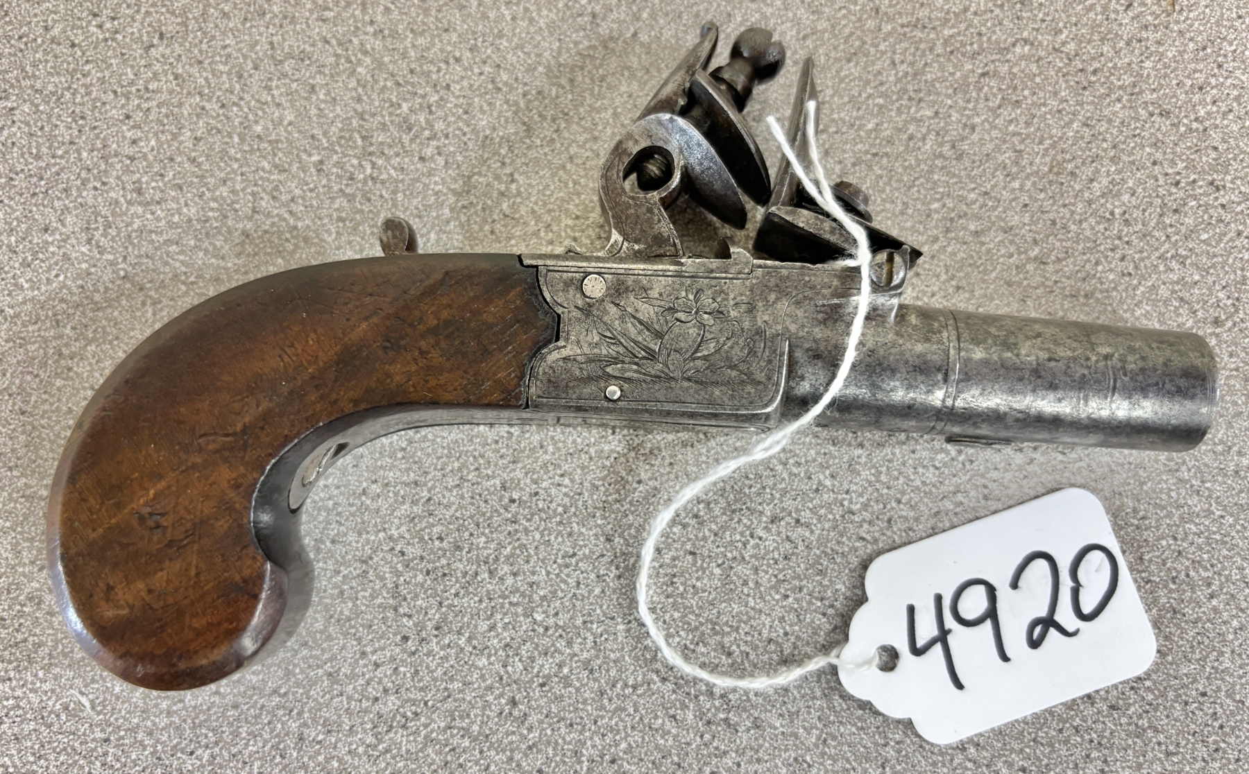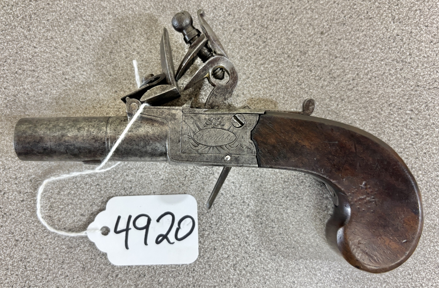 CONDITION: G OVERALL, FOR AGE. SPECS: 1-1/2IN BBL. FOLDING TRIGGER. EXTRAS: NONE. S/N: NONE