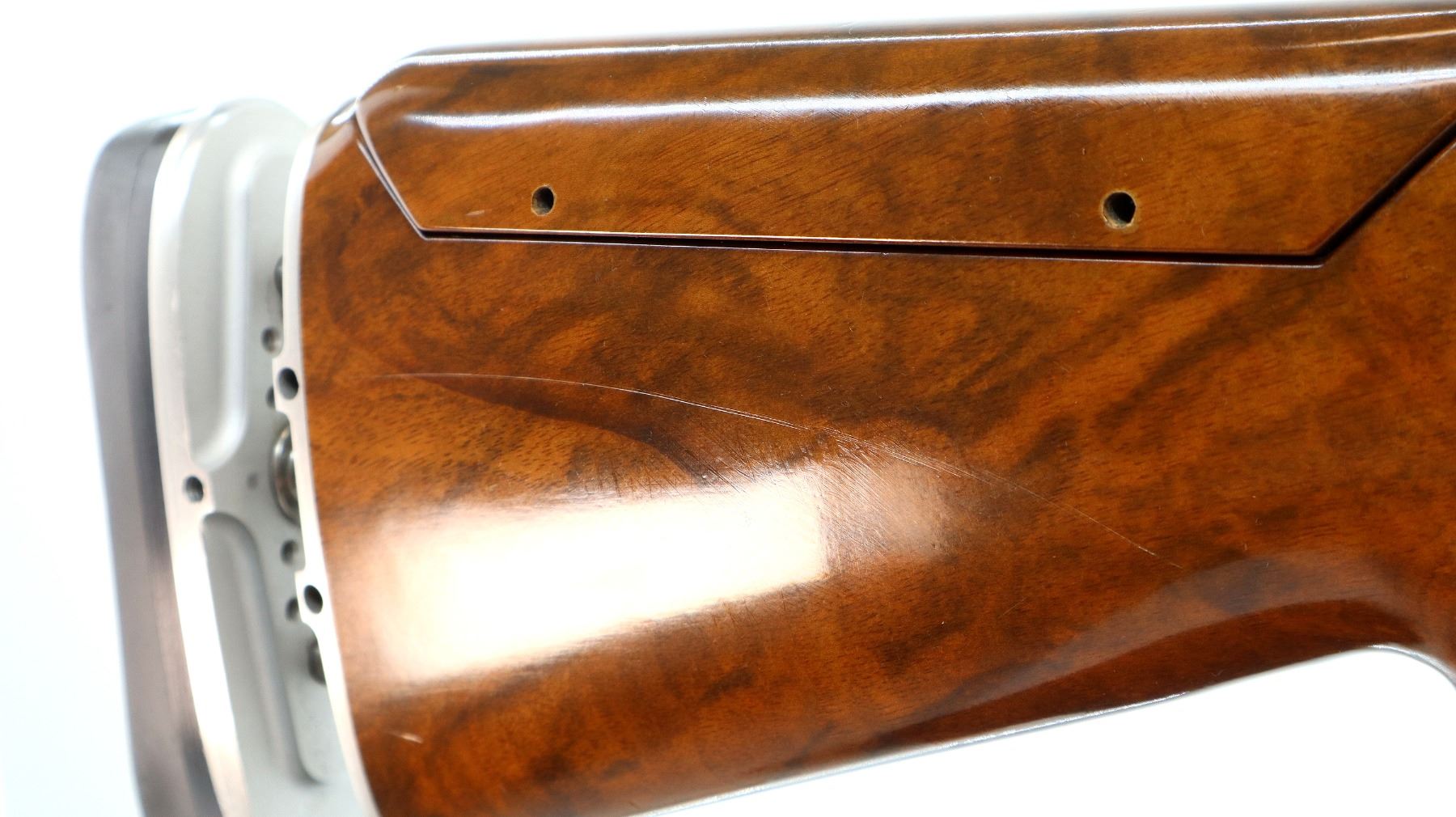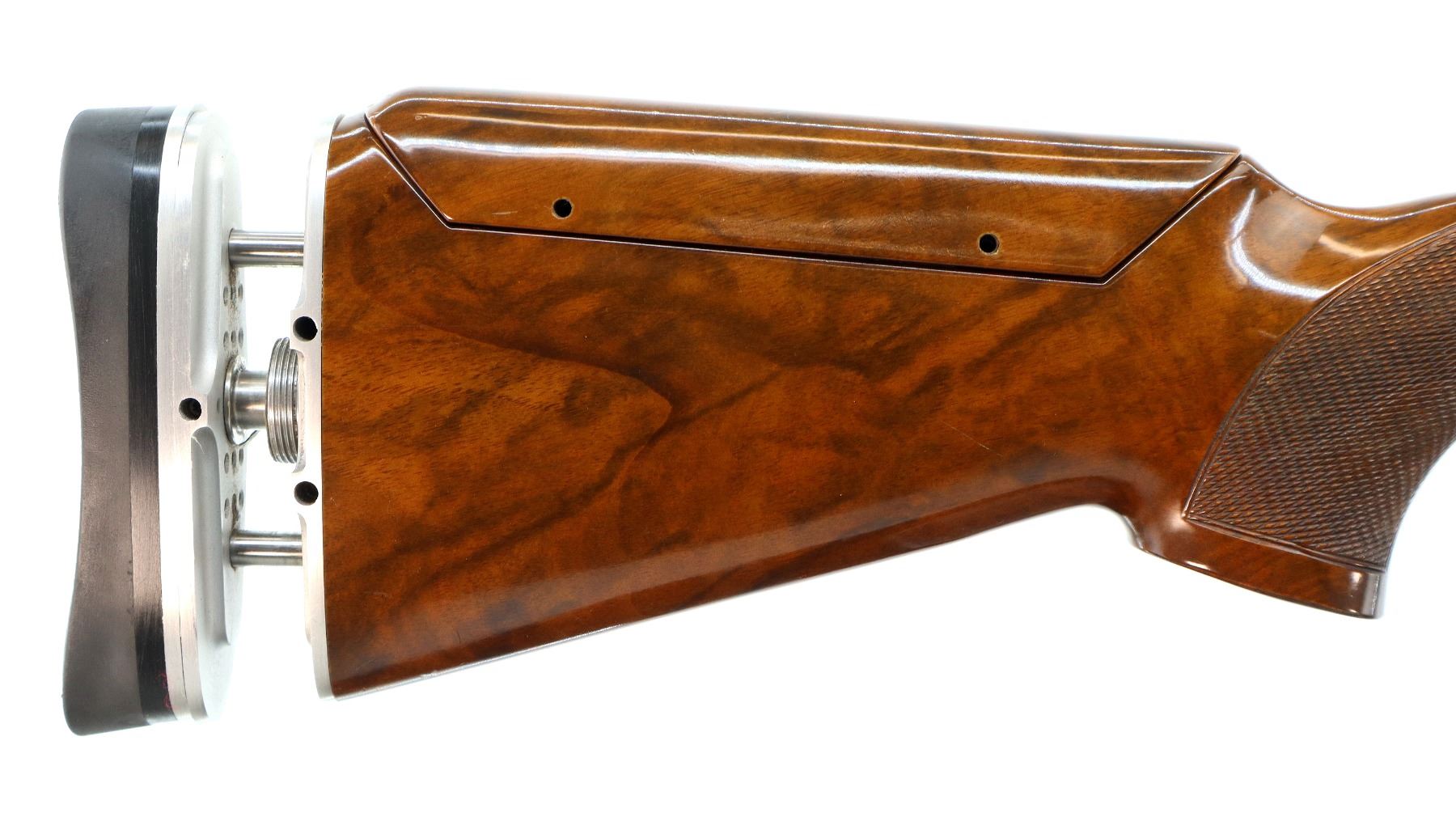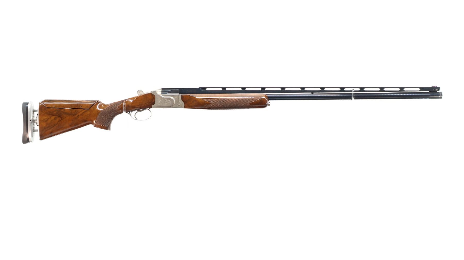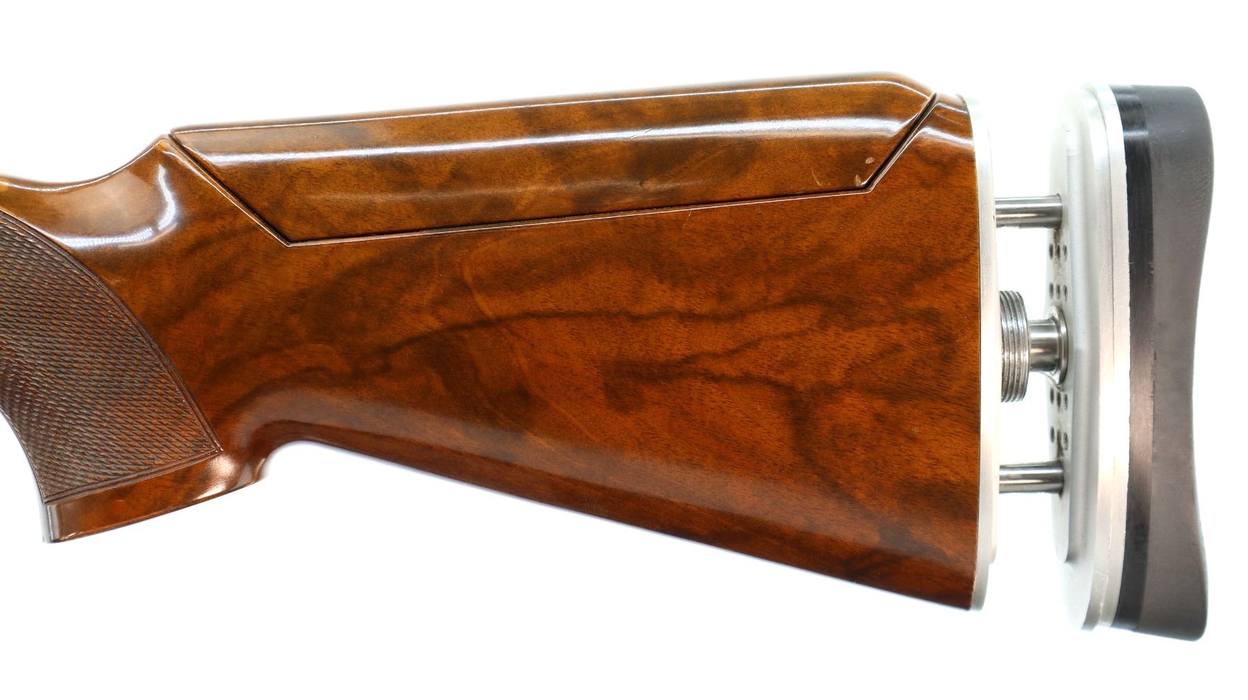 Main Description: Adjustable red fiber optic front bead, brass mid rib bead, polish blued barrel with raised high rib, engraved silver receiver, ejector, smooth adjustable silver trigger. Two piece gloss finish wood stocks, checkered forearm and pistol grip with ambi palm swells, adjustable comb, recoil reducing black rubber recoil pad. Accessories include: Spare Mod (1+), Mod (2), Full (4) with wrench and case, adjustable comb spacers, two different thickness recoil pads, snap cap, tools, firing pins and springs