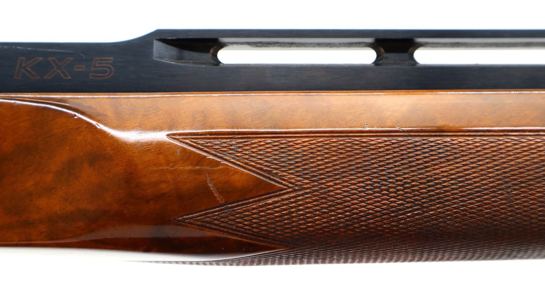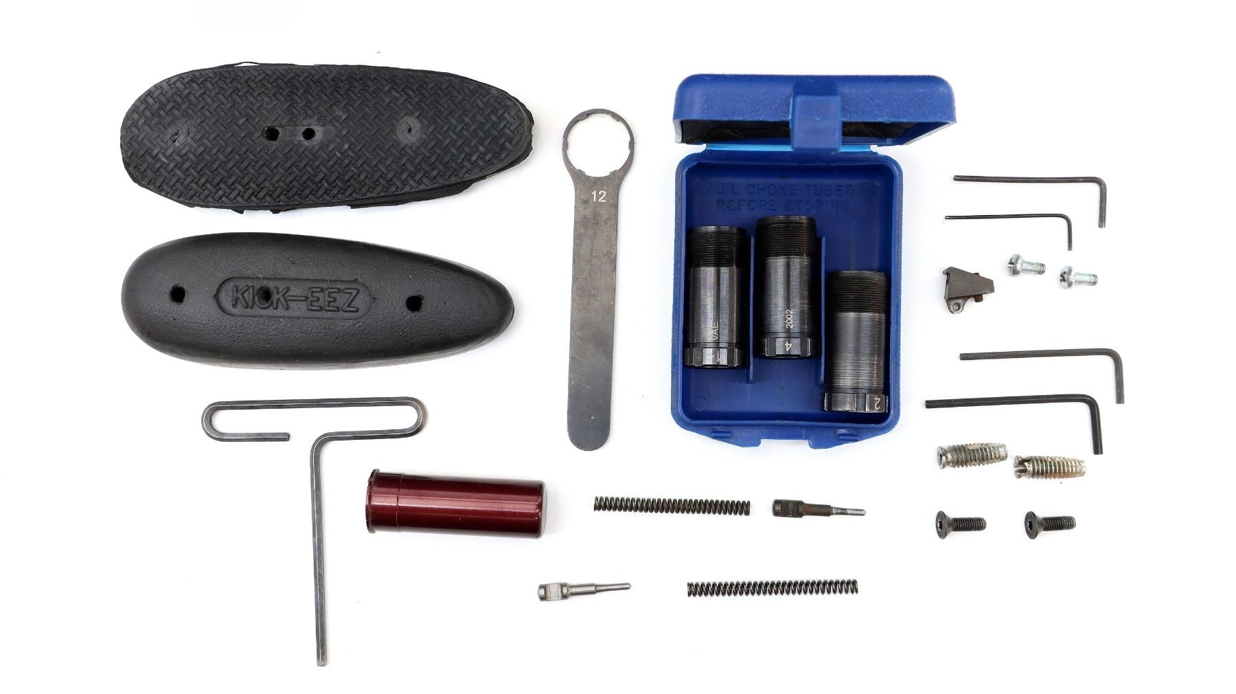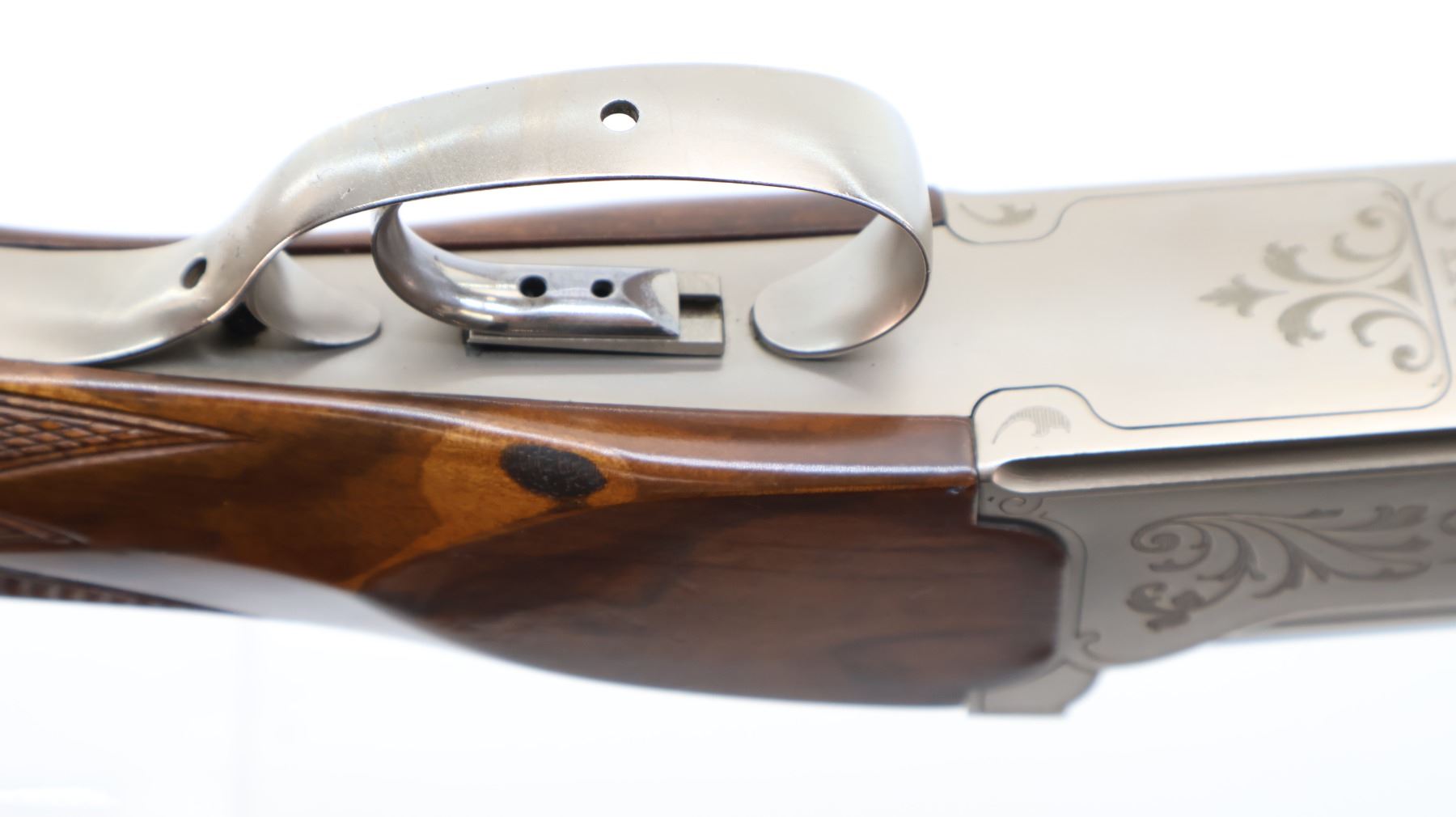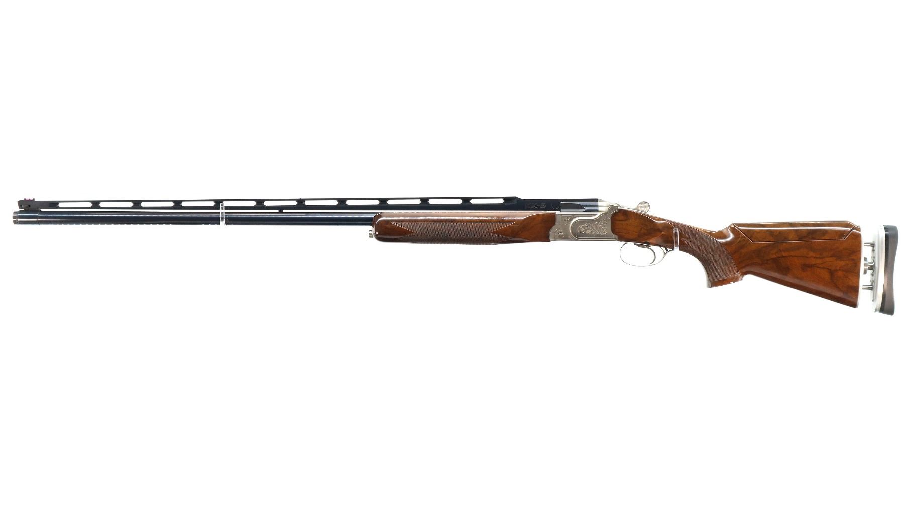 Main Description: Adjustable red fiber optic front bead, brass mid rib bead, polish blued barrel with raised high rib, engraved silver receiver, ejector, smooth adjustable silver trigger. Two piece gloss finish wood stocks, checkered forearm and pistol grip with ambi palm swells, adjustable comb, recoil reducing black rubber recoil pad. Accessories include: Spare Mod (1+), Mod (2), Full (4) with wrench and case, adjustable comb spacers, two different thickness recoil pads, snap cap, tools, firing pins and springs