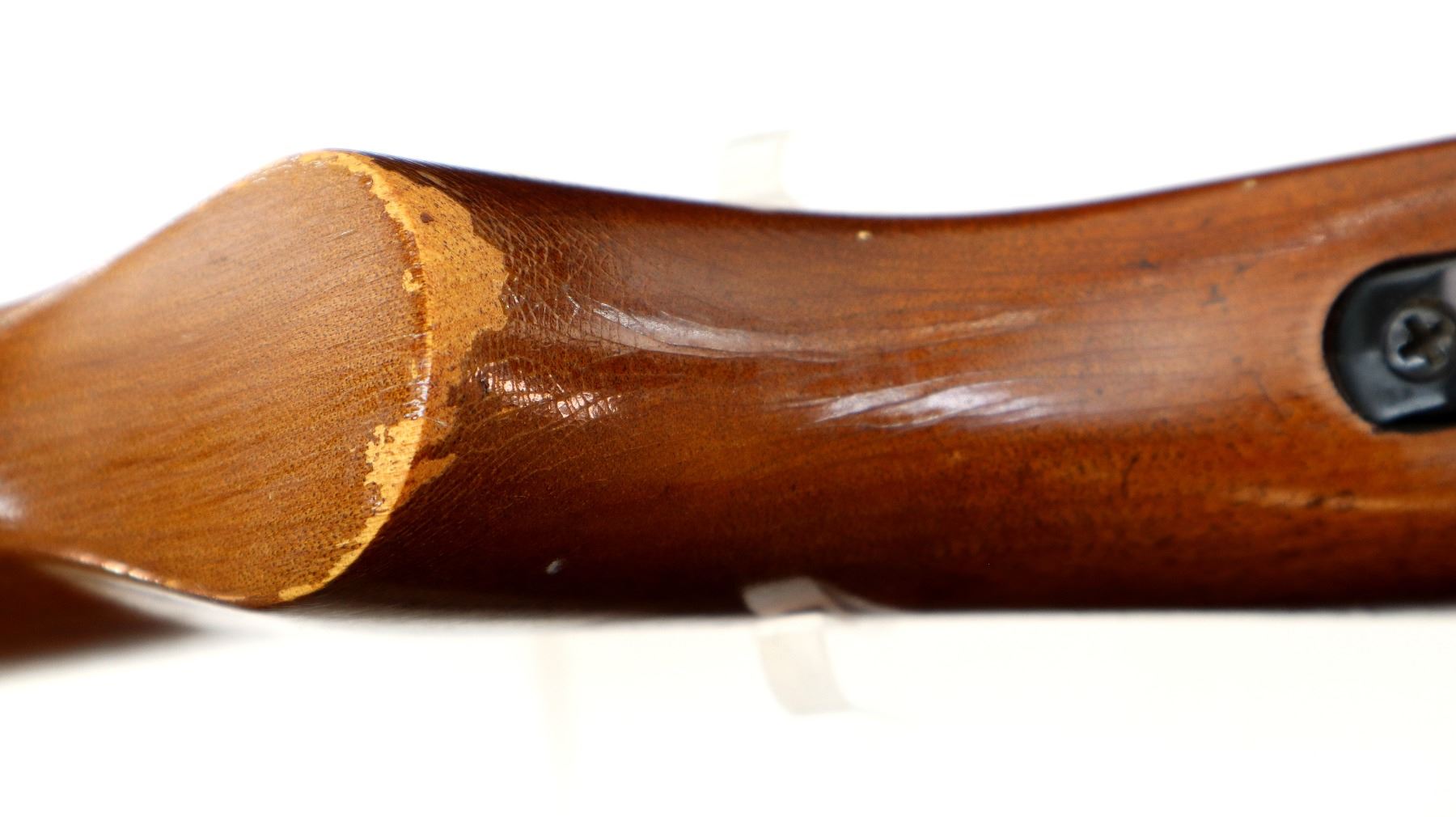 Wear: Metal finish turning brown with light rust speckles overall, scratches, handling marks and wear. Stock shows marks, scratches and wear.