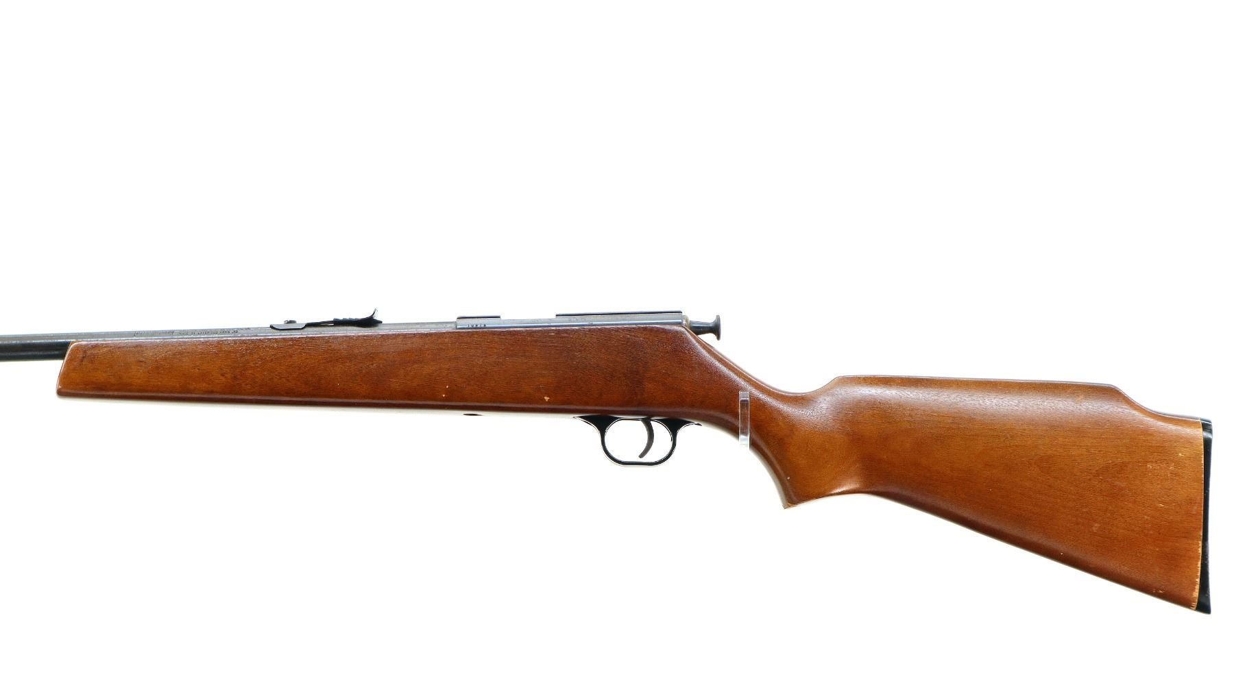 Main Description: Blade front sight, adjustable u notched rear sight, grooved receiver. One piece wood stock, pistol grip, raised comb, grooved black polymer butt plate.